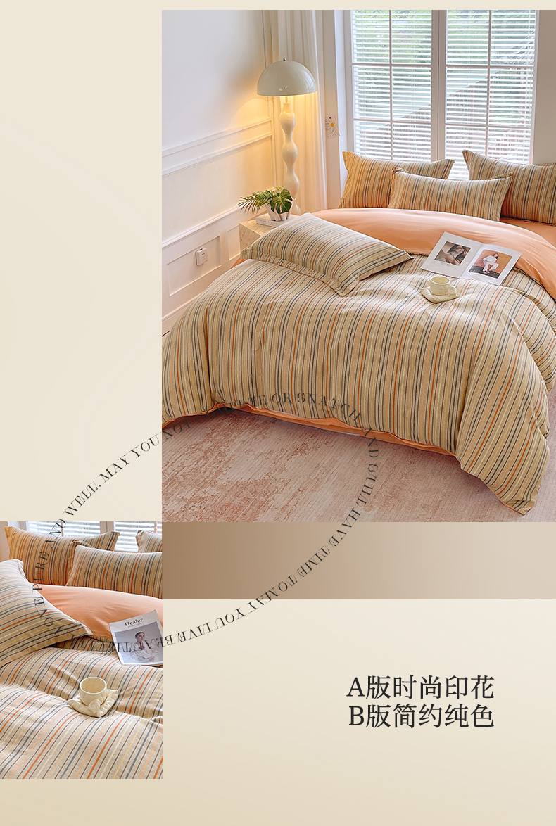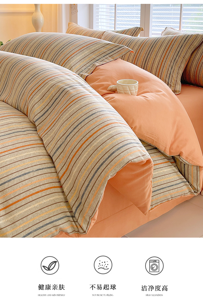 凯磊家纺 2025新款AB版加厚磨毛系列四件套 布莱迪-桔