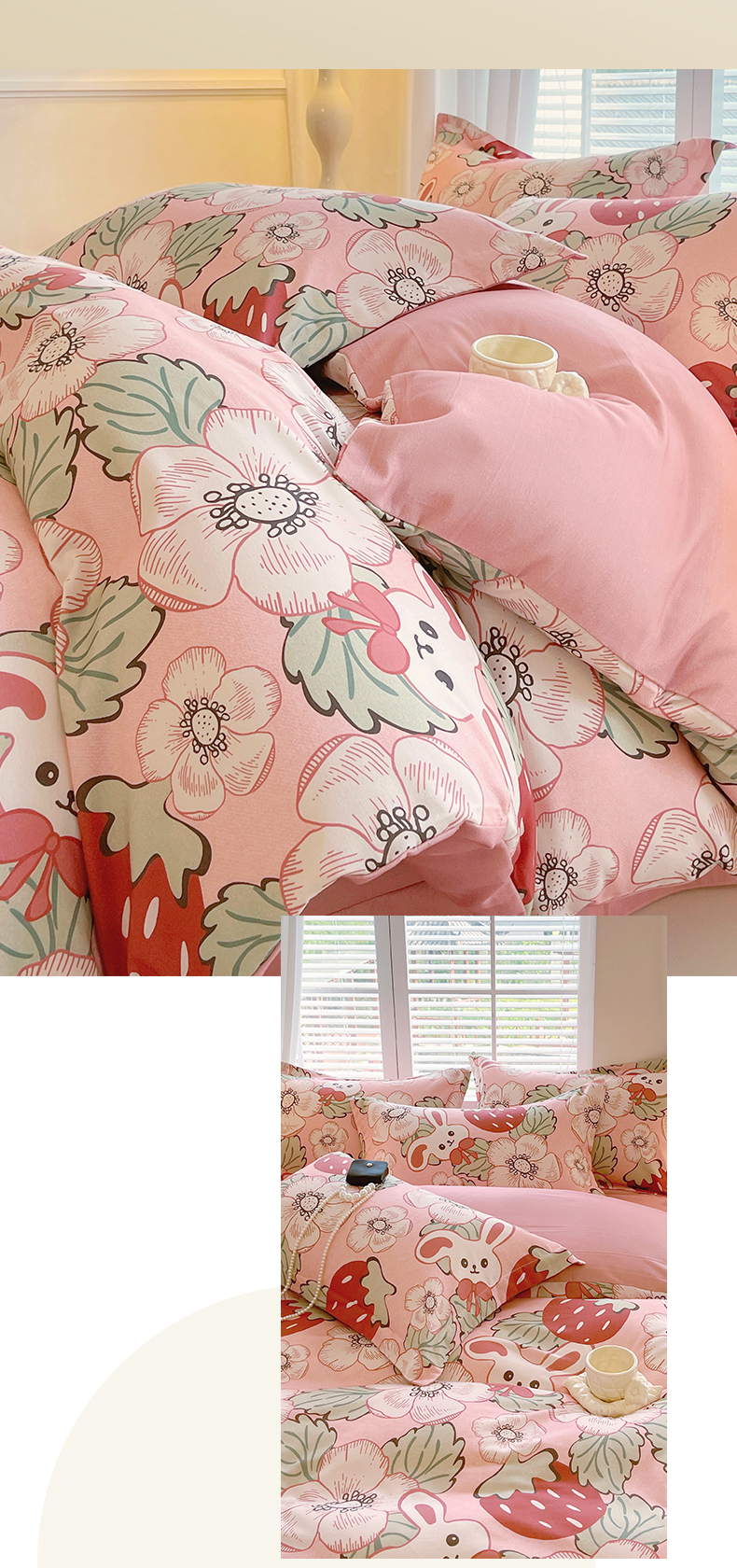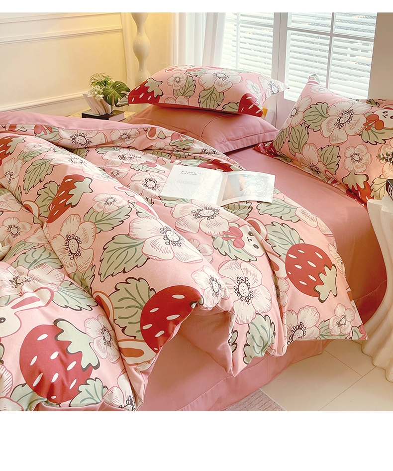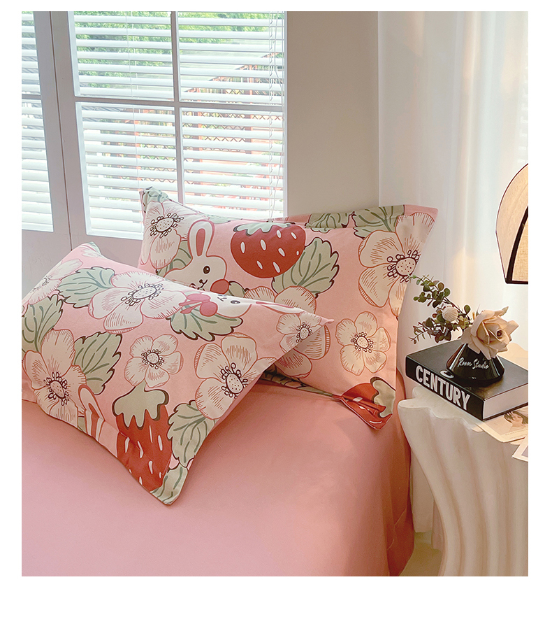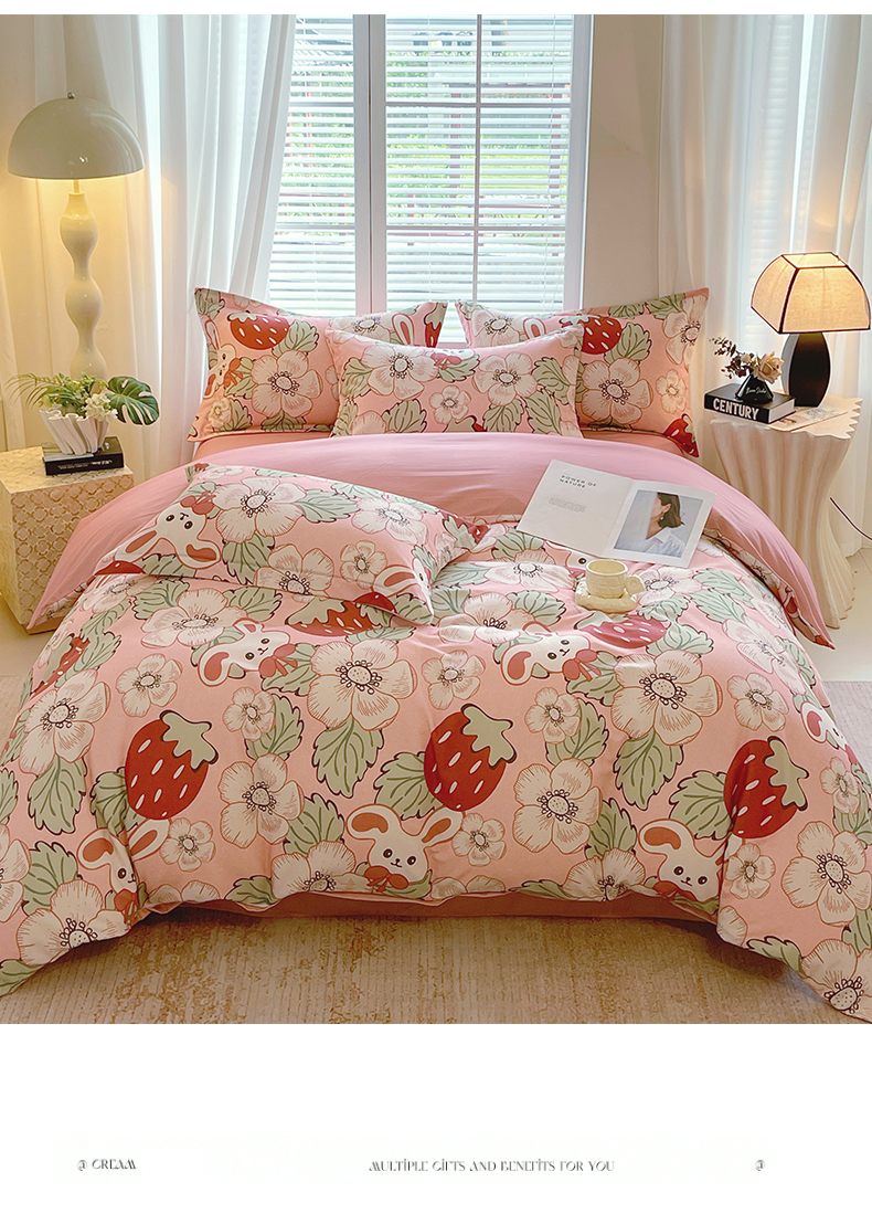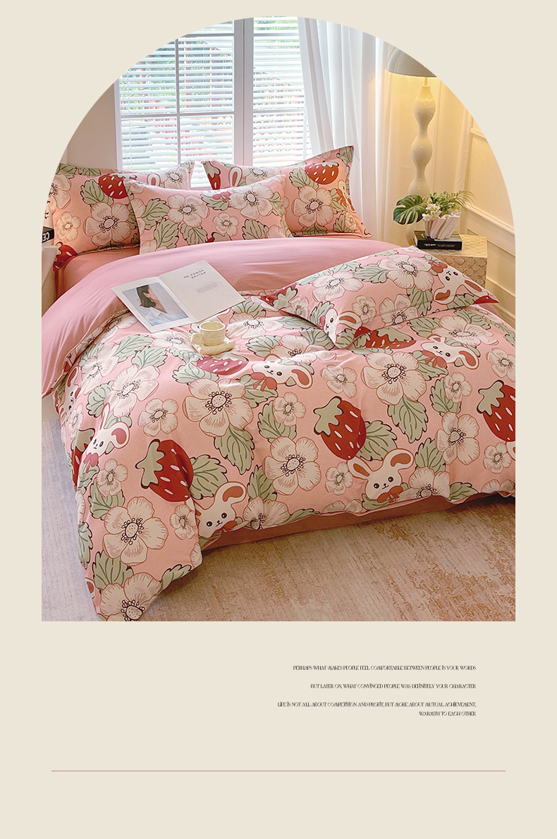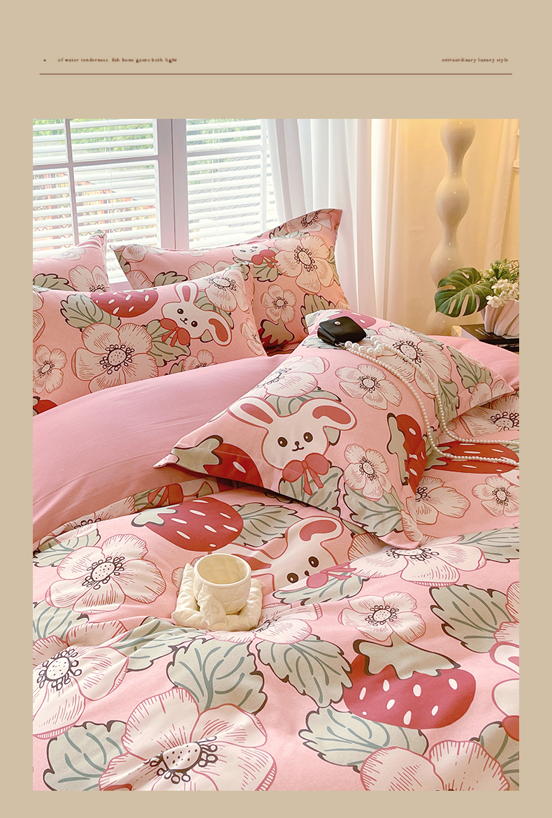 当前位置:凯磊家纺 > 凯磊家纺 2025新款AB版加厚磨毛系列四件套 草莓小兔粉