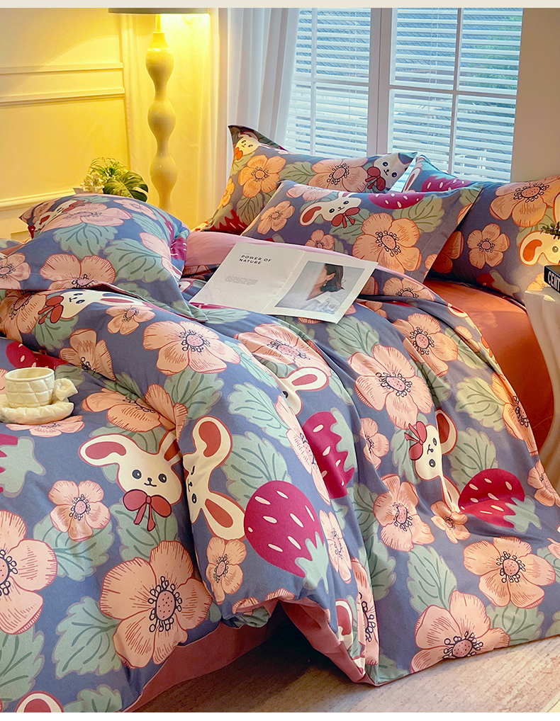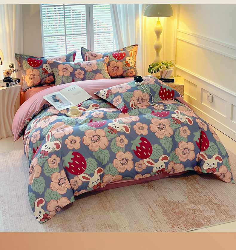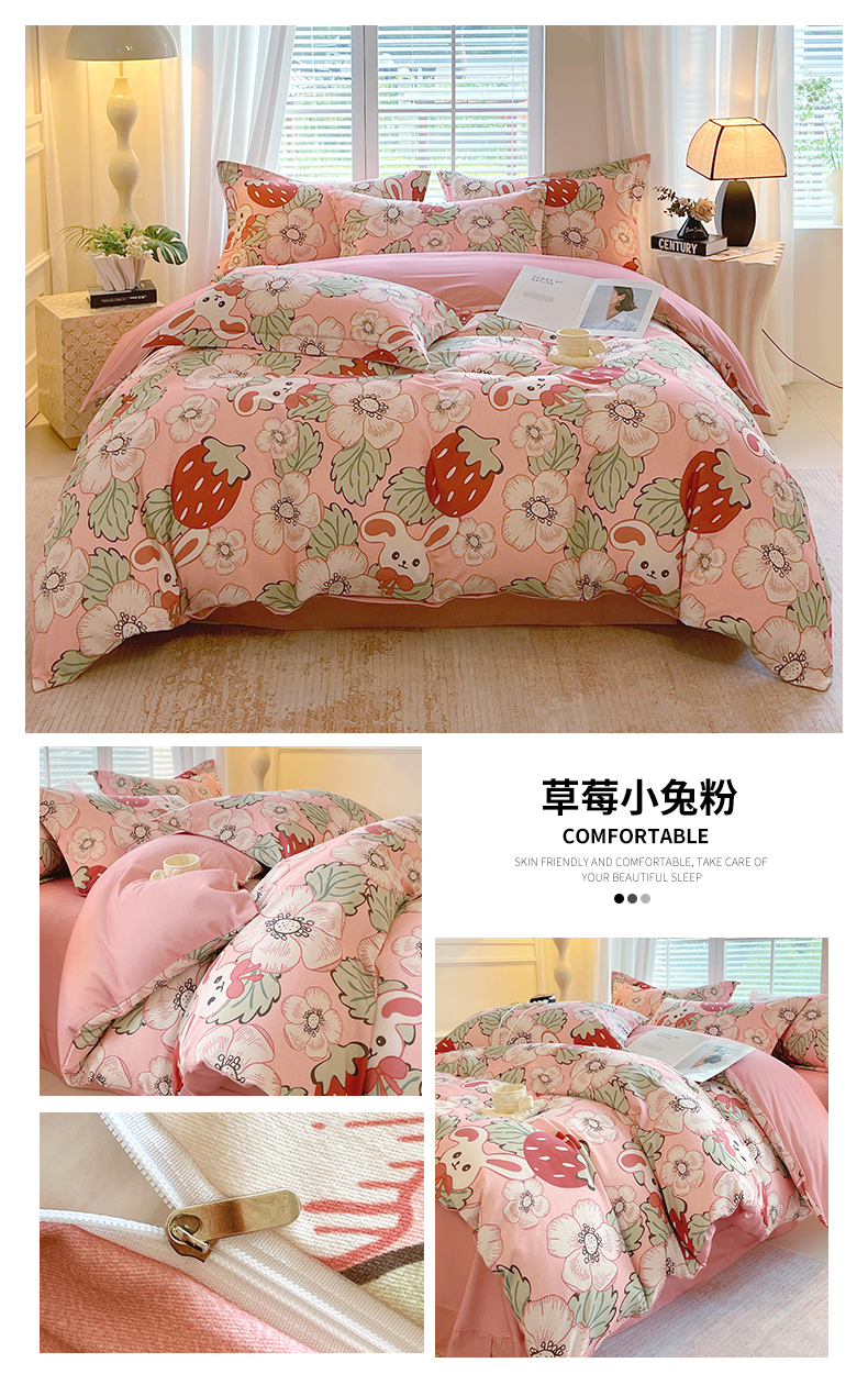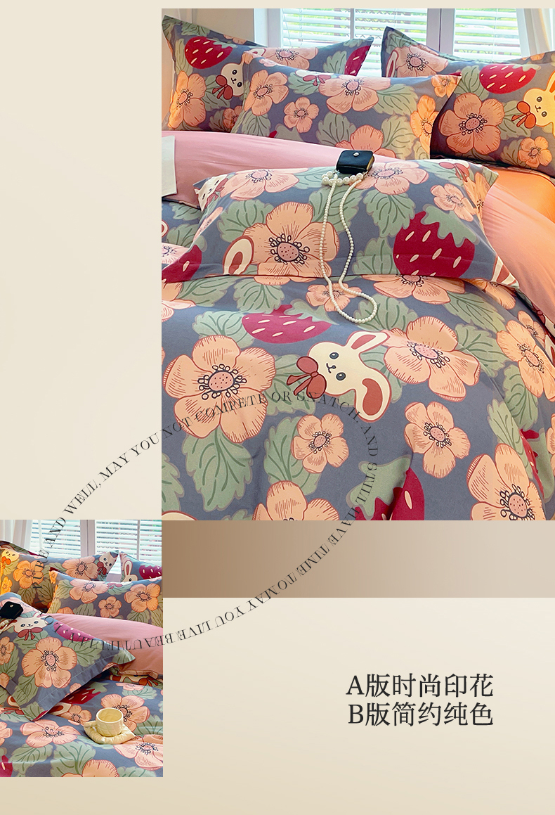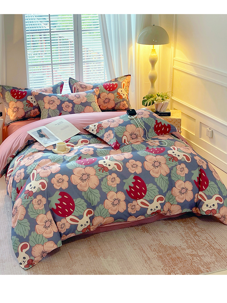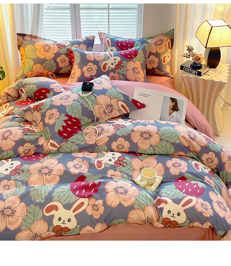 当前位置:凯磊家纺 > 凯磊家纺 2025新款AB版加厚磨毛系列四件套 草莓小兔蓝