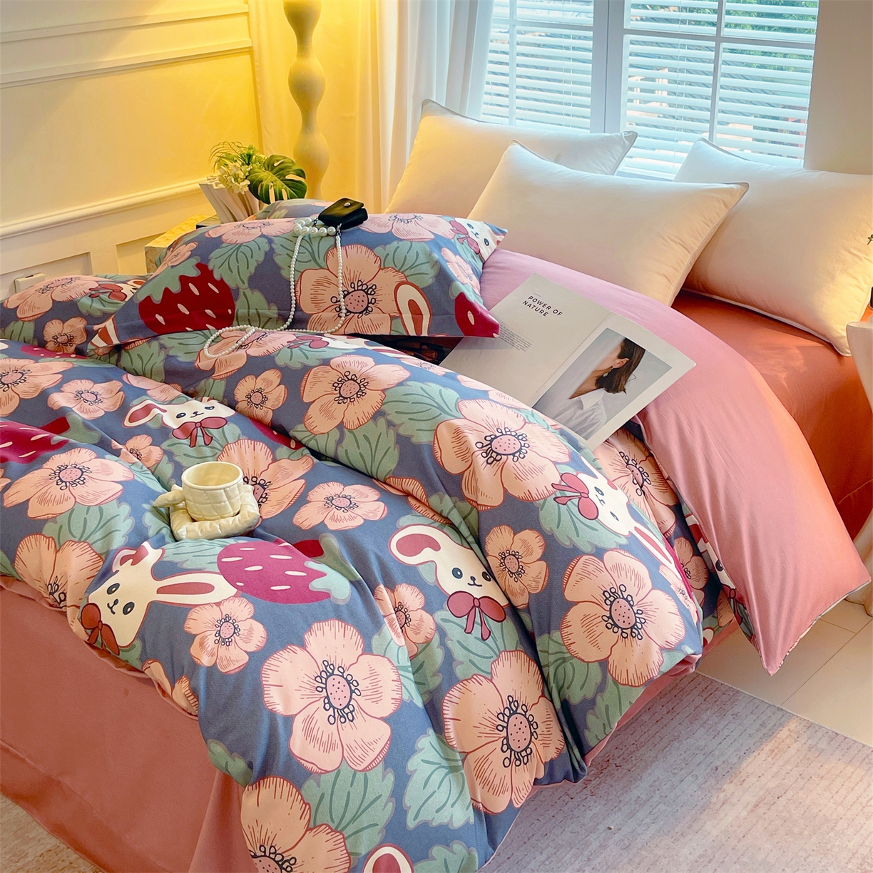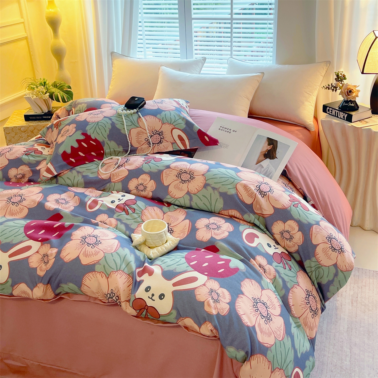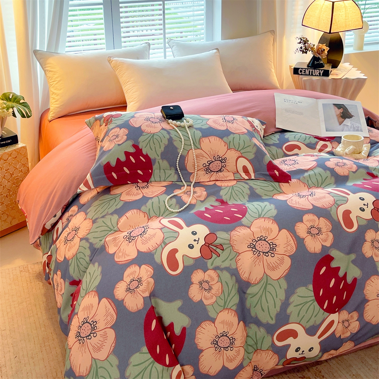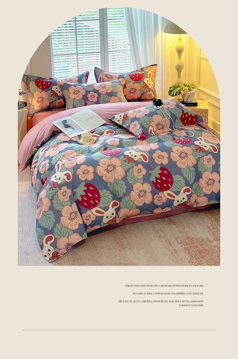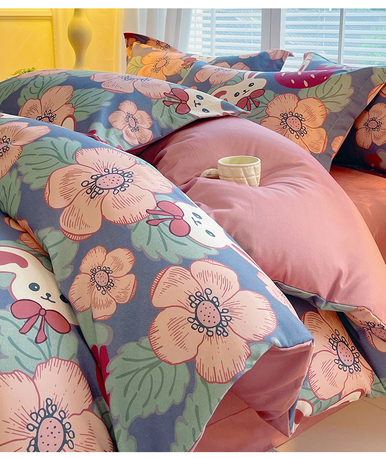 当前位置:凯磊家纺 > 凯磊家纺 2025新款AB版加厚磨毛系列四件套 草莓小兔蓝