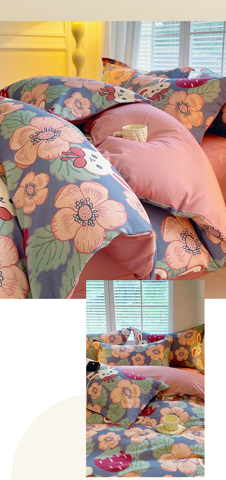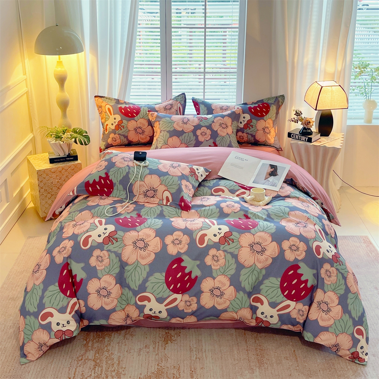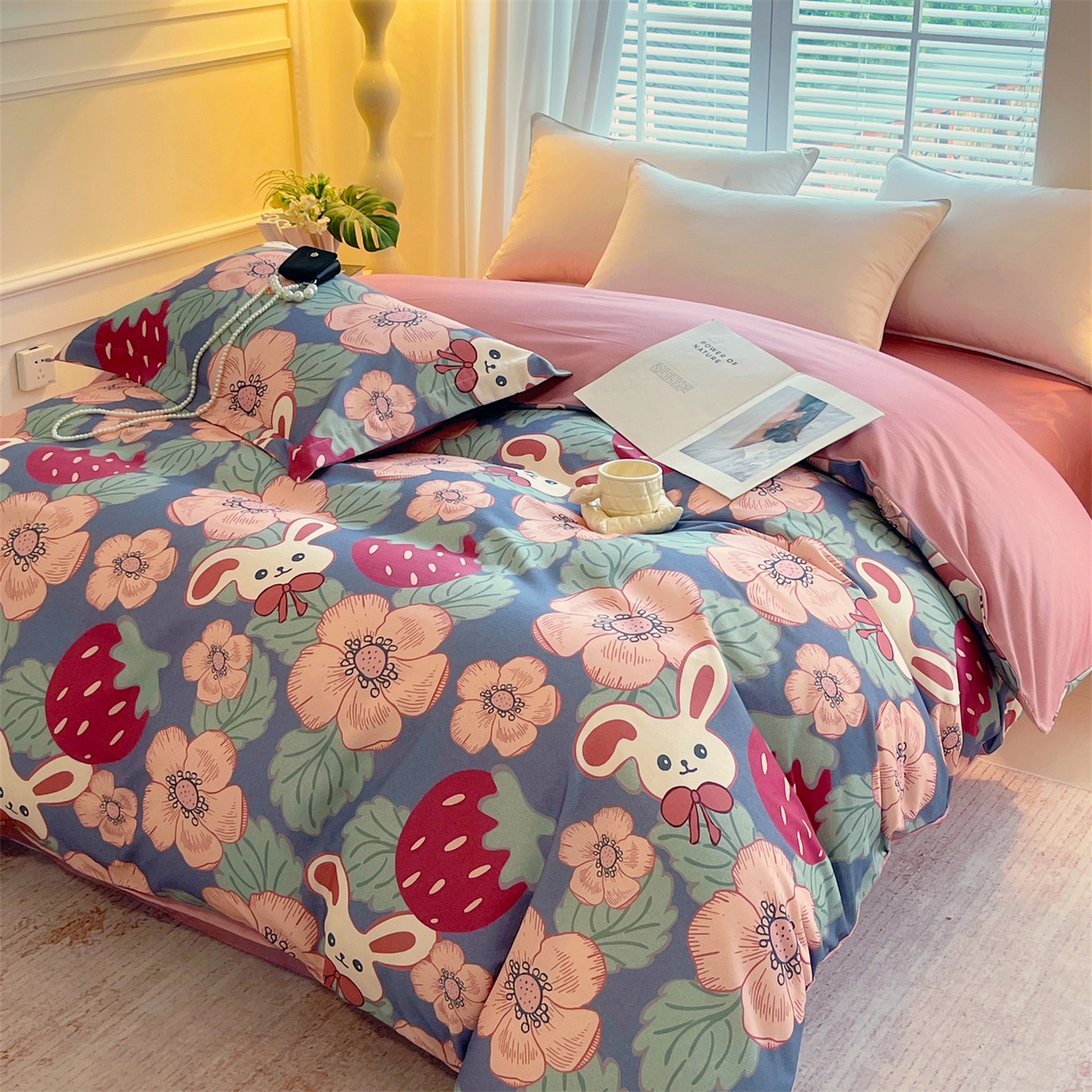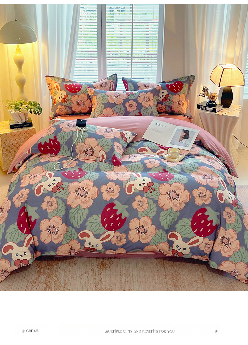 当前位置:凯磊家纺 > 凯磊家纺 2025新款AB版加厚磨毛系列四件套 草莓小兔蓝