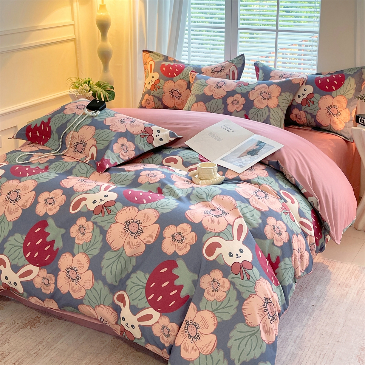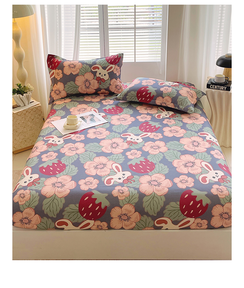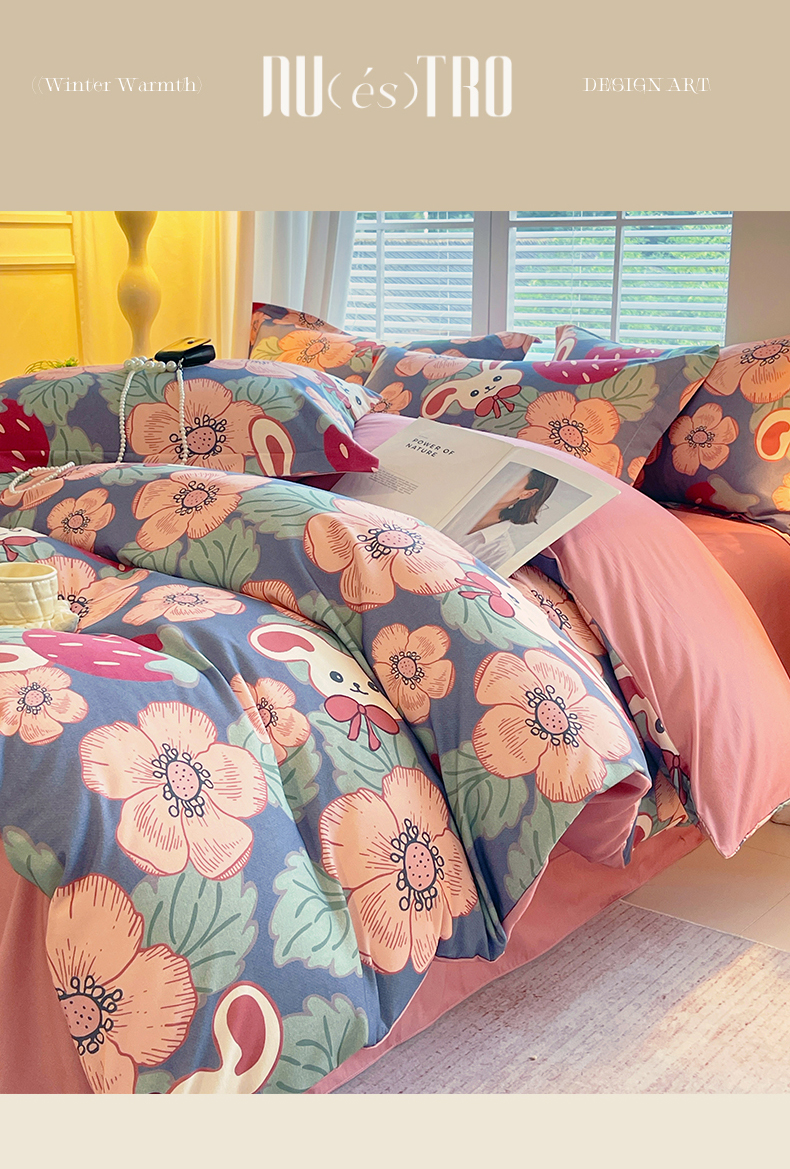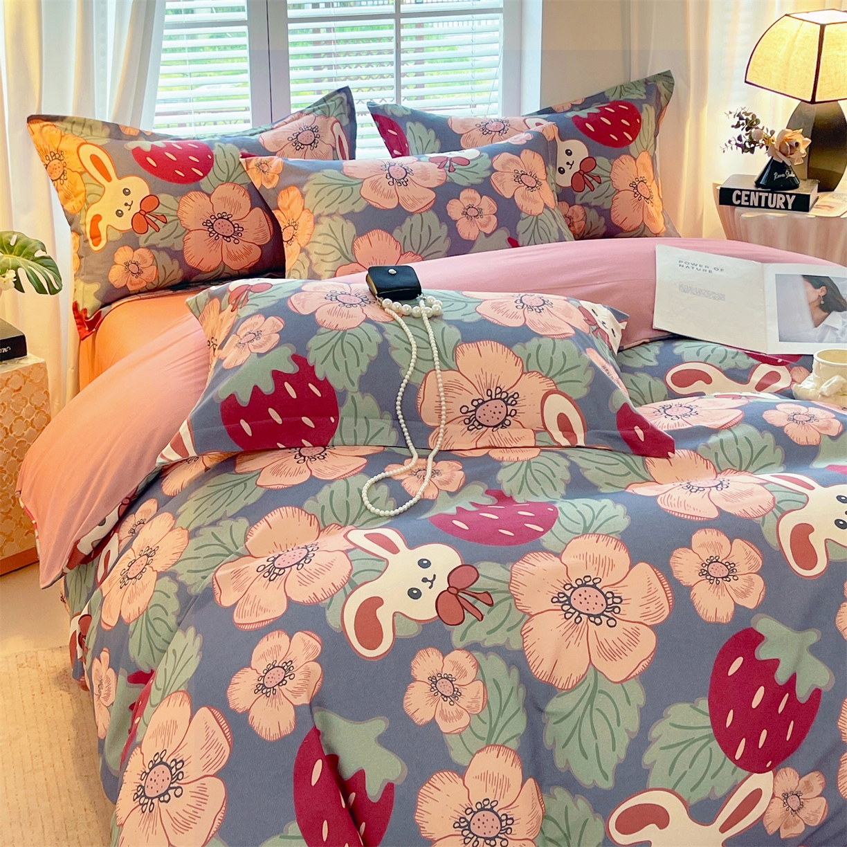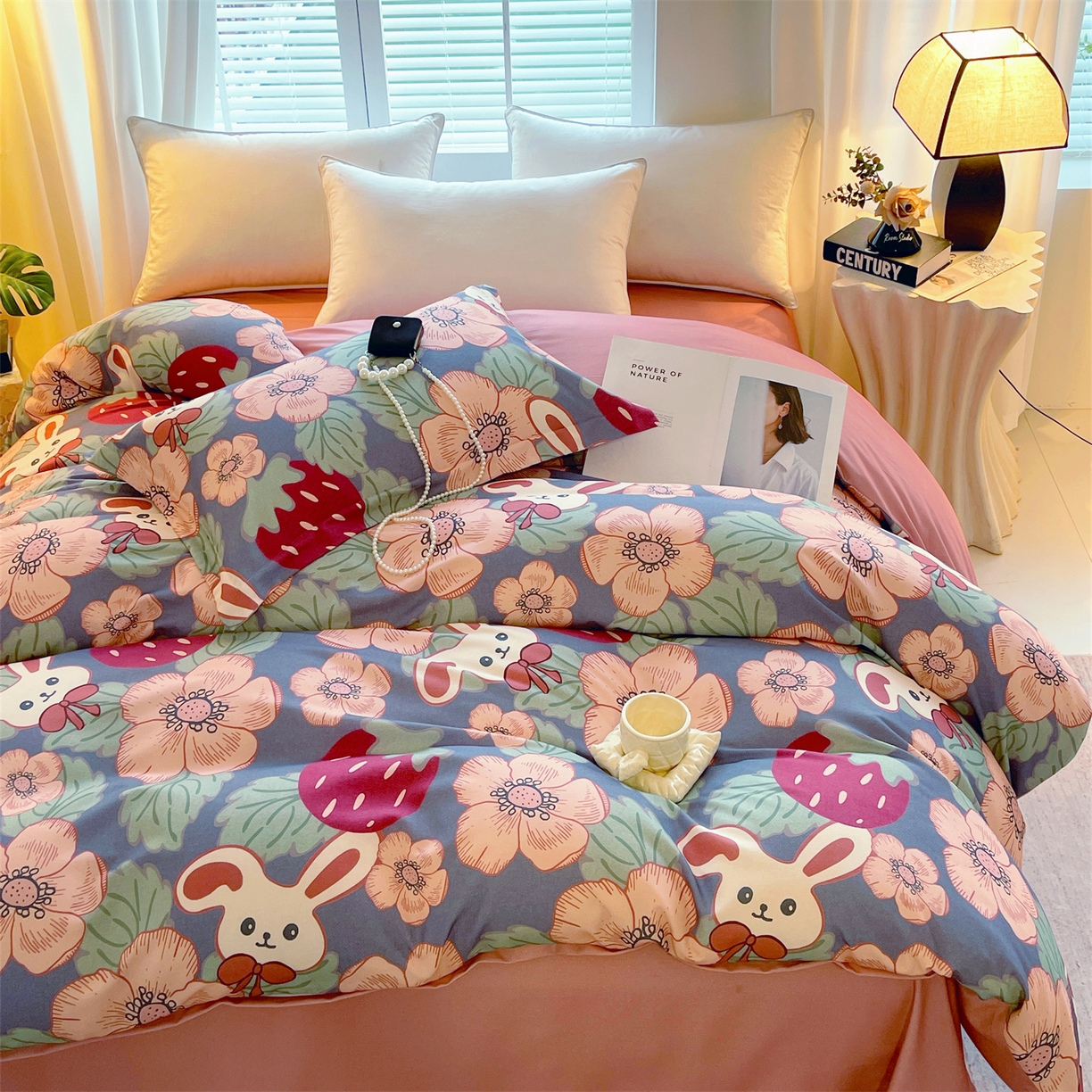 当前位置:凯磊家纺 > 凯磊家纺 2025新款AB版加厚磨毛系列四件套 草莓小兔蓝