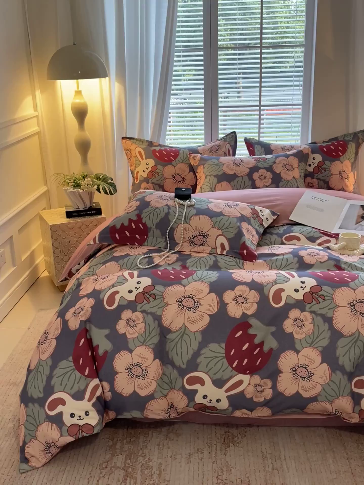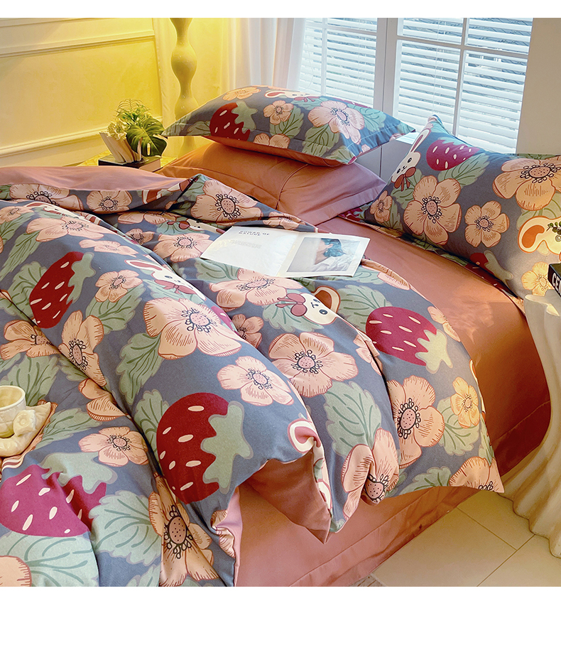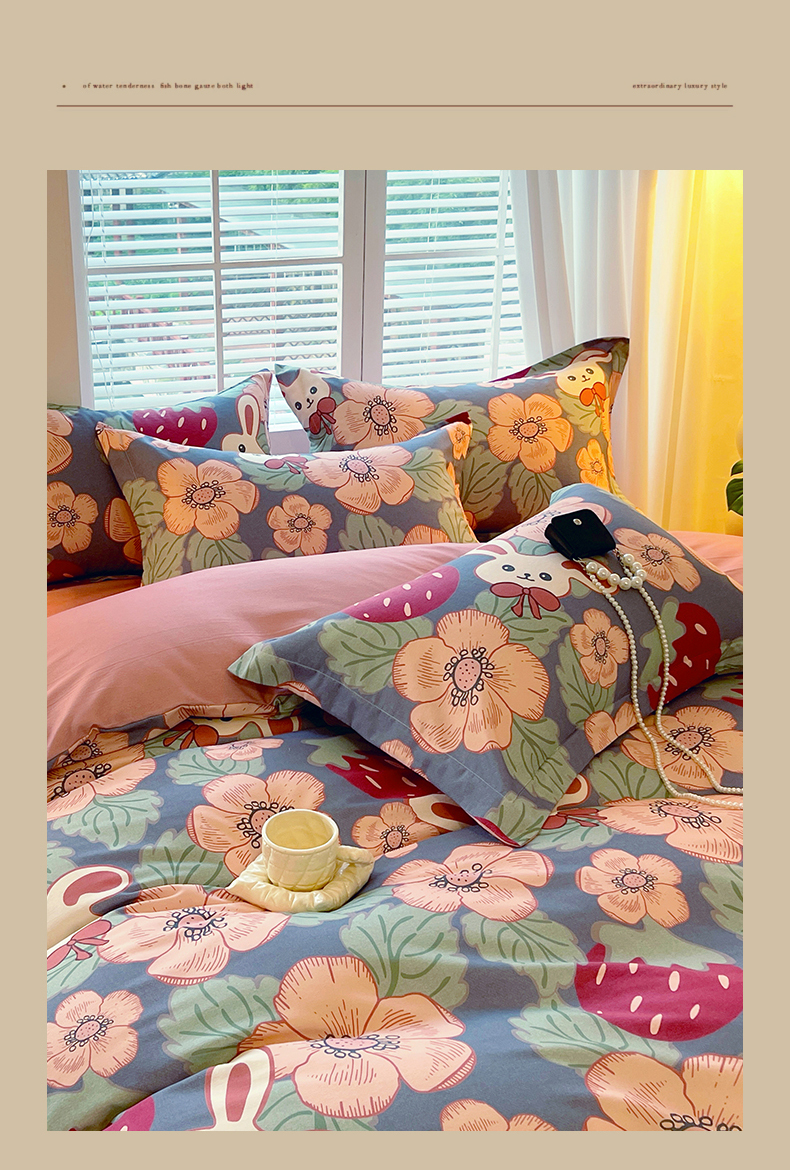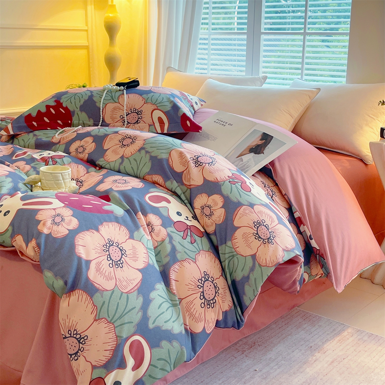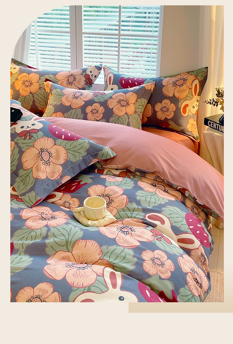 当前位置:凯磊家纺 > 凯磊家纺 2025新款AB版加厚磨毛系列四件套 草莓小兔蓝