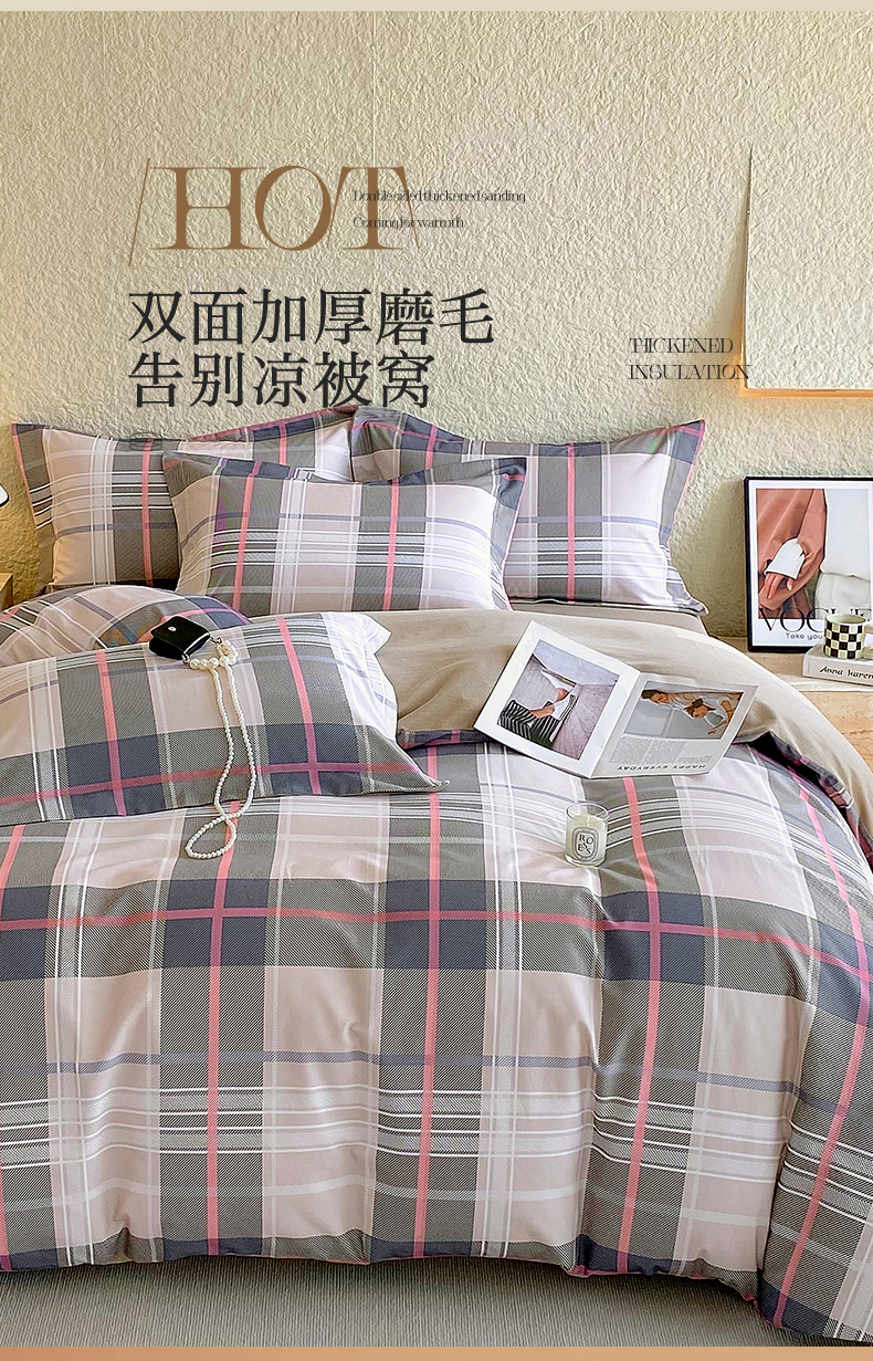 凯磊家纺 2025新款AB版加厚磨毛系列四件套 格韵空间