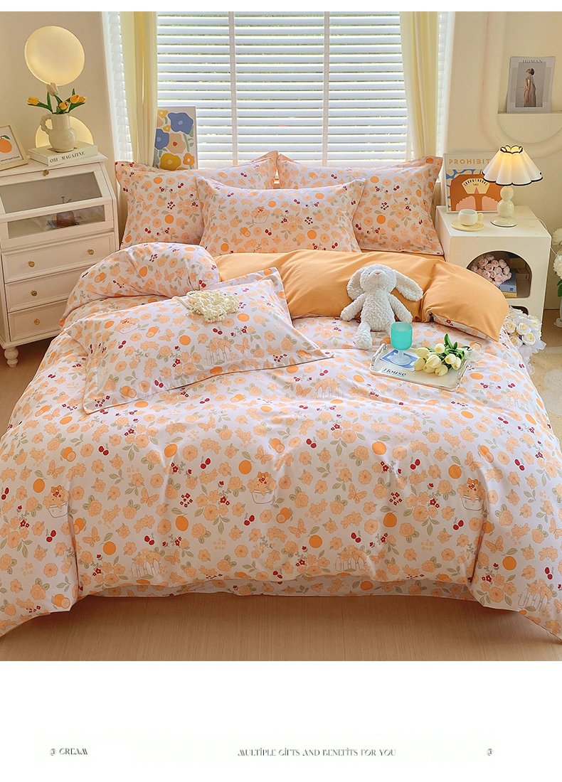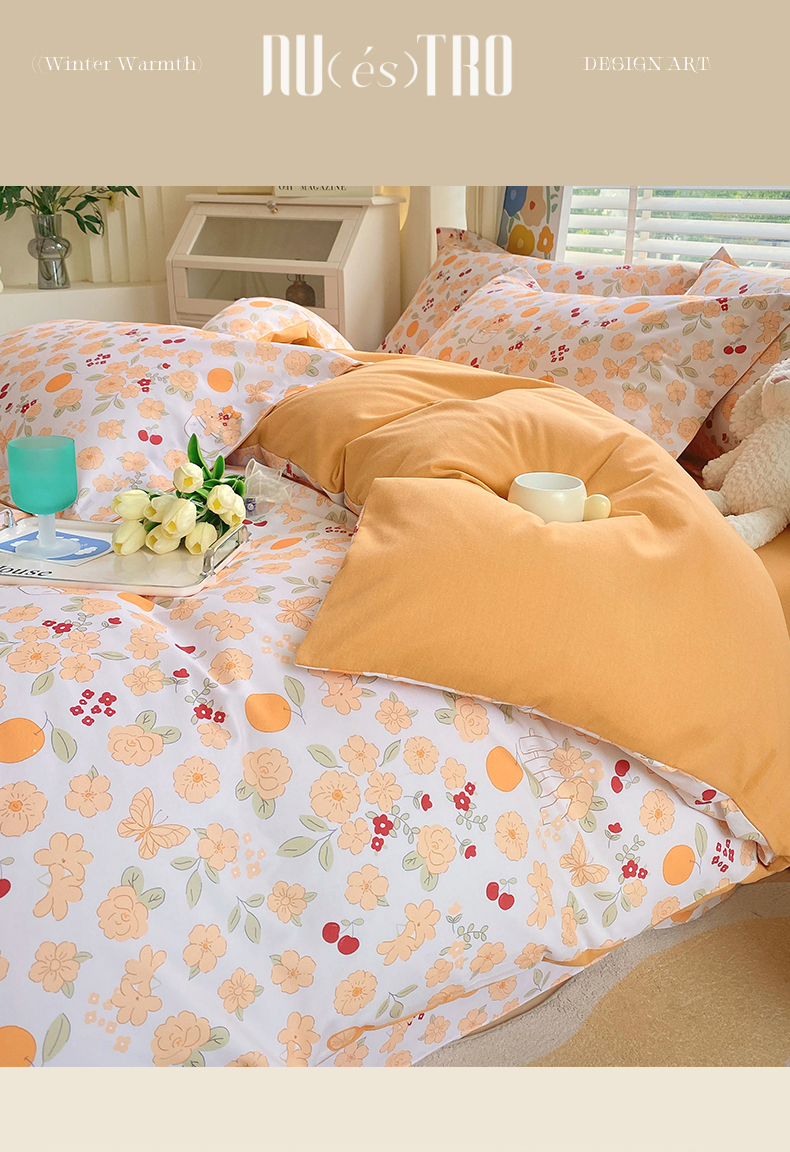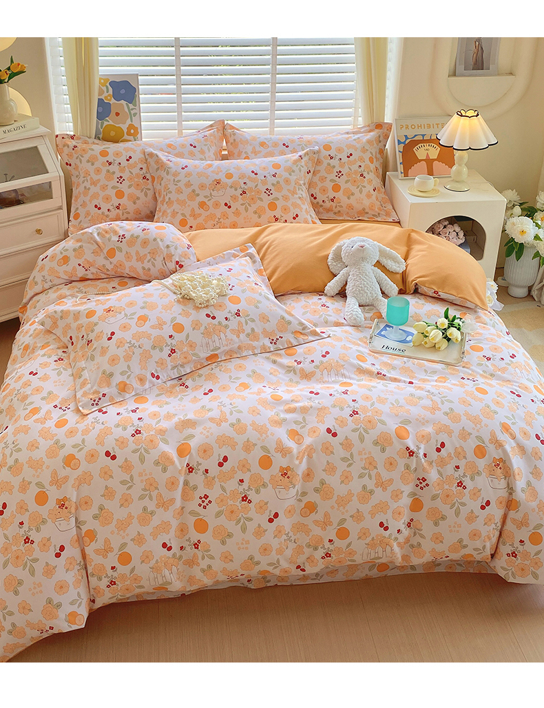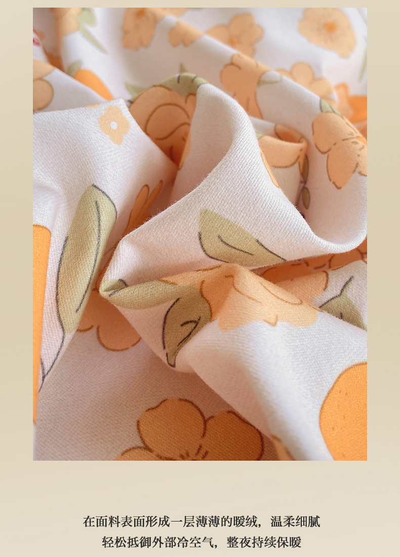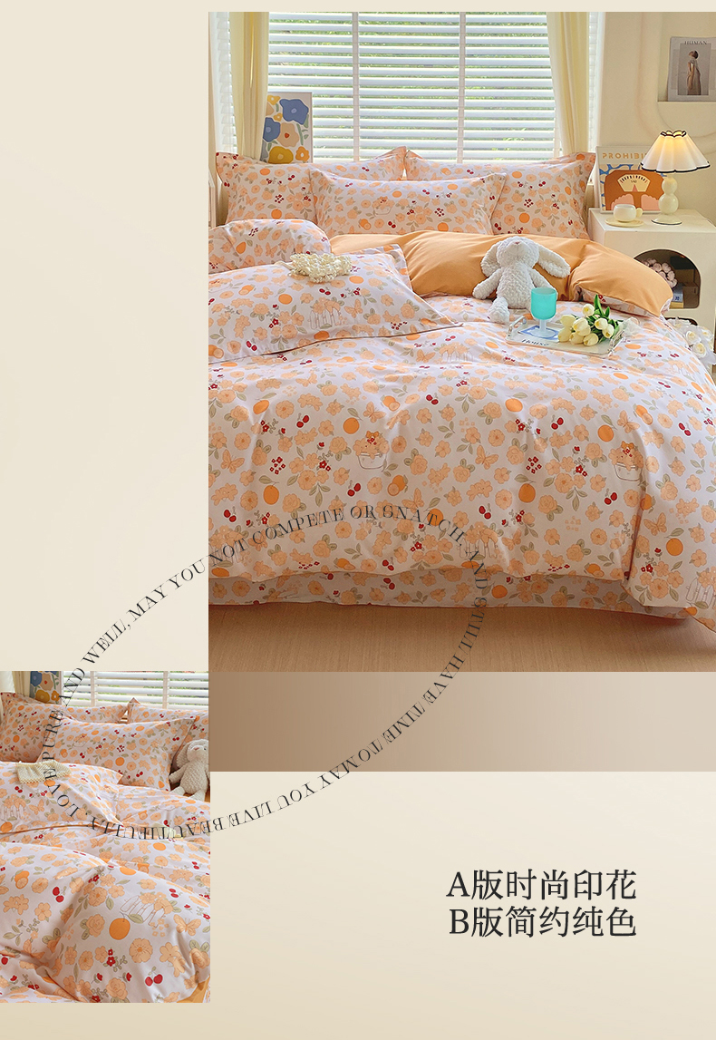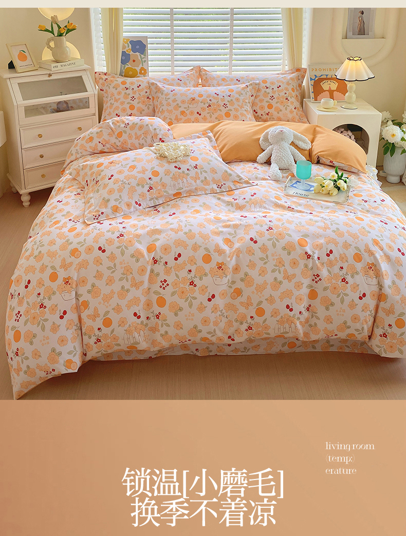 当前位置:凯磊家纺 > 凯磊家纺 2025新款AB版加厚磨毛系列四件套 橘朵