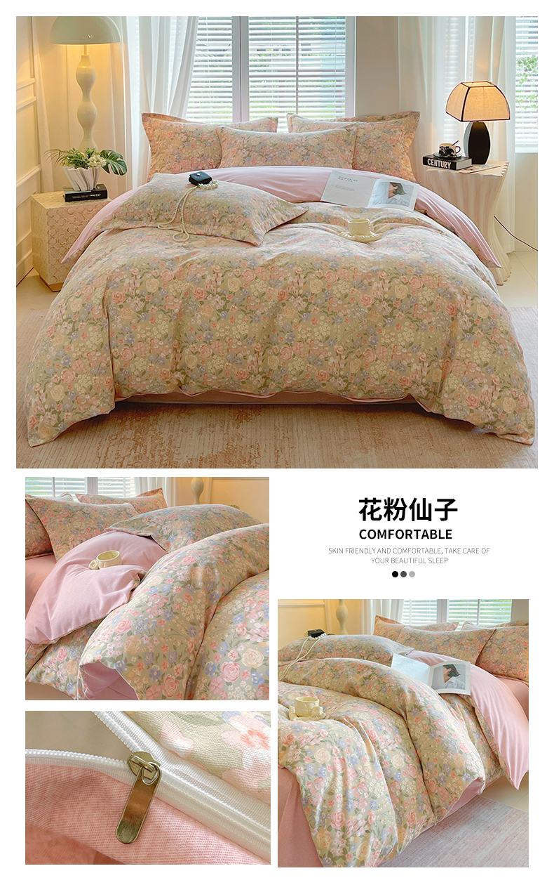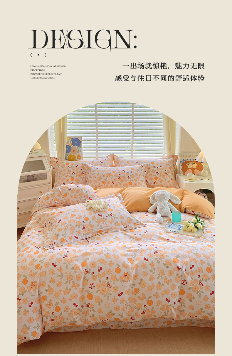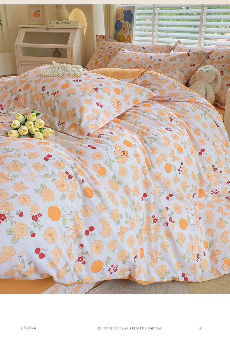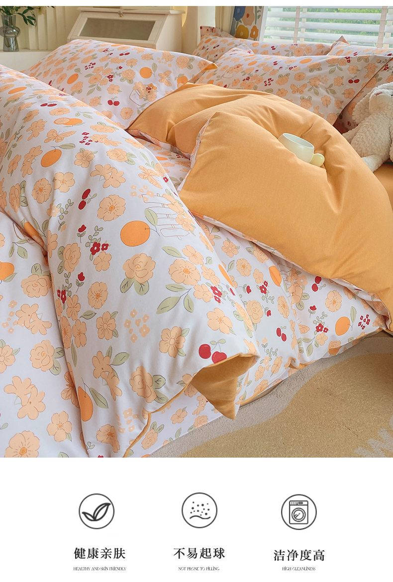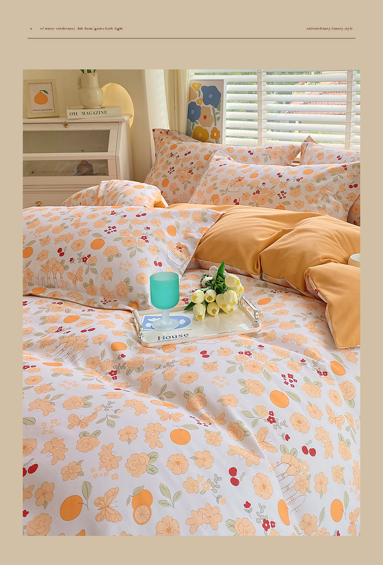 当前位置:凯磊家纺 > 凯磊家纺 2025新款AB版加厚磨毛系列四件套 橘朵