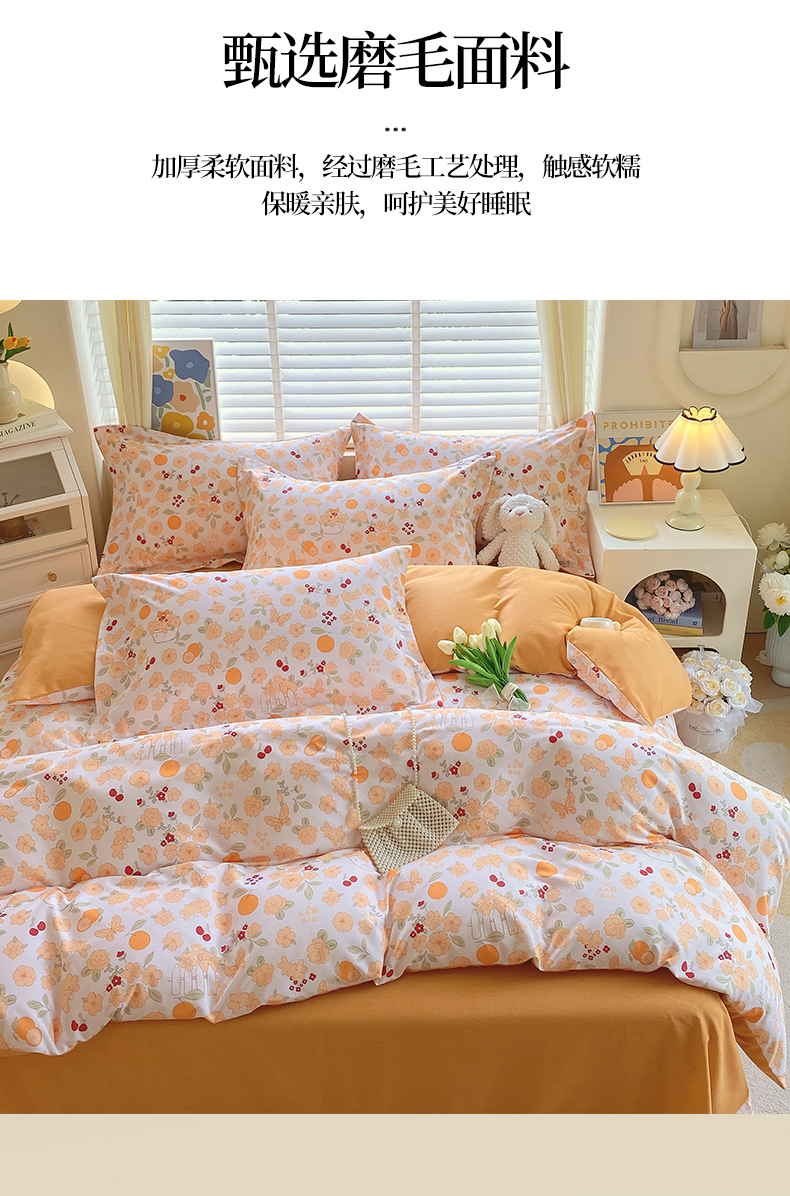 凯磊家纺 - 凯磊家纺 2025新款AB版加厚磨毛系列四件套 橘朵
