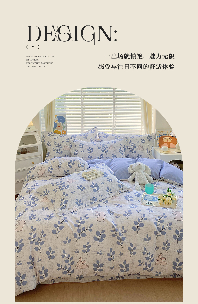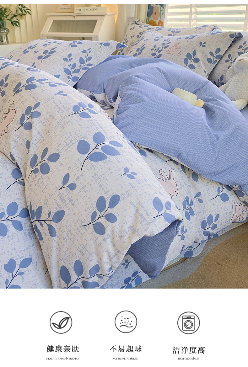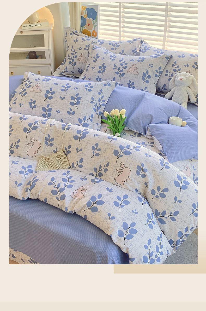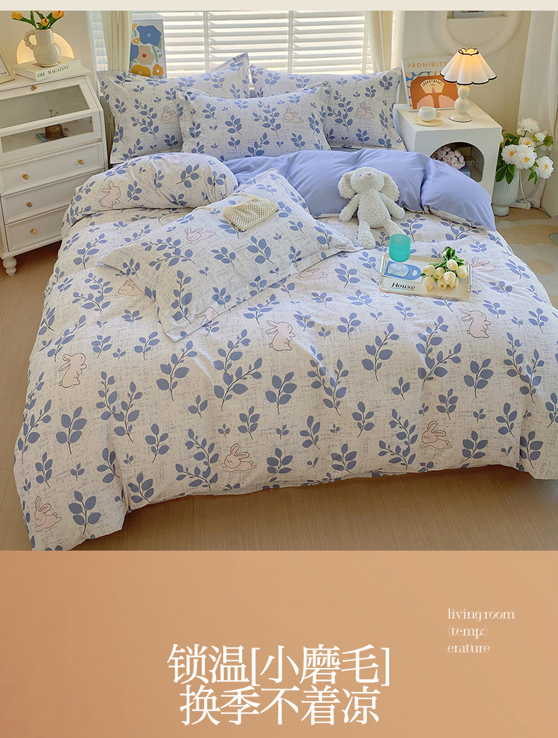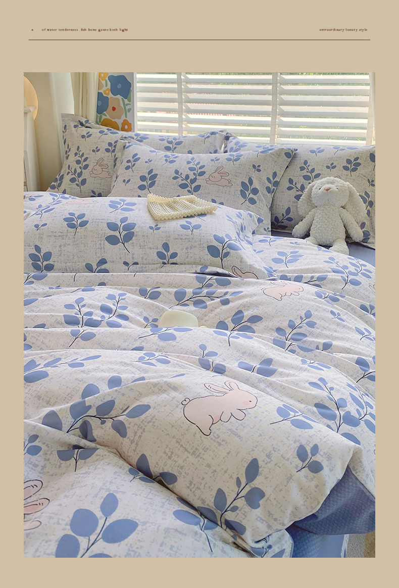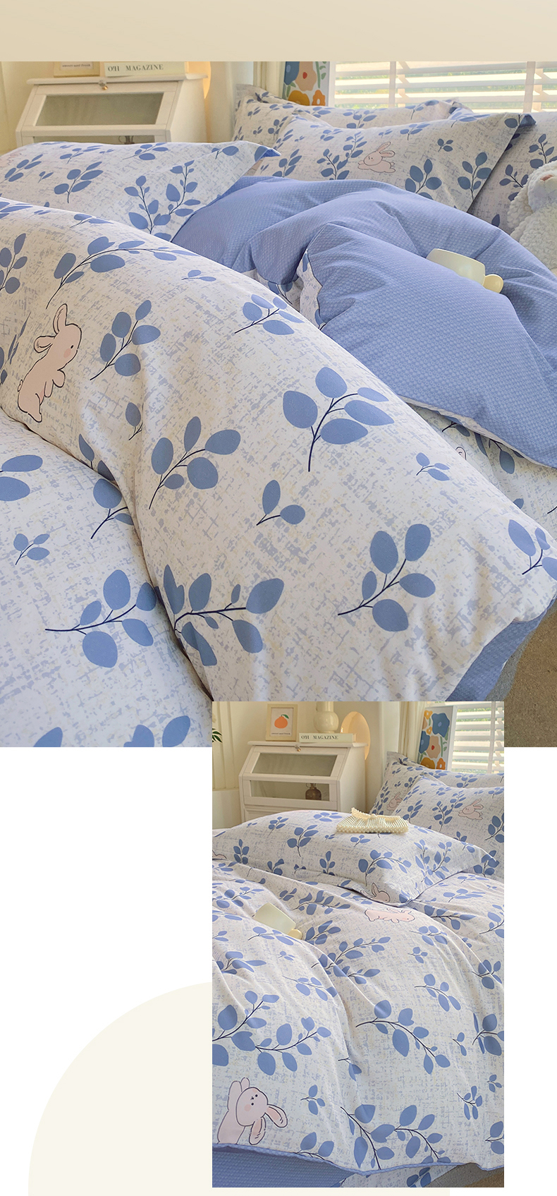 当前位置:凯磊家纺 > 凯磊家纺 2025新款AB版加厚磨毛系列四件套 蓝枝小兔