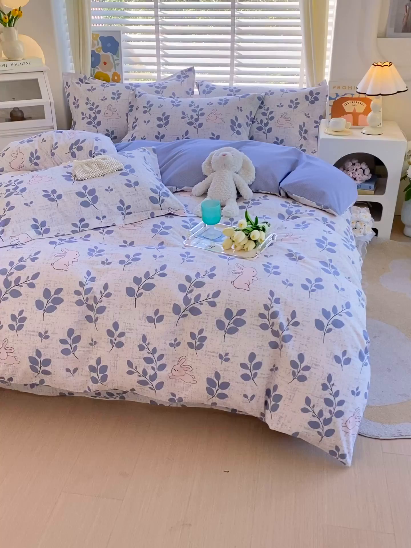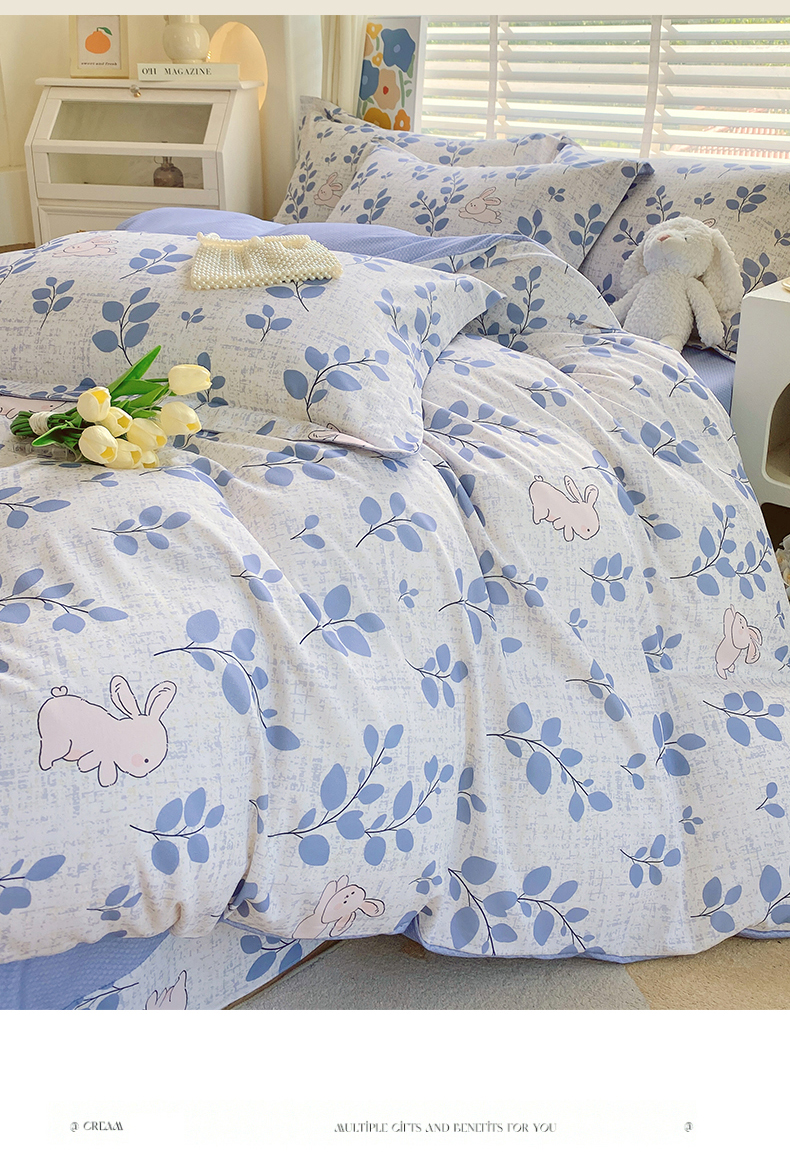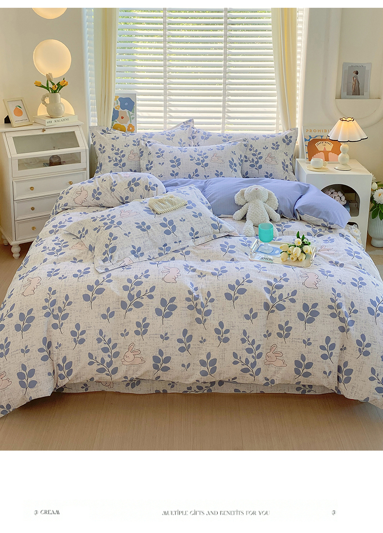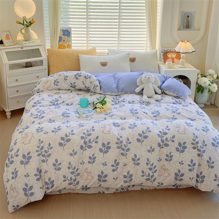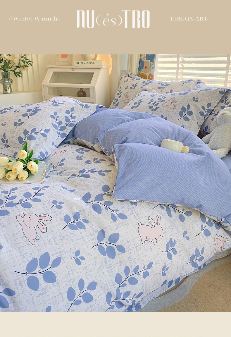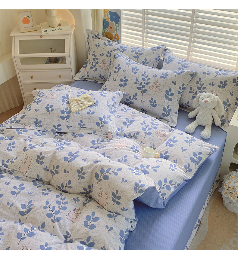 当前位置:凯磊家纺 > 凯磊家纺 2025新款AB版加厚磨毛系列四件套 蓝枝小兔