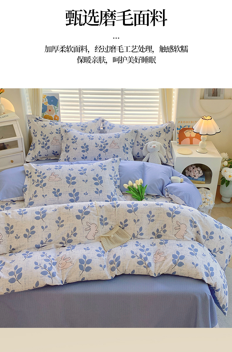 凯磊家纺 - 凯磊家纺 2025新款AB版加厚磨毛系列四件套 蓝枝小兔