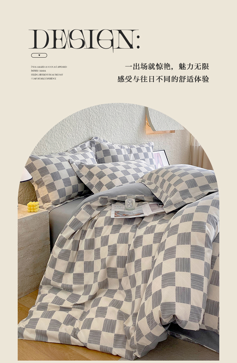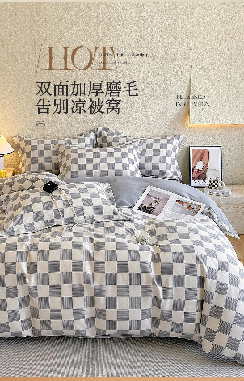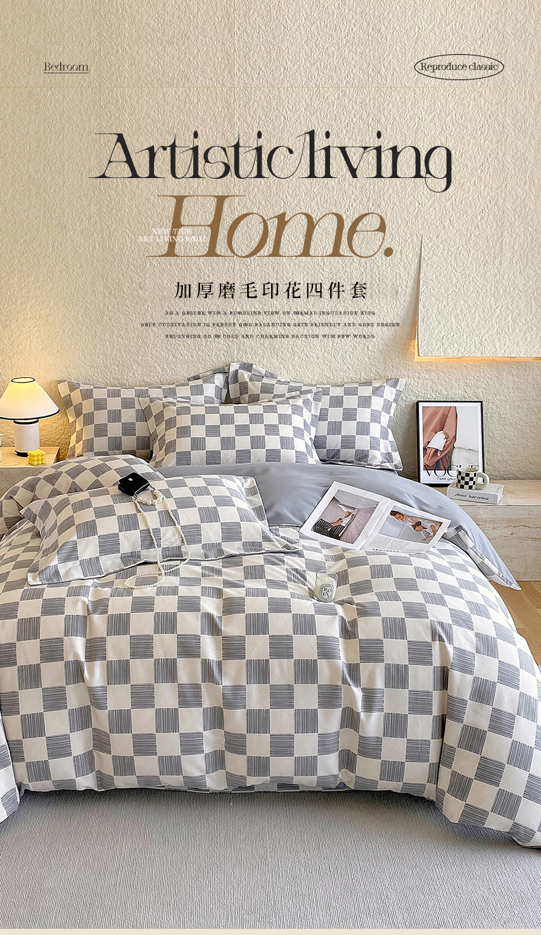 当前位置:凯磊家纺 > 凯磊家纺 2025新款AB版加厚磨毛系列四件套 棋盘格