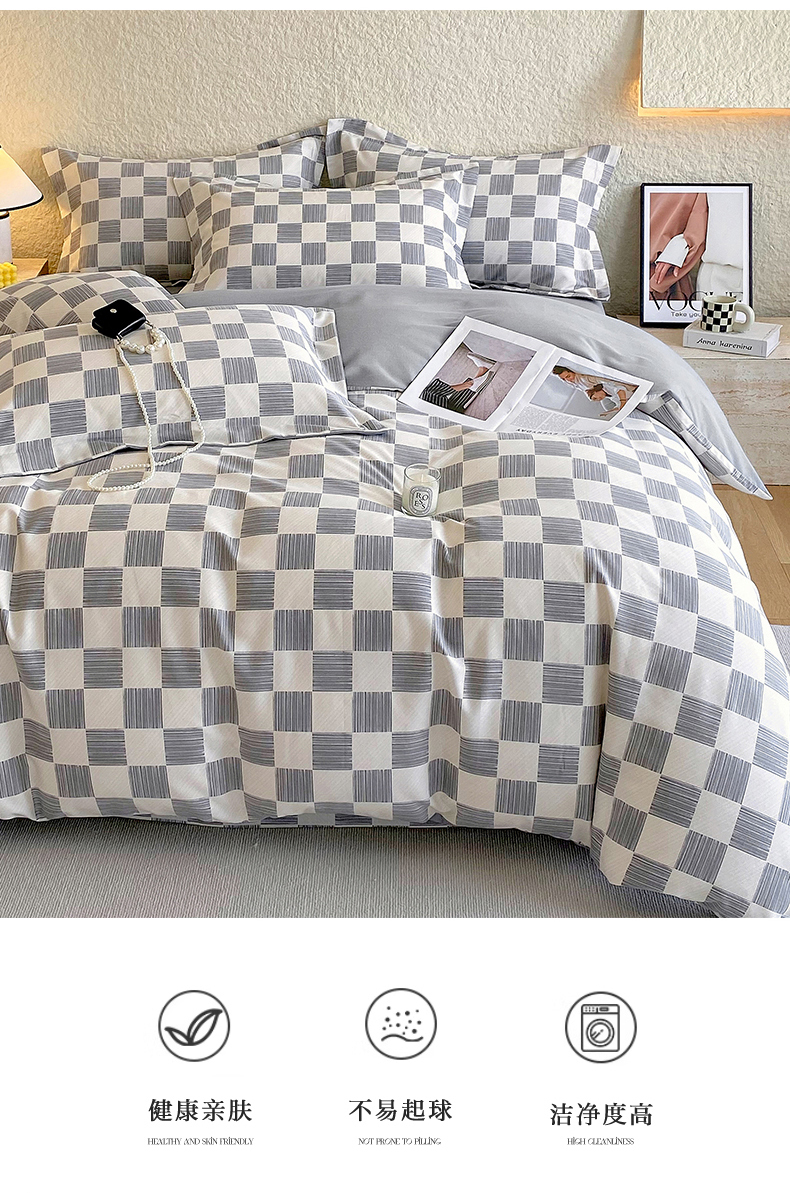 凯磊家纺 2025新款AB版加厚磨毛系列四件套 棋盘格