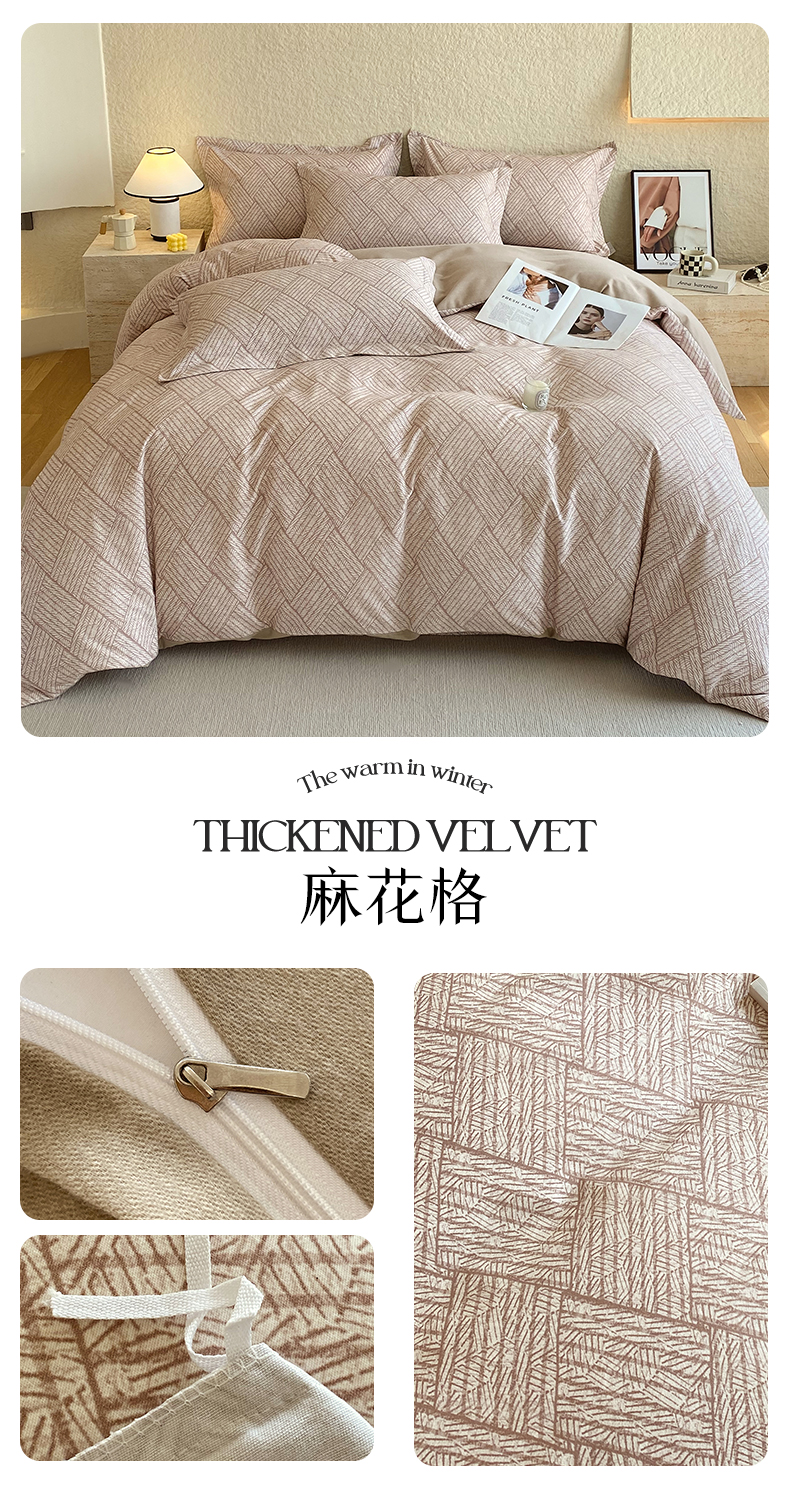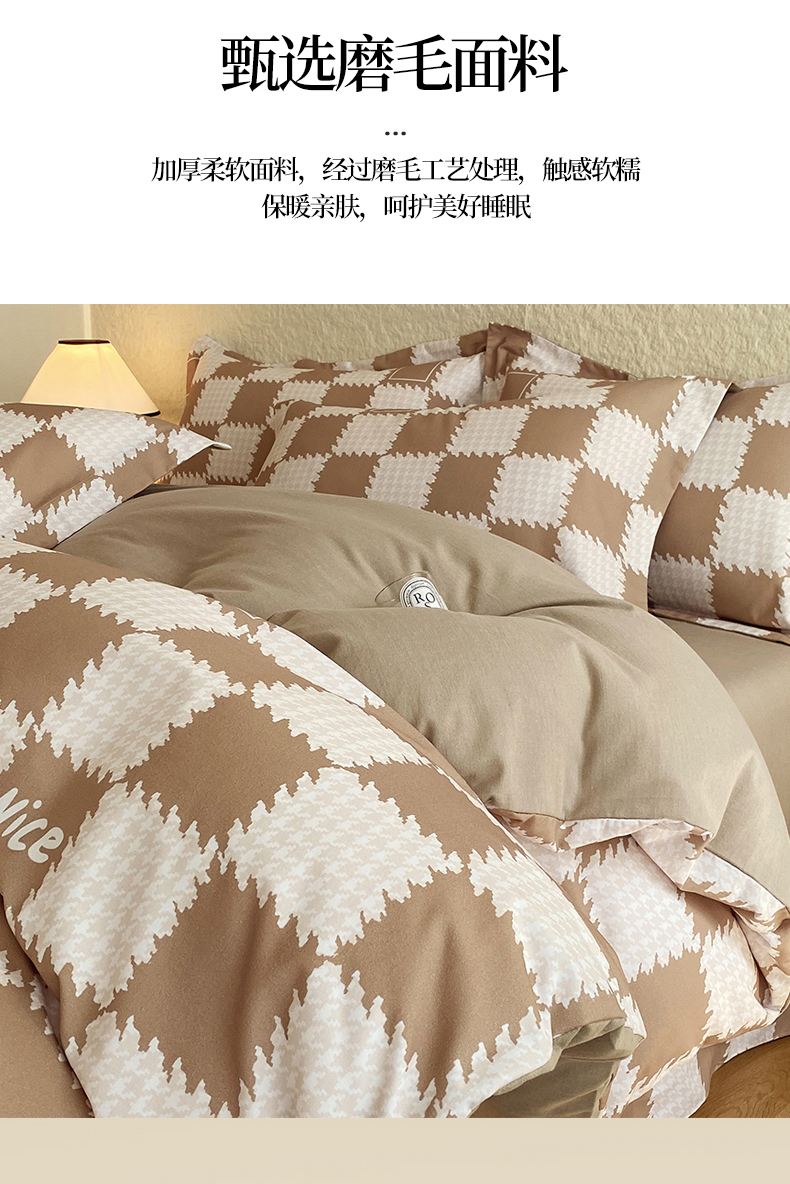 当前位置:凯磊家纺 > 凯磊家纺 2025新款AB版加厚磨毛系列四件套 千鸟格