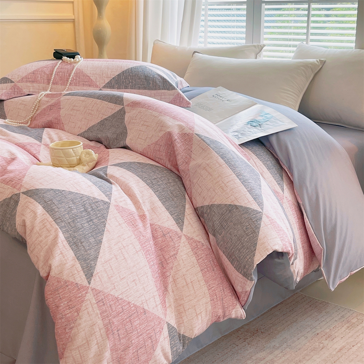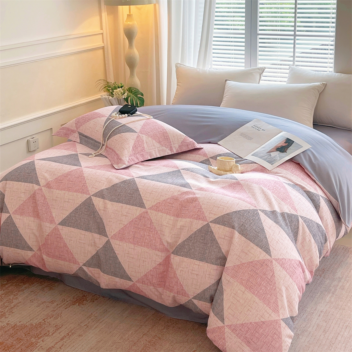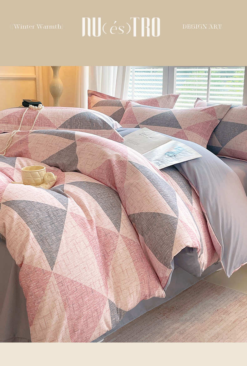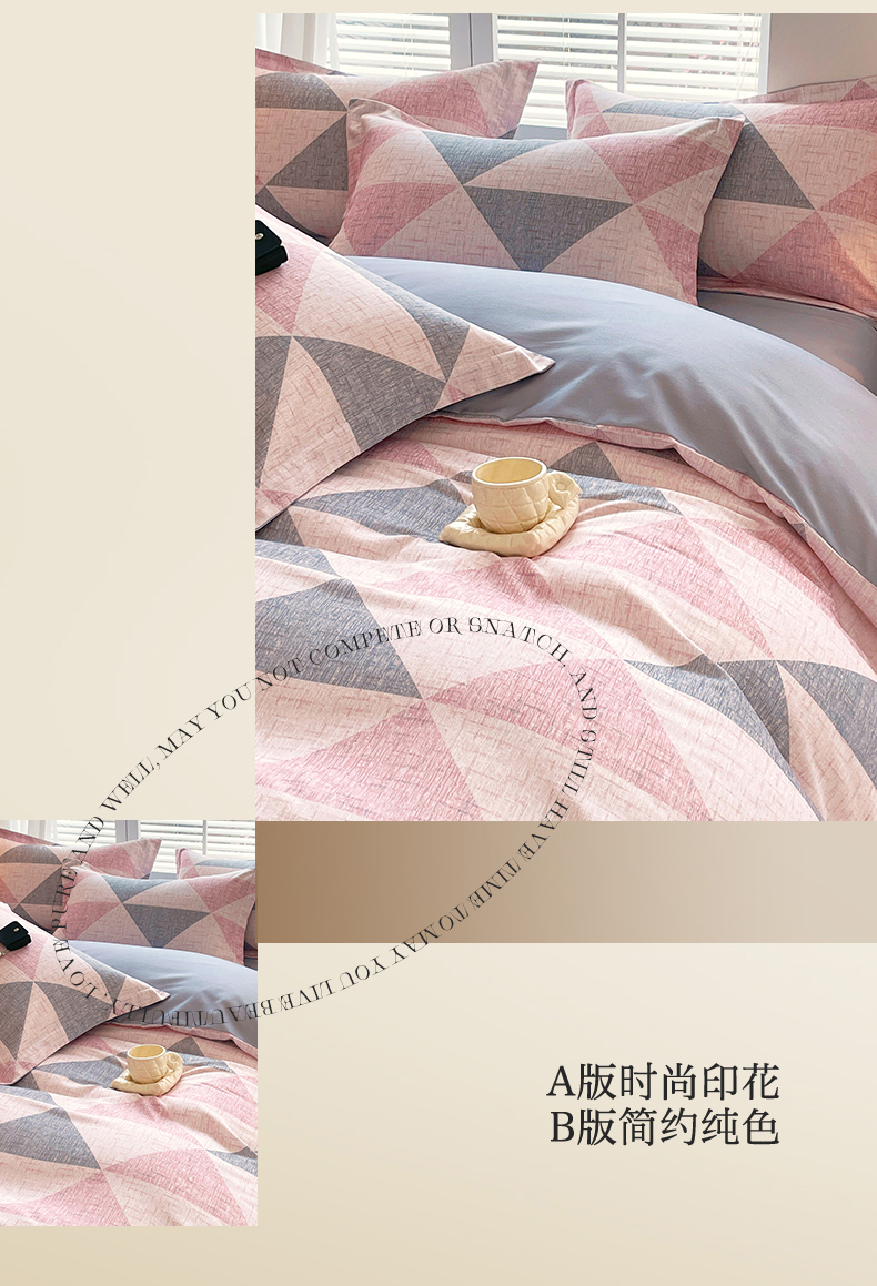 当前位置:凯磊家纺 > 凯磊家纺 2025新款AB版加厚磨毛系列四件套 晴空粉