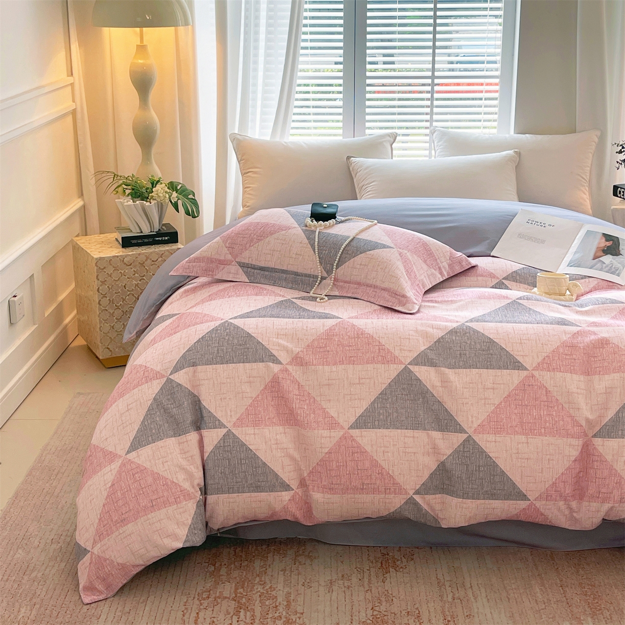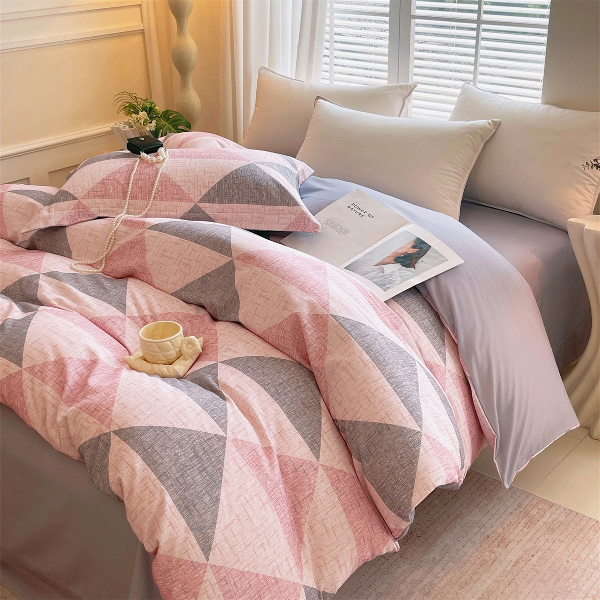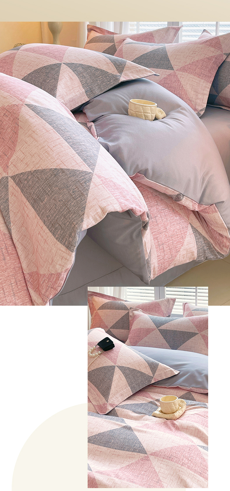当前位置:凯磊家纺 > 凯磊家纺 2025新款AB版加厚磨毛系列四件套 晴空粉