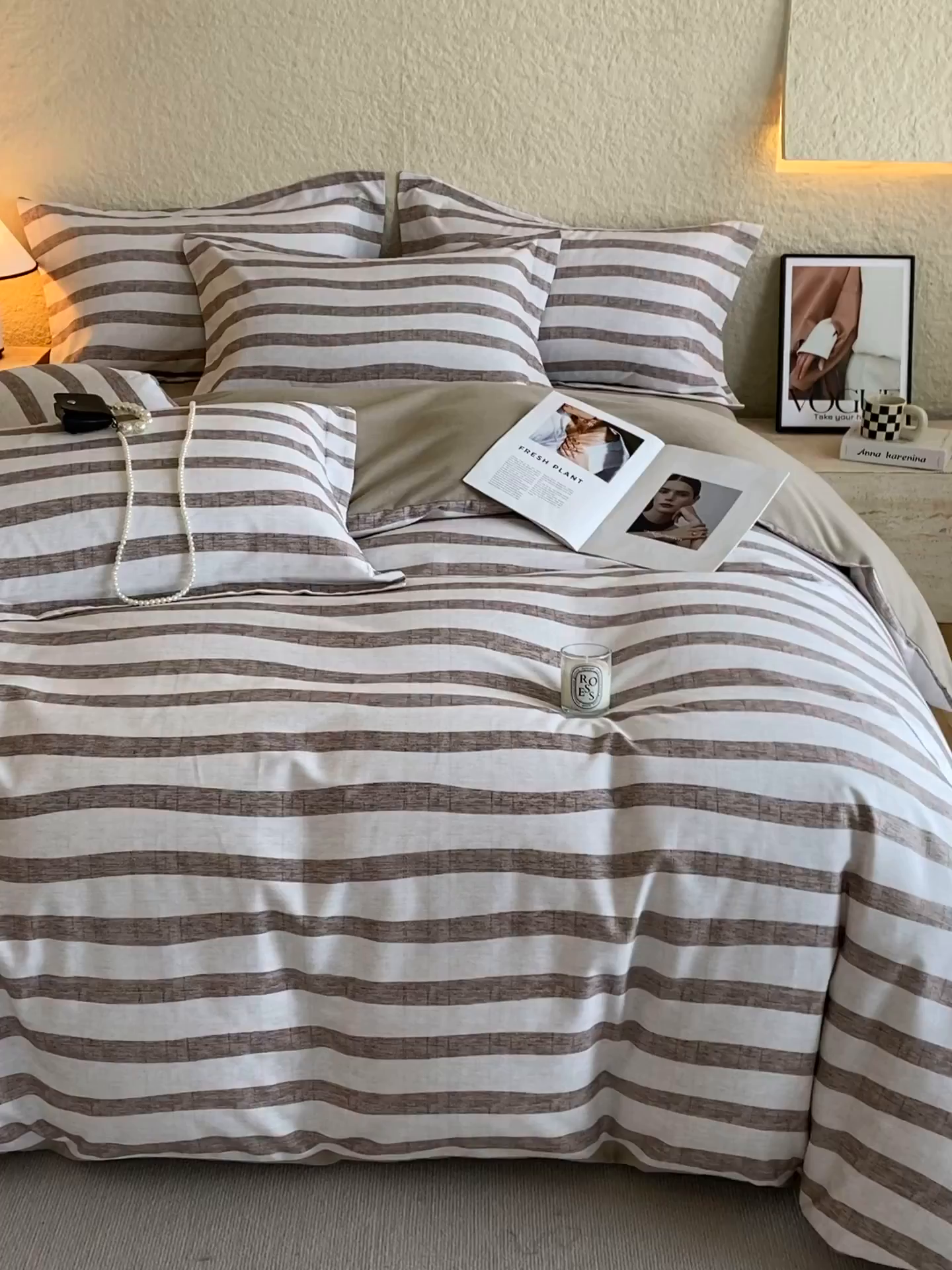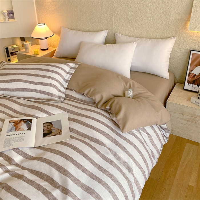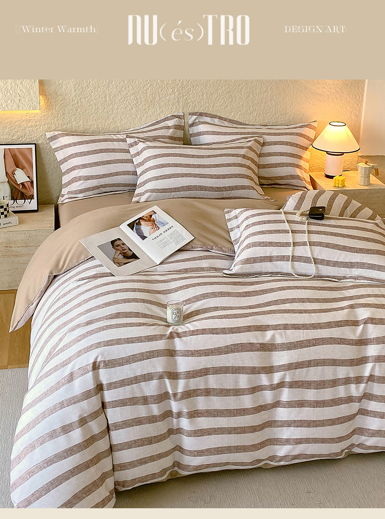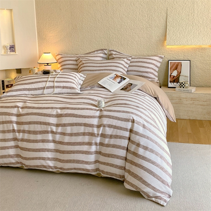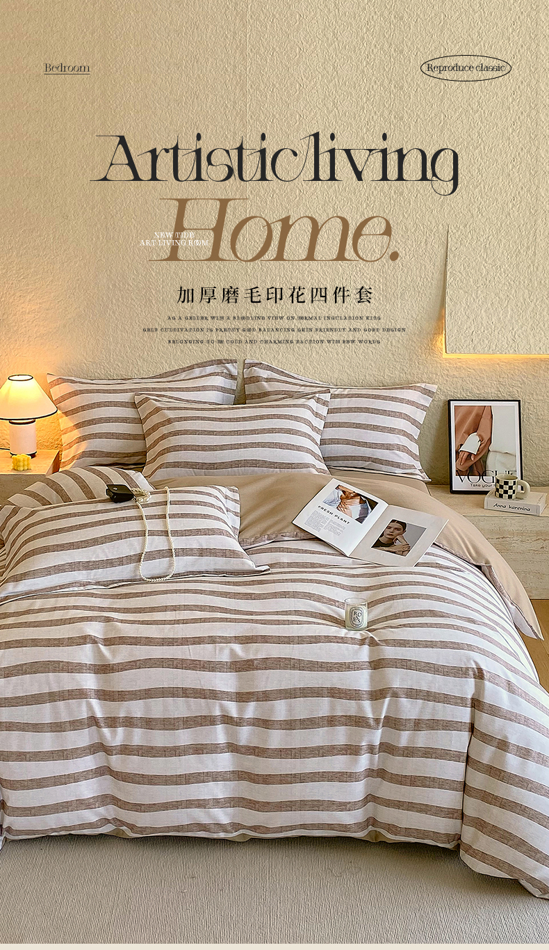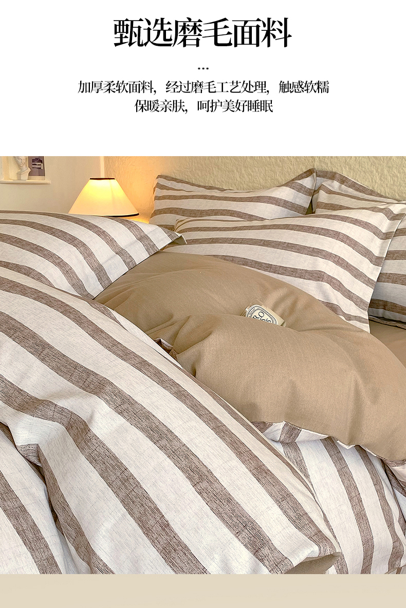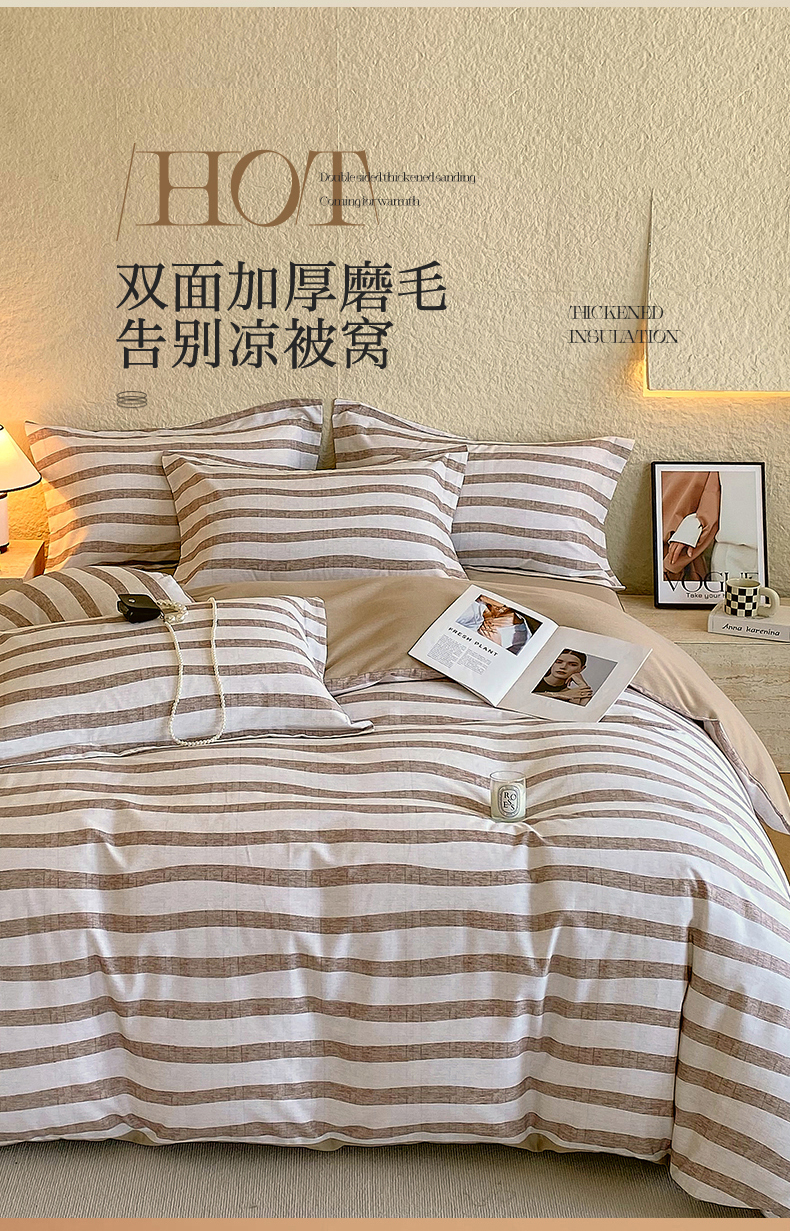 当前位置:凯磊家纺 > 凯磊家纺 2025新款AB版加厚磨毛系列四件套 曲线条纹-咖