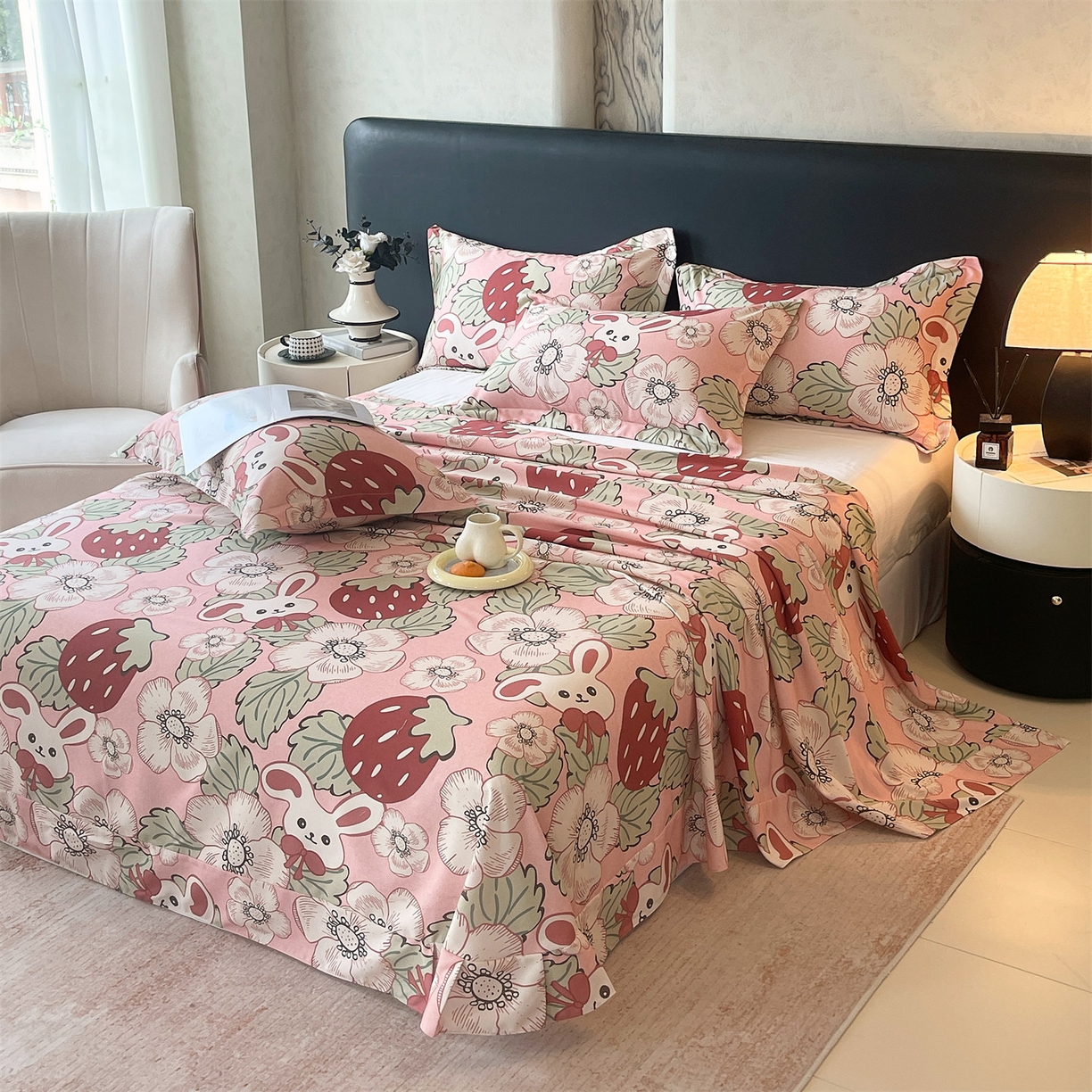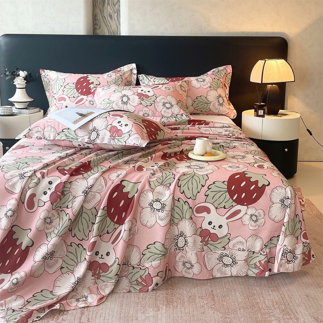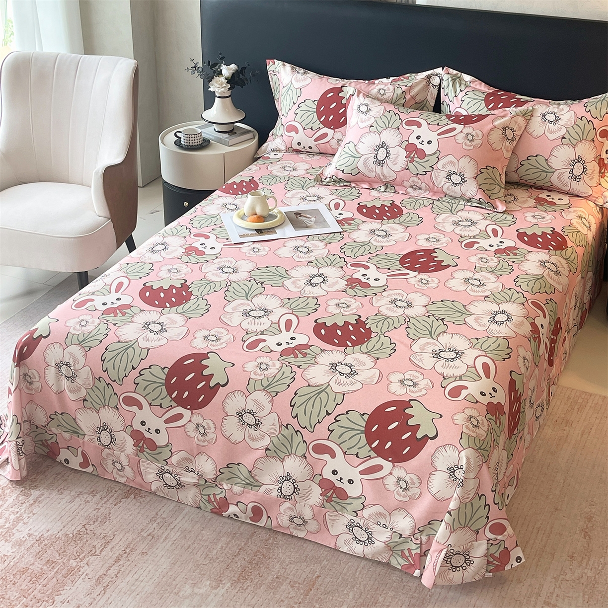 凯磊家纺 2025新款AB版加厚磨毛系列单床单 草莓小兔粉