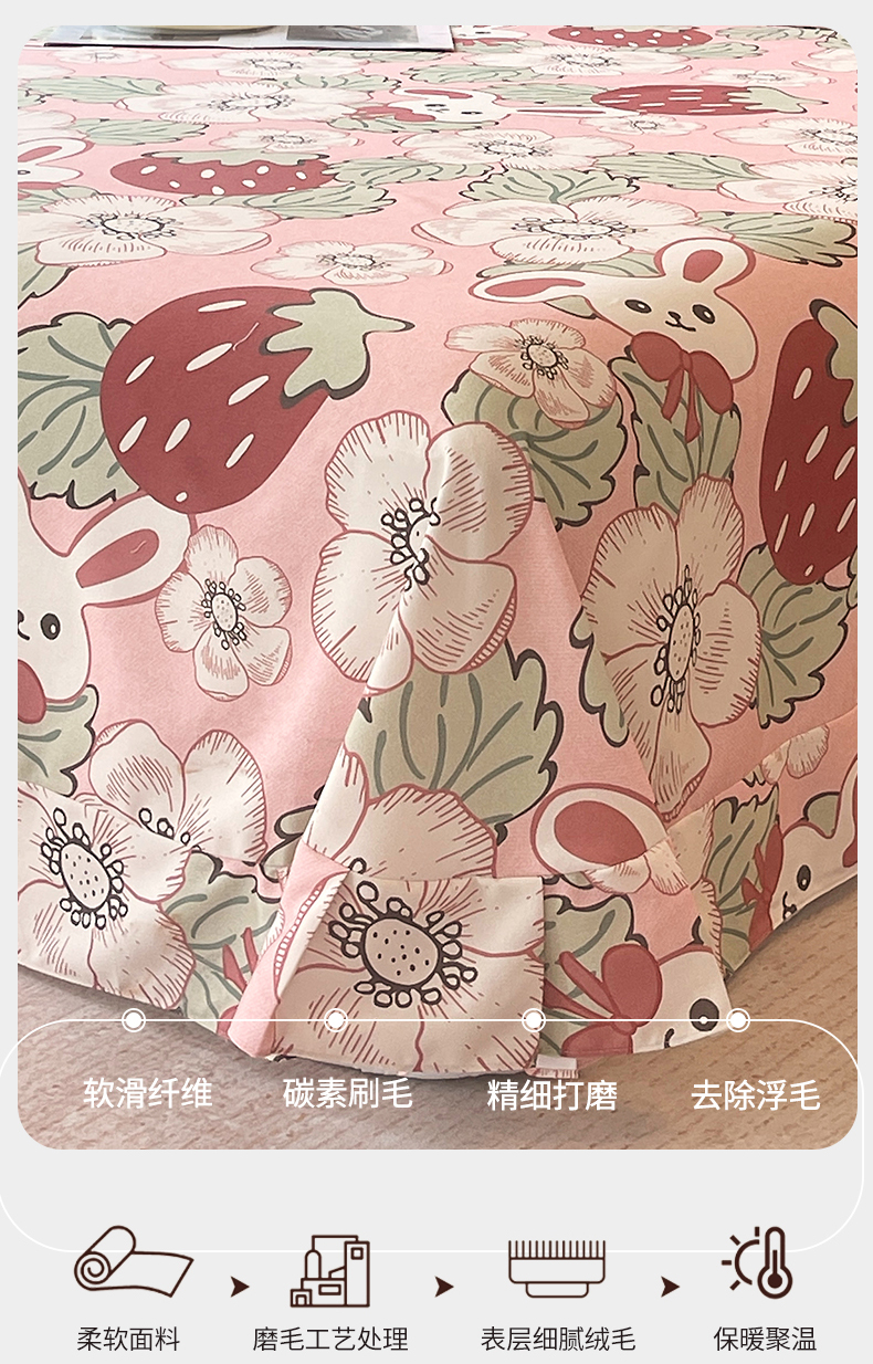 凯磊家纺 - 凯磊家纺 2025新款AB版加厚磨毛系列单床单 草莓小兔粉