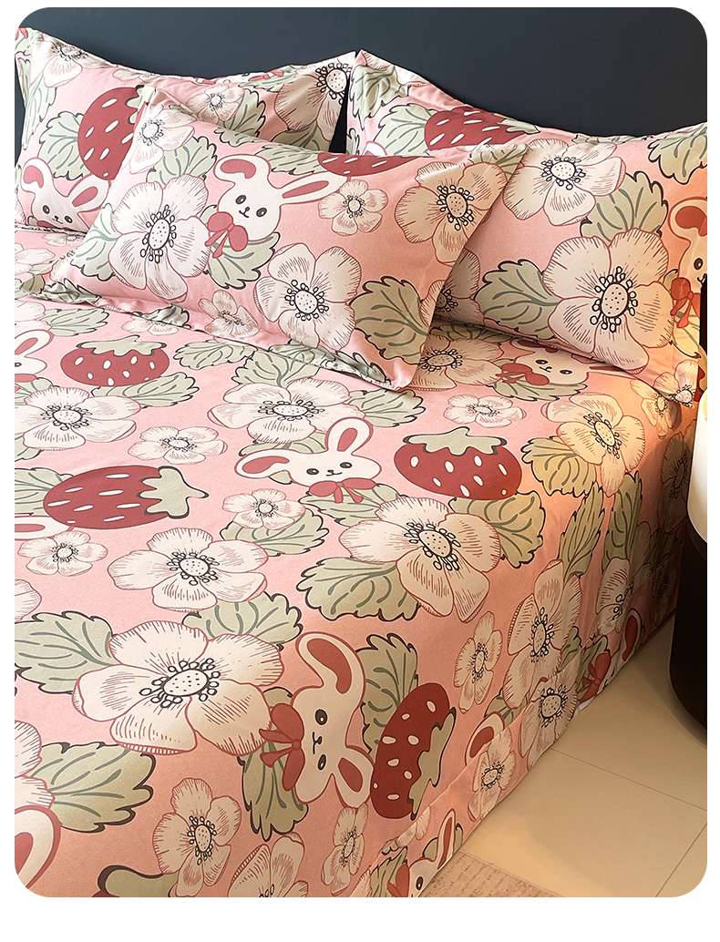 当前位置:凯磊家纺 > 凯磊家纺 2025新款AB版加厚磨毛系列单床单 草莓小兔粉
