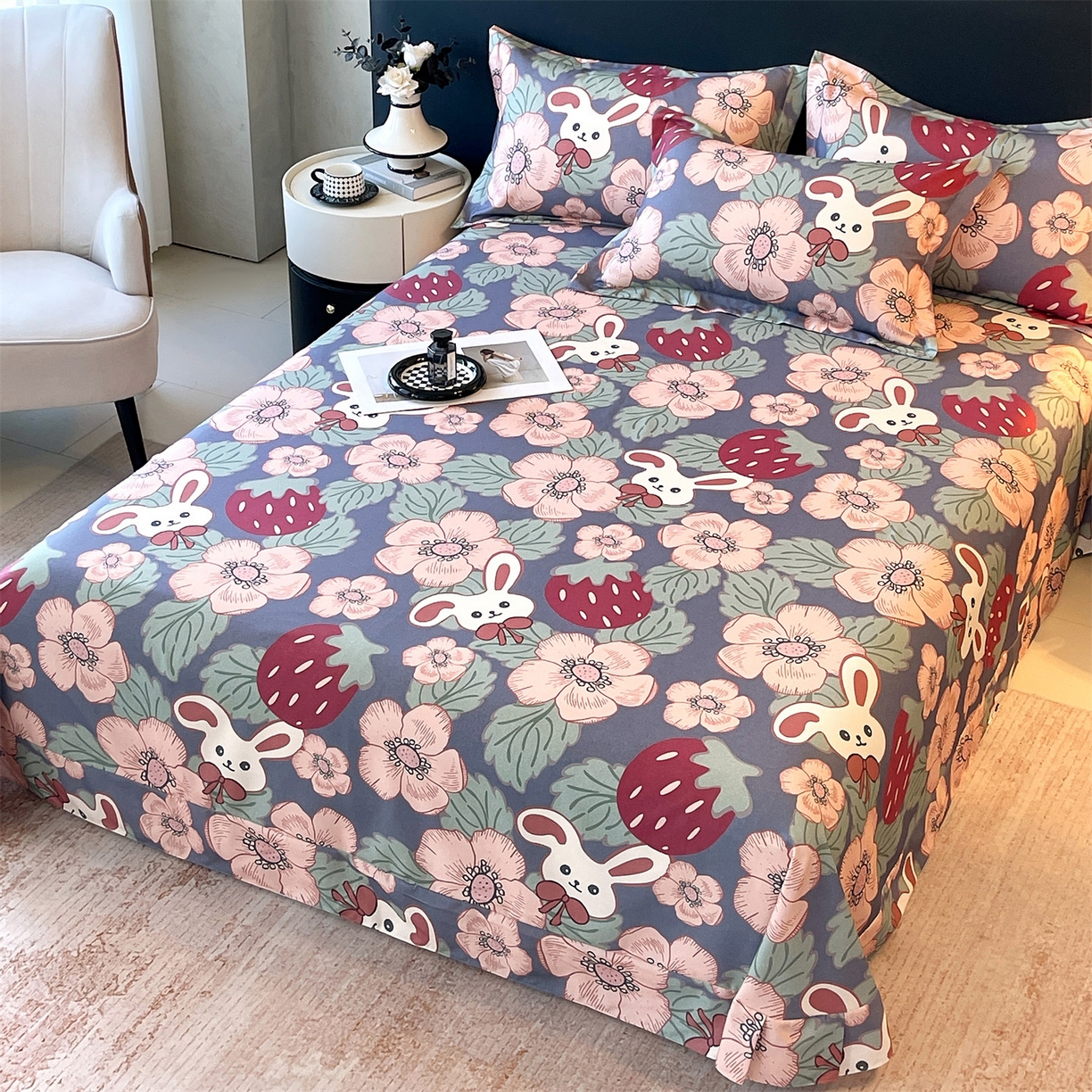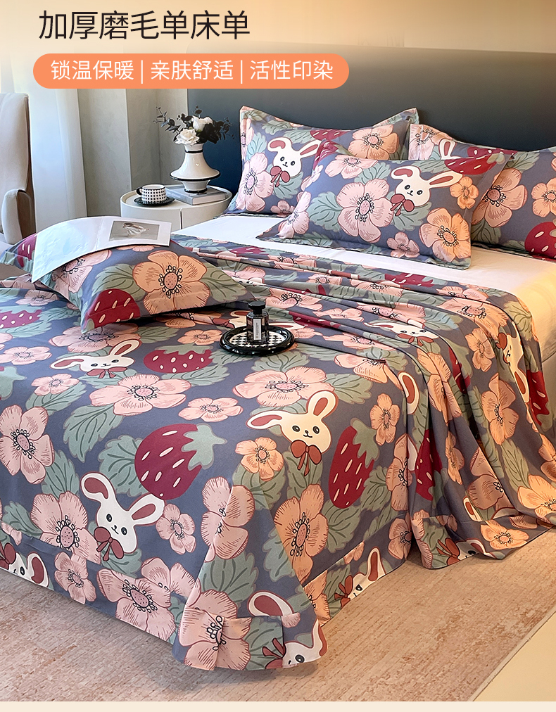 凯磊家纺 2025新款AB版加厚磨毛系列单床单 草莓小兔蓝