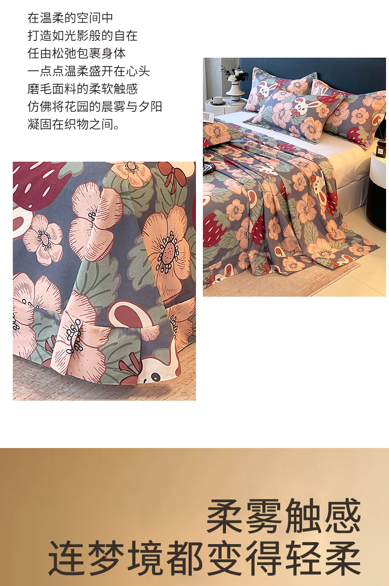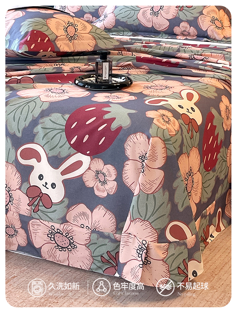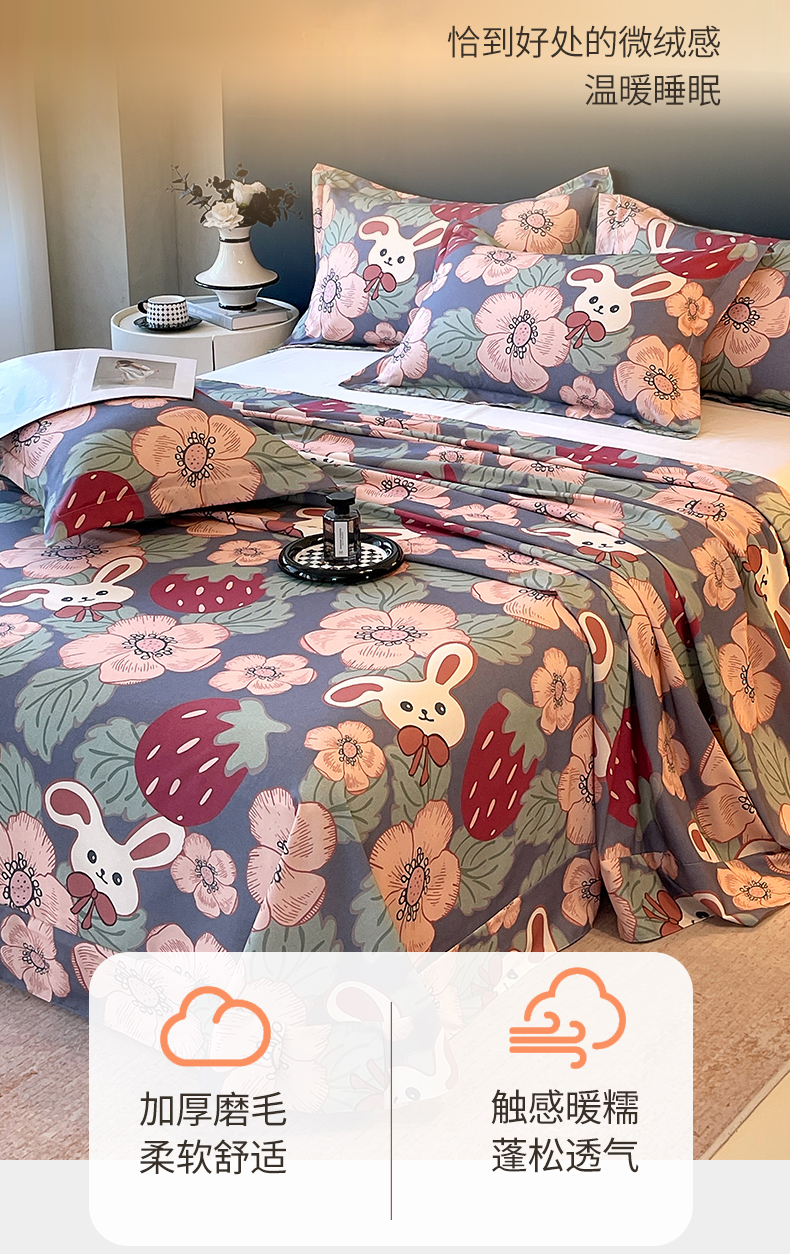 当前位置:凯磊家纺 > 凯磊家纺 2025新款AB版加厚磨毛系列单床单 草莓小兔蓝