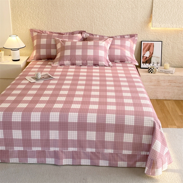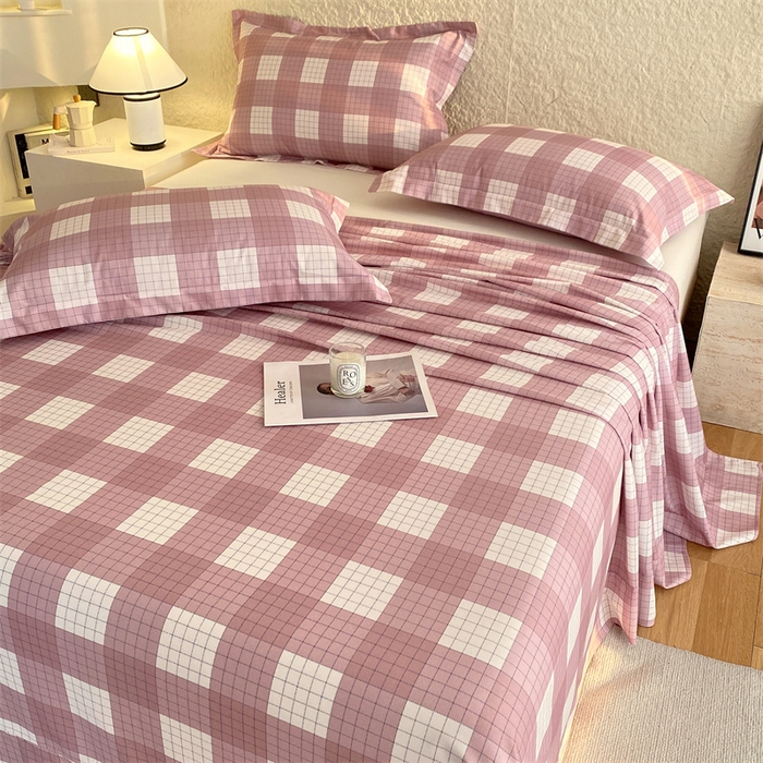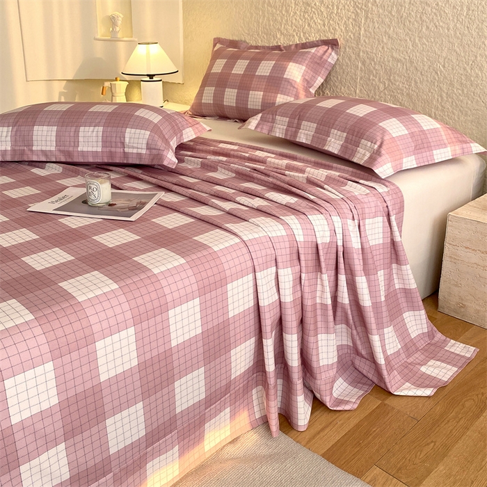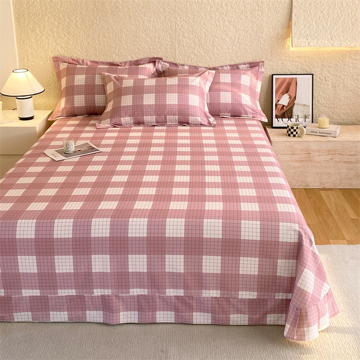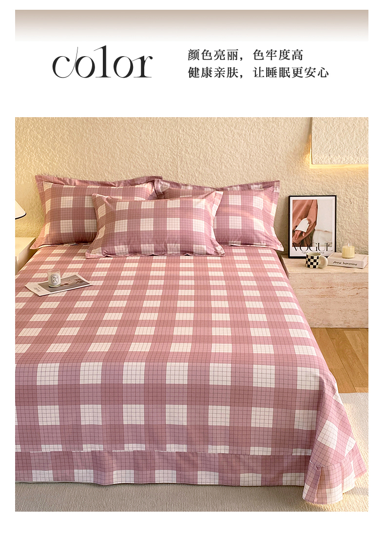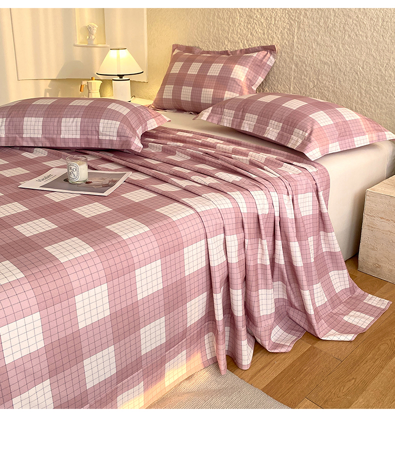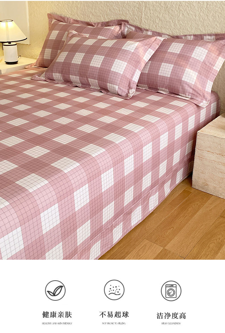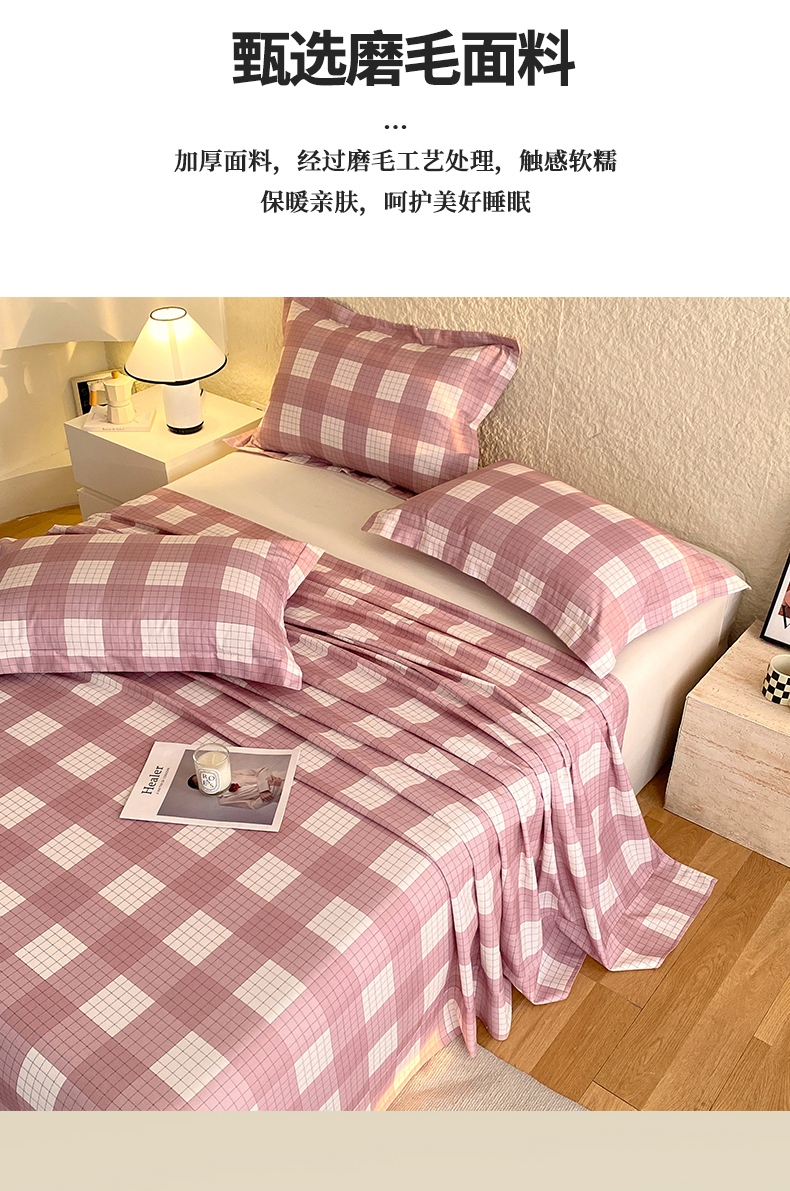 凯磊家纺 2025新款AB版加厚磨毛系列单床单 粉格子