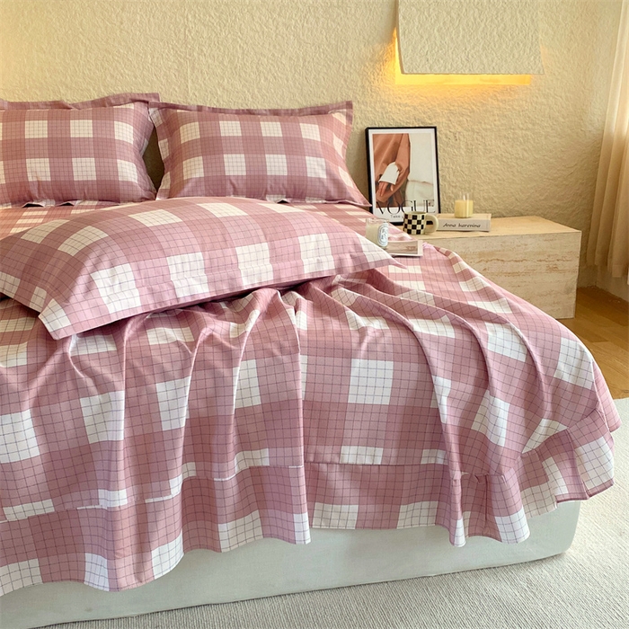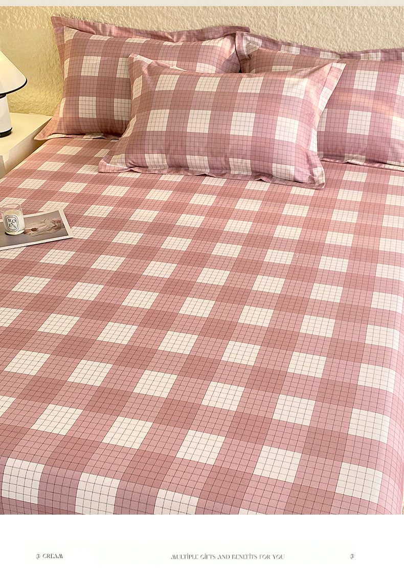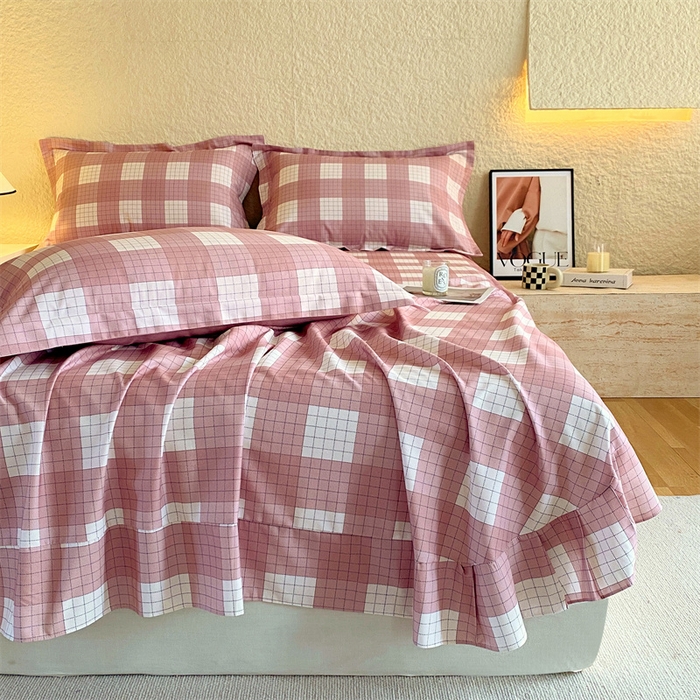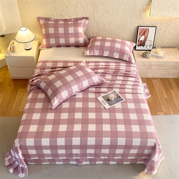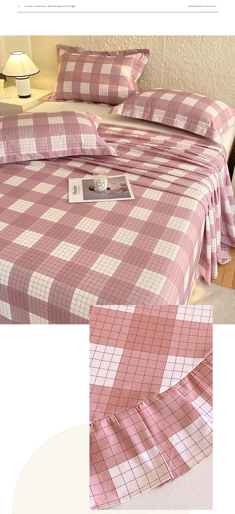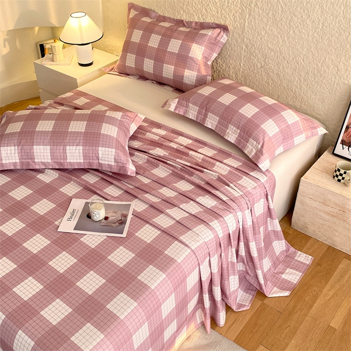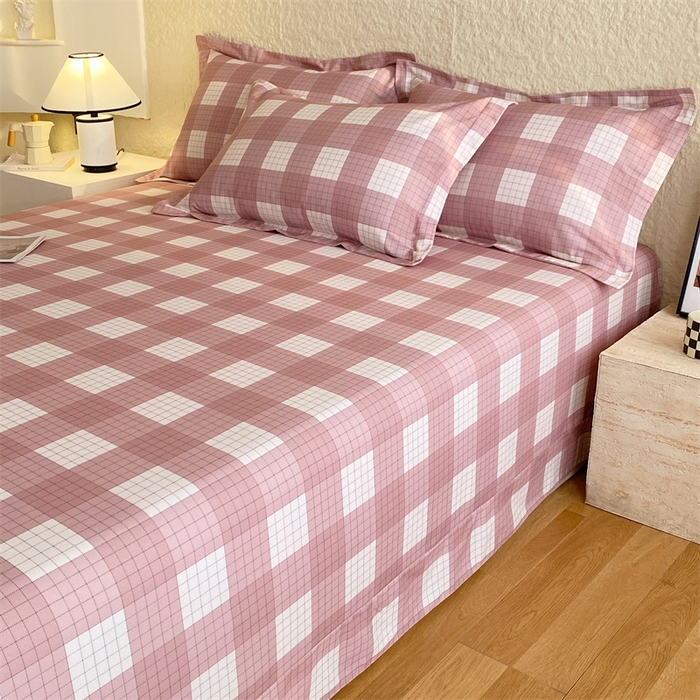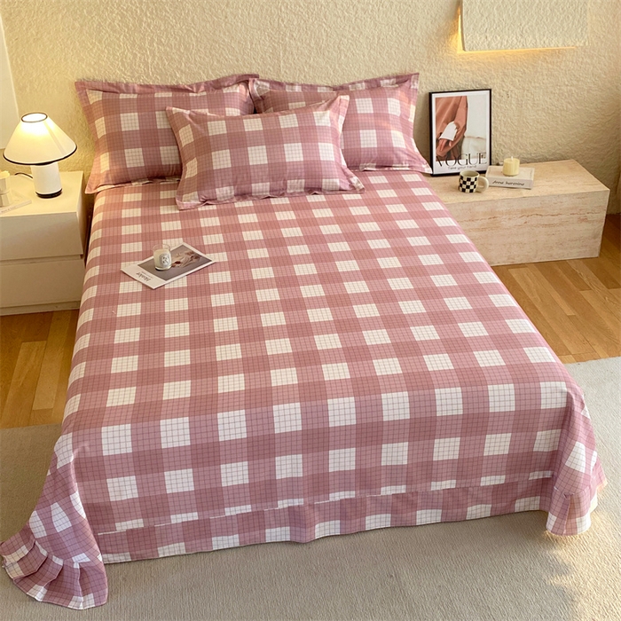 凯磊家纺 2025新款AB版加厚磨毛系列单床单 粉格子