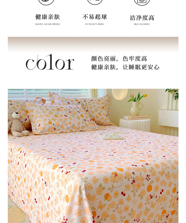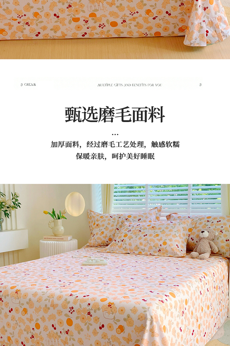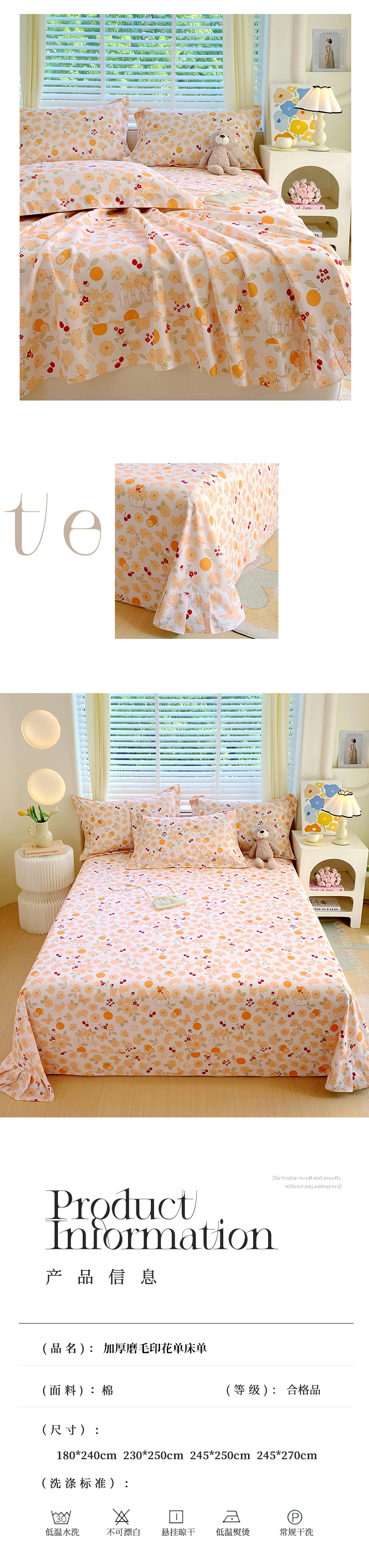 凯磊家纺 2025新款AB版加厚磨毛系列单床单 橘朵