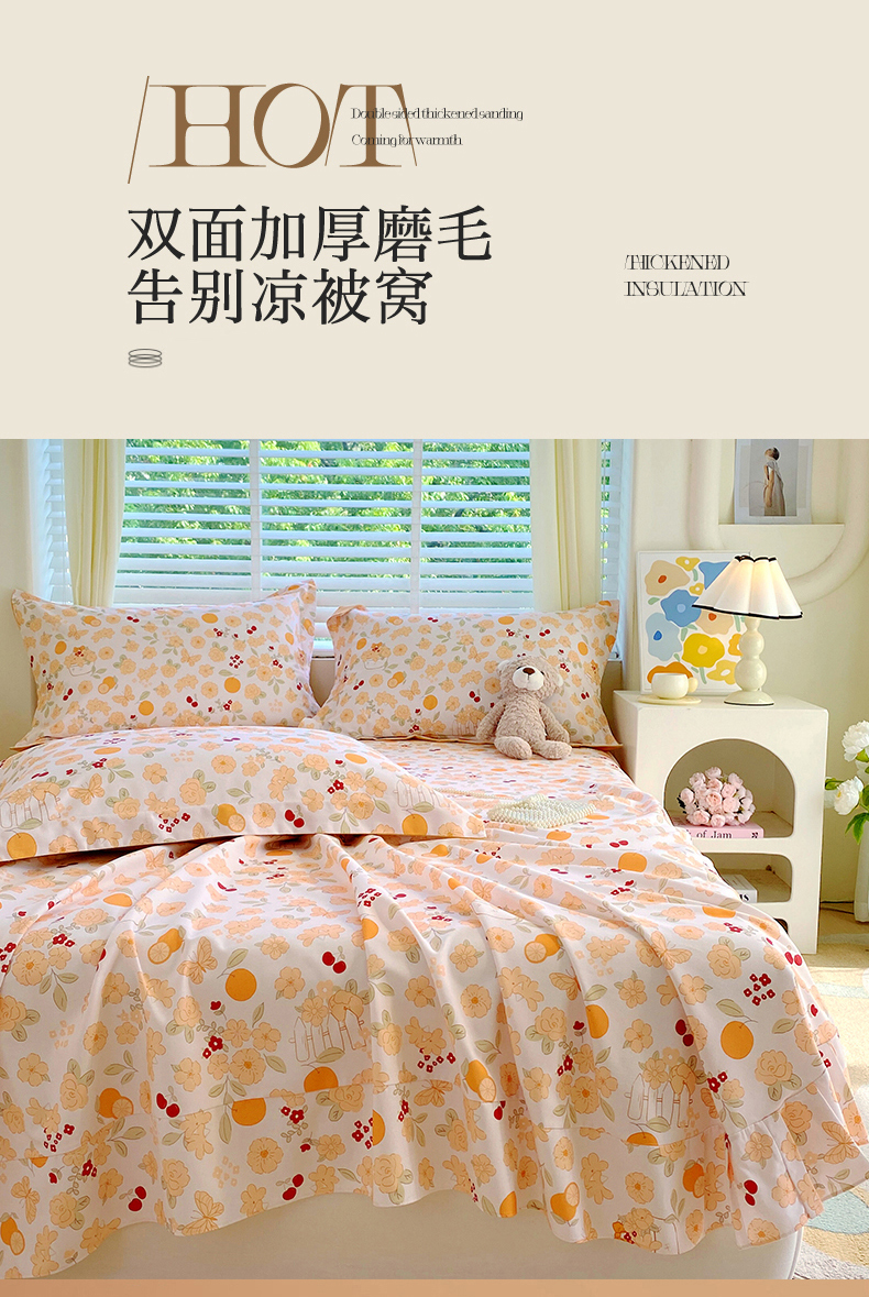 凯磊家纺 - 凯磊家纺 2025新款AB版加厚磨毛系列单床单 橘朵