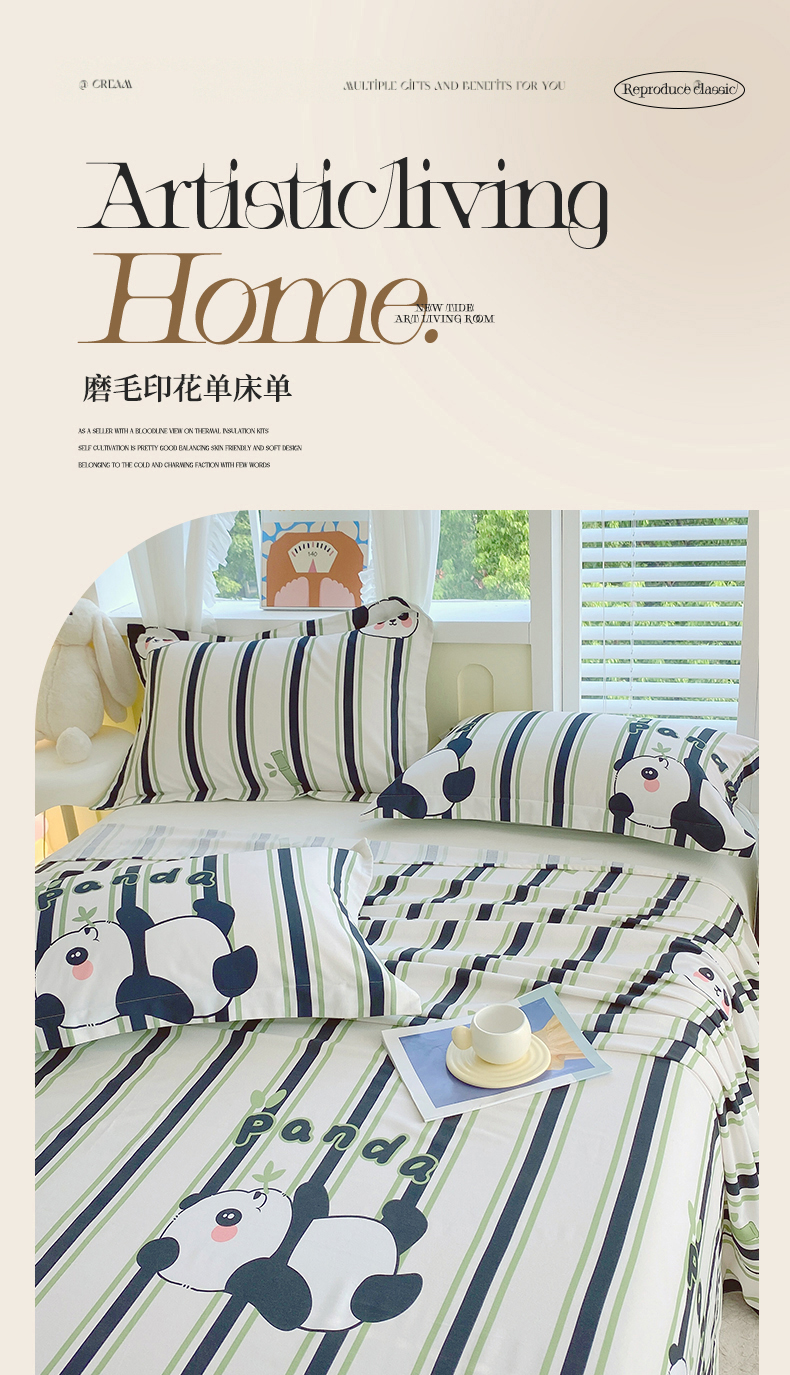 当前位置:凯磊家纺 > 凯磊家纺 2025新款AB版加厚磨毛系列单床单 快乐熊猫