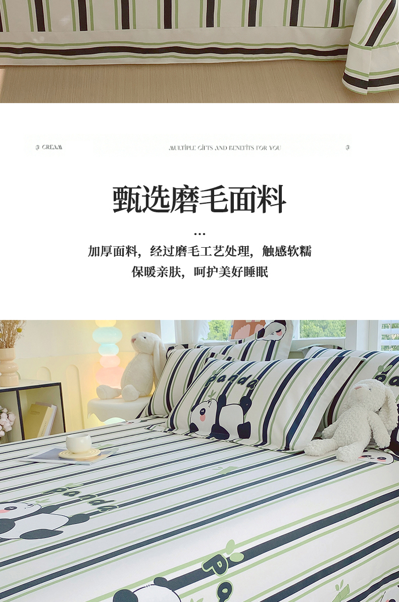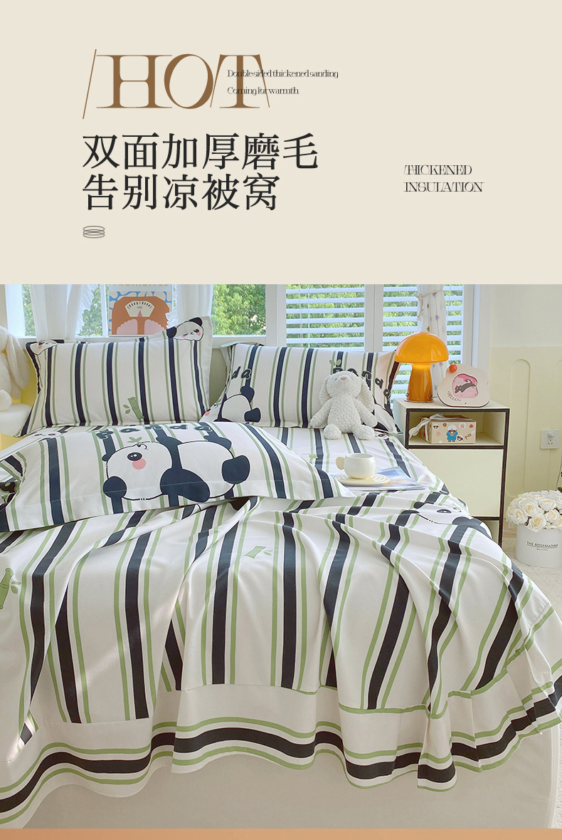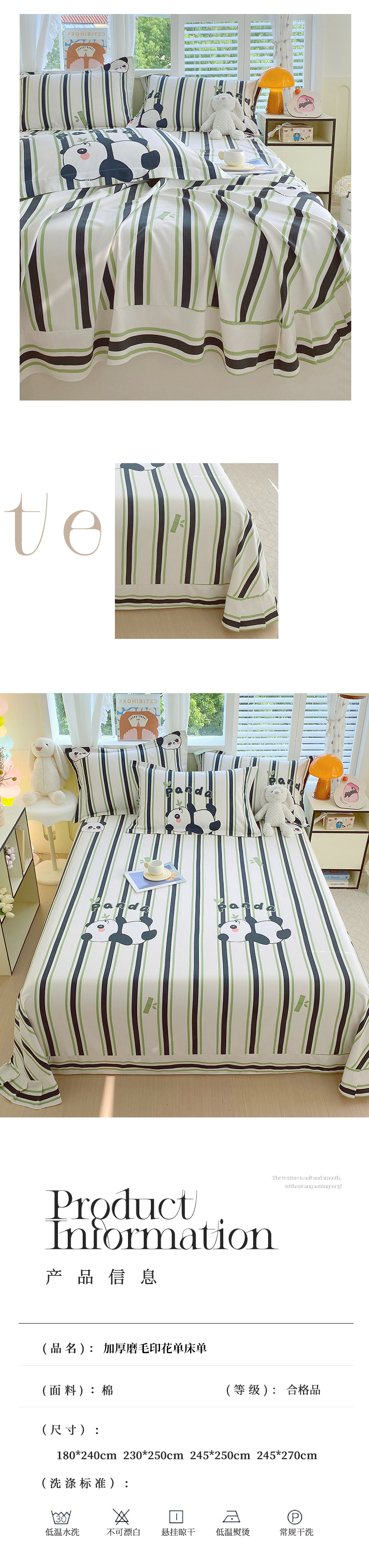 凯磊家纺 2025新款AB版加厚磨毛系列单床单 快乐熊猫