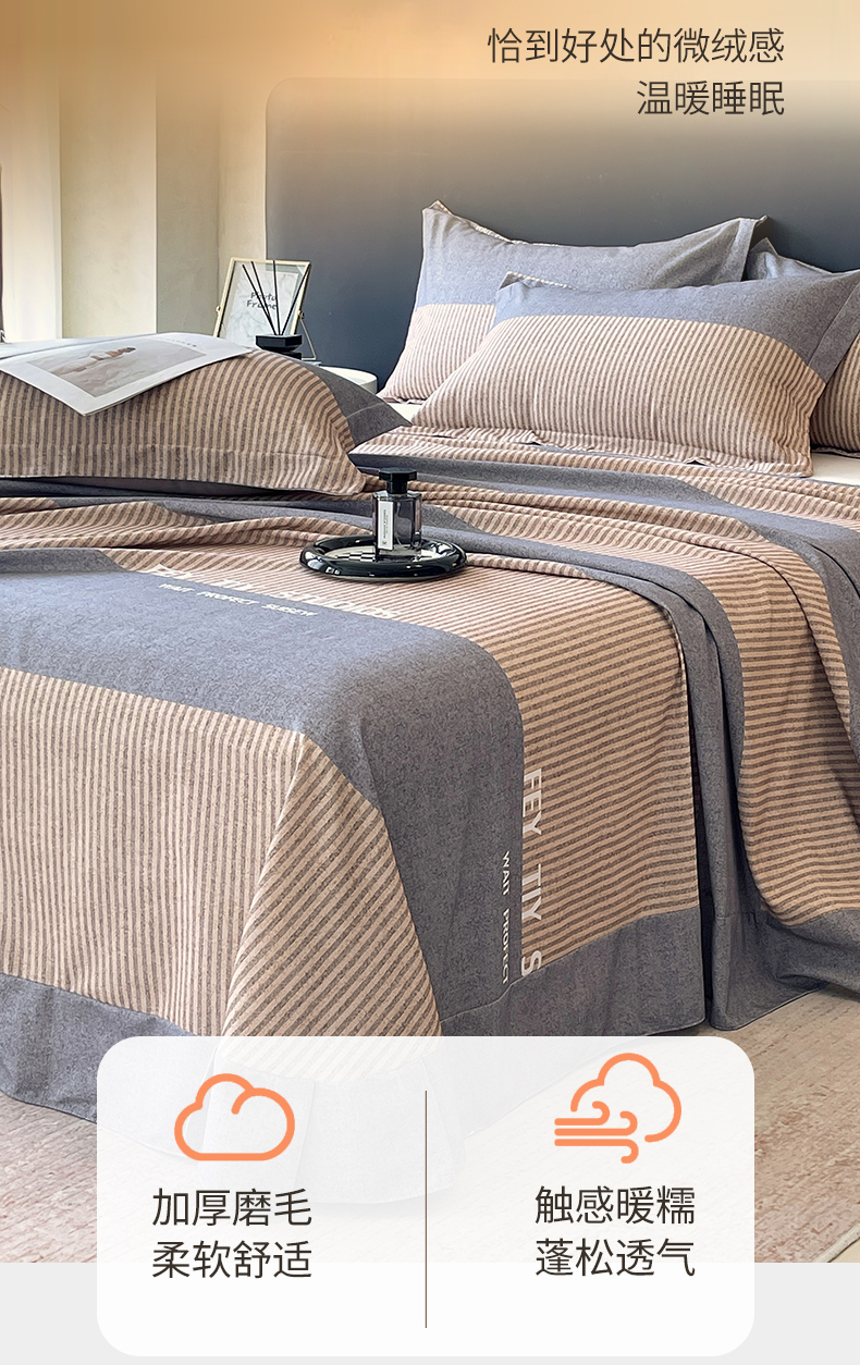 凯磊家纺 2025新款AB版加厚磨毛系列单床单 清风条纹