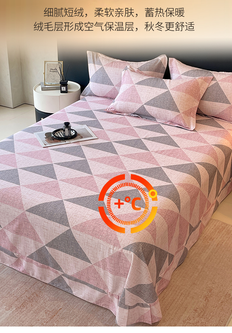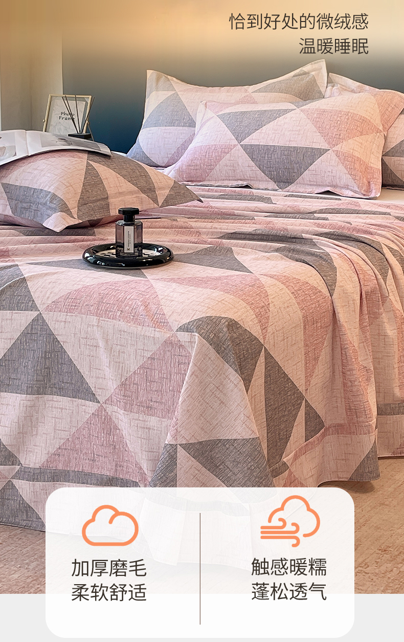 凯磊家纺 - 凯磊家纺 2025新款AB版加厚磨毛系列单床单 晴空粉