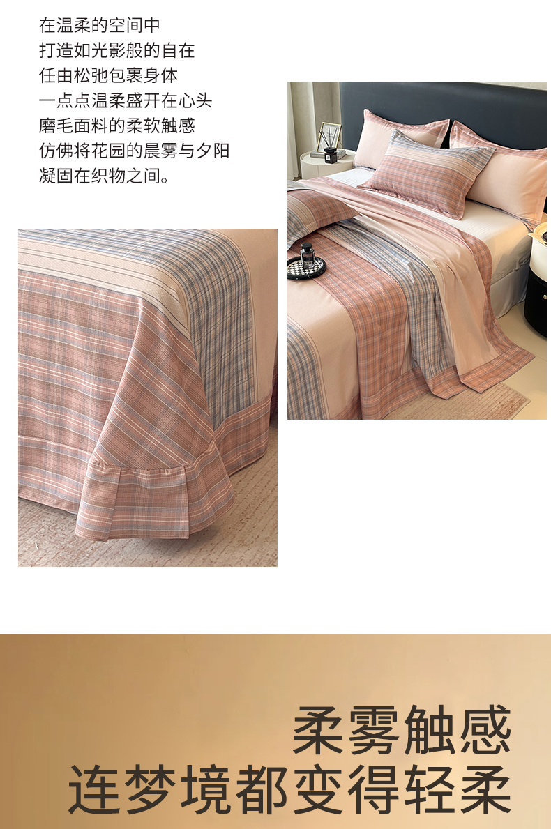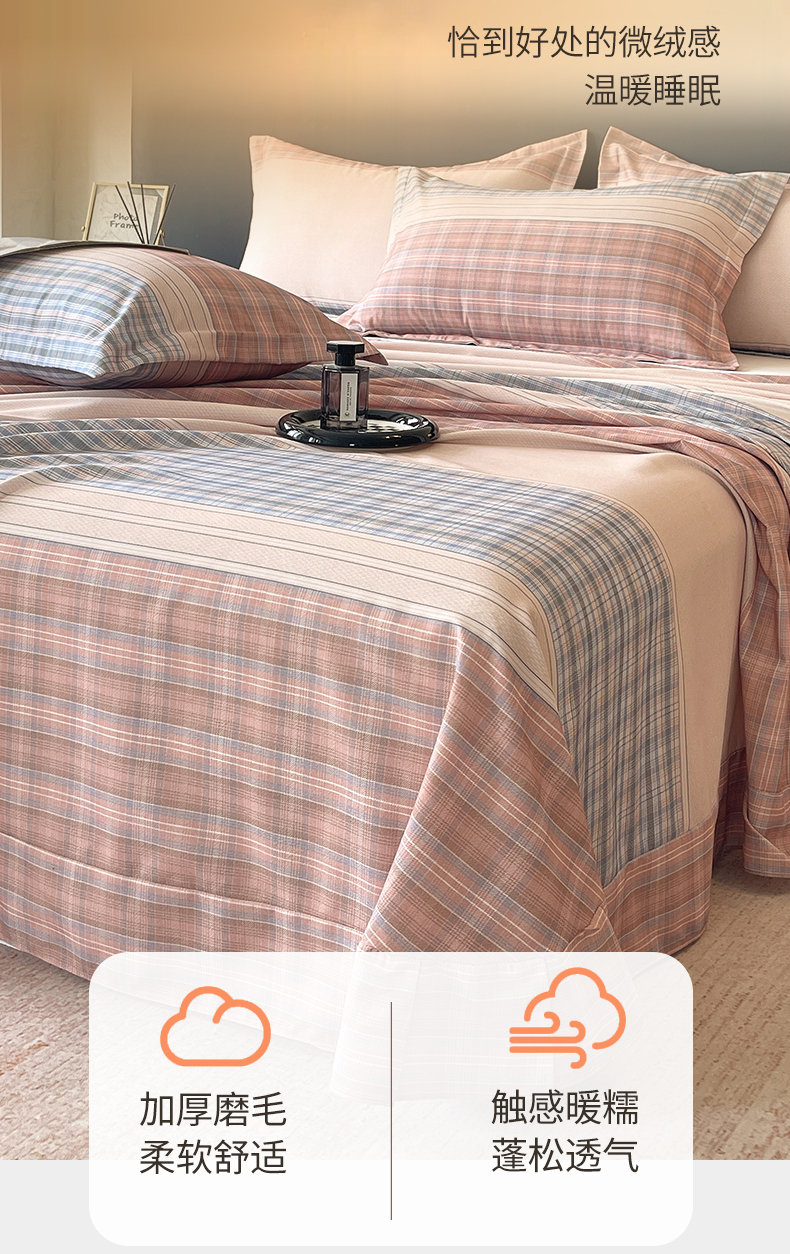 当前位置:凯磊家纺 > 凯磊家纺 2025新款AB版加厚磨毛系列单床单 柔粉线条