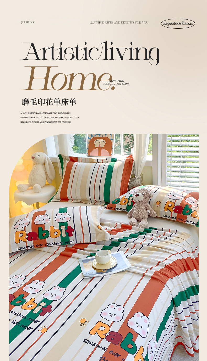 当前位置:凯磊家纺 > 凯磊家纺 2025新款AB版加厚磨毛系列单床单 小兔派对