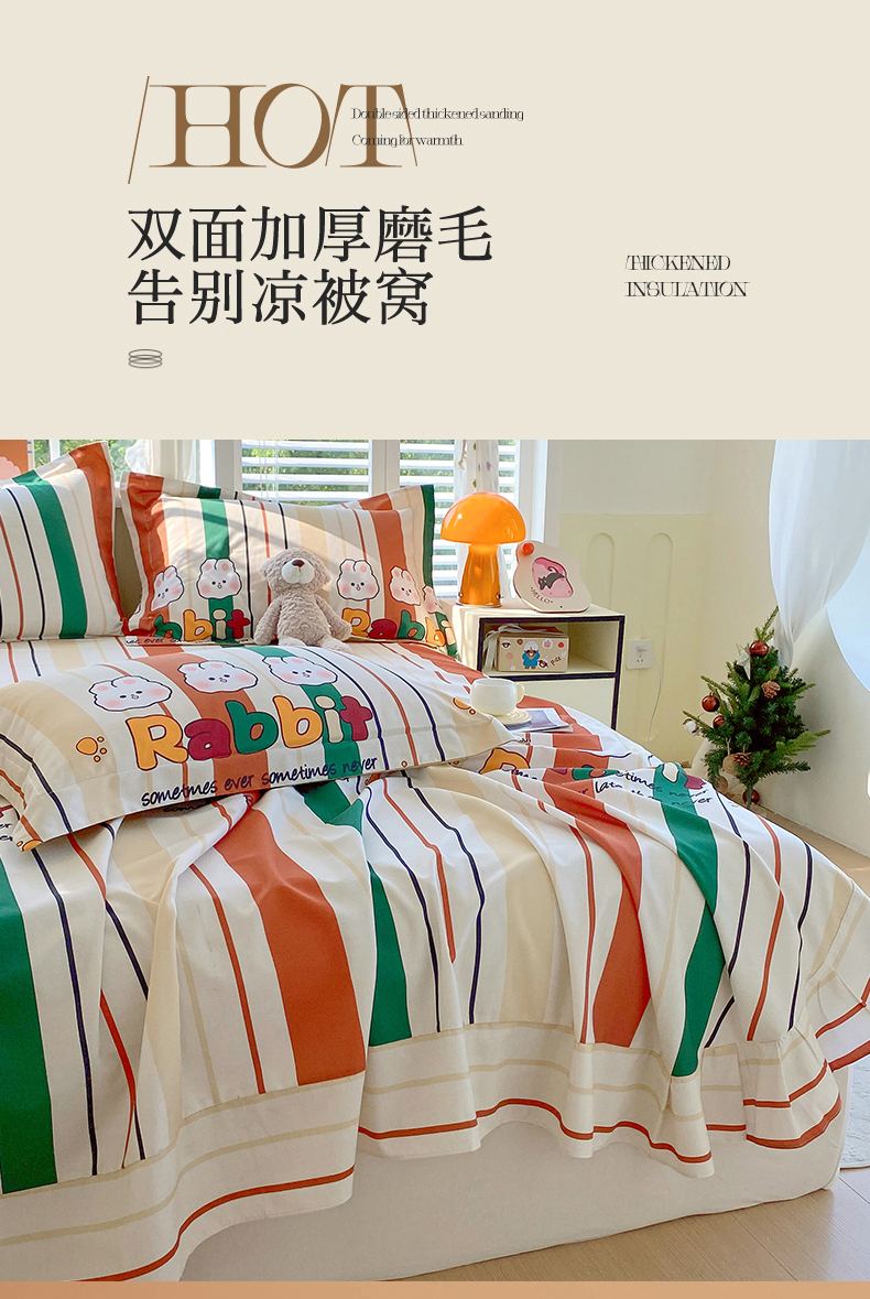 凯磊家纺 - 凯磊家纺 2025新款AB版加厚磨毛系列单床单 小兔派对