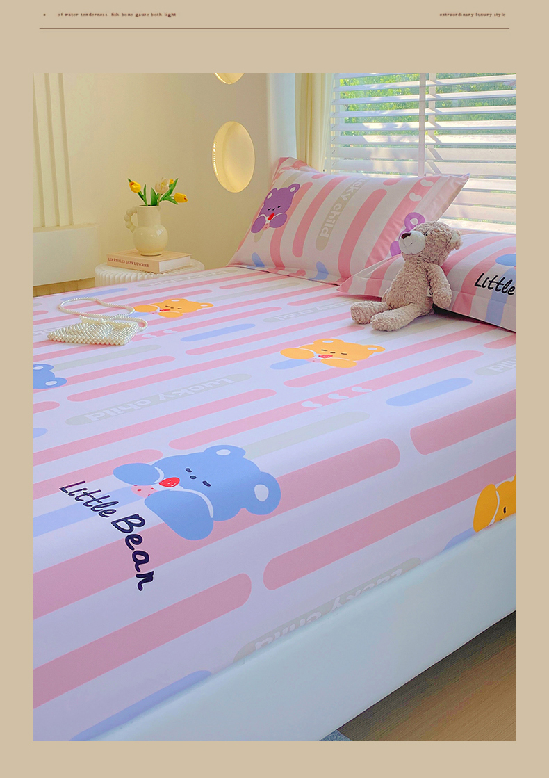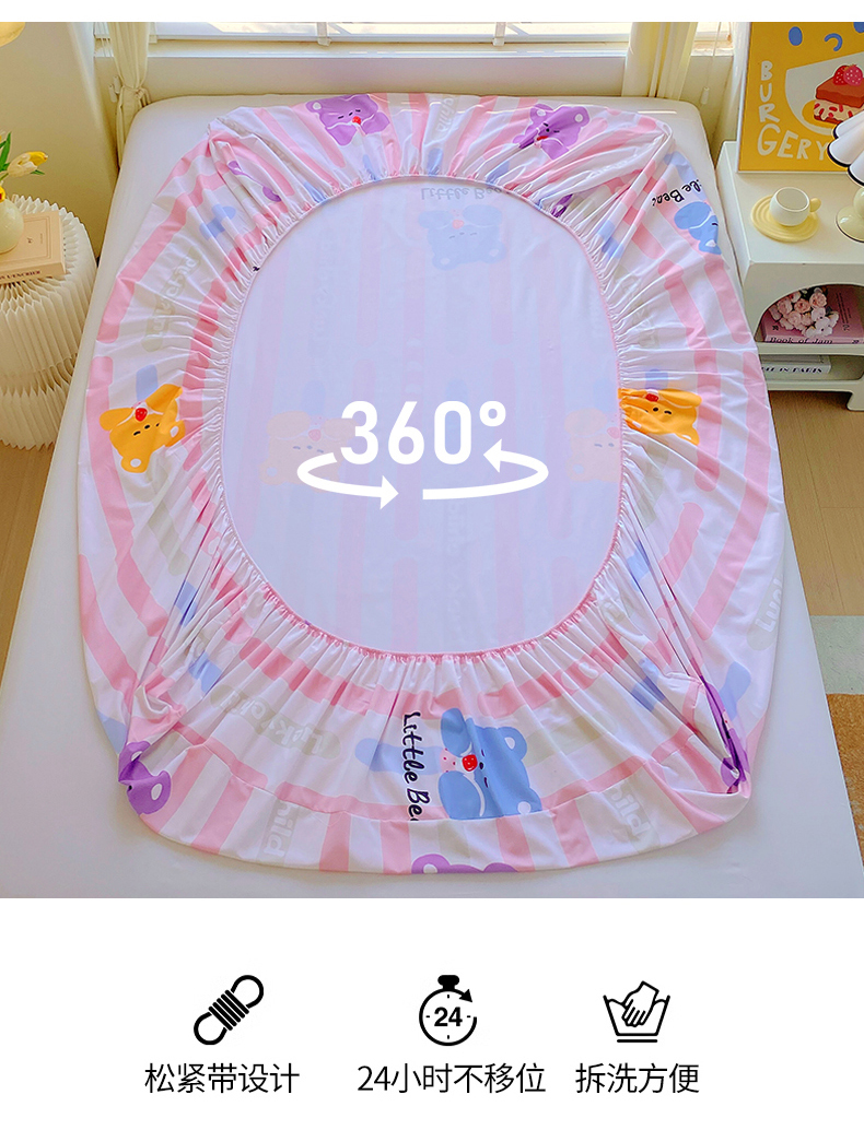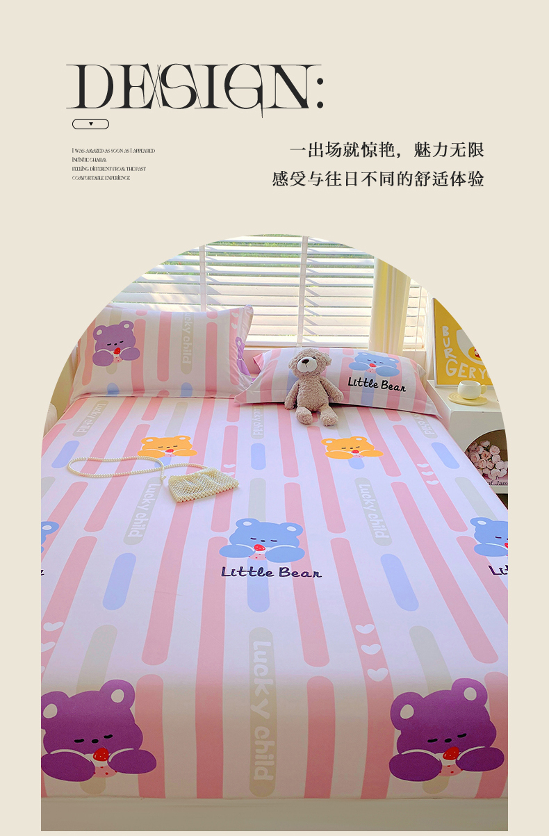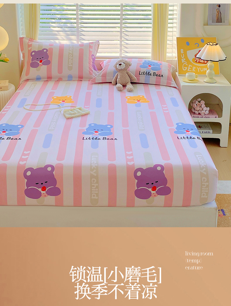 凯磊家纺 2025新款AB版加厚磨毛系列单床笠 彩虹熊