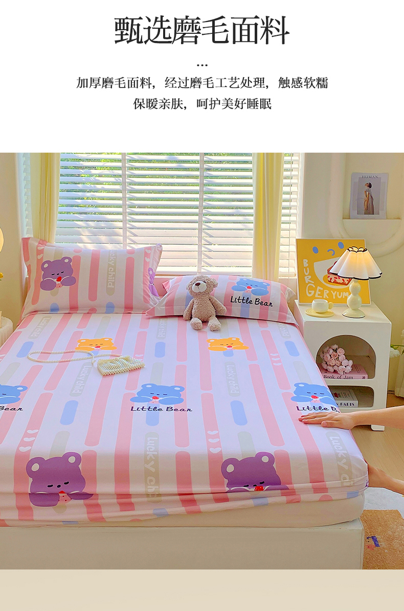 凯磊家纺 - 凯磊家纺 2025新款AB版加厚磨毛系列单床笠 彩虹熊