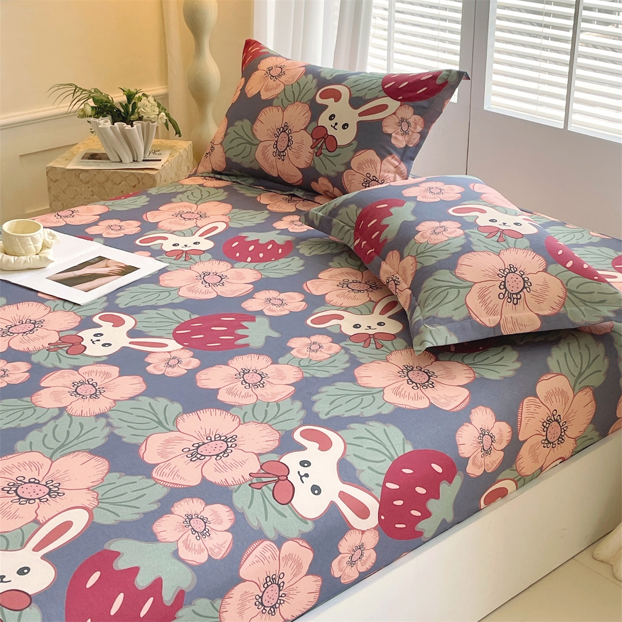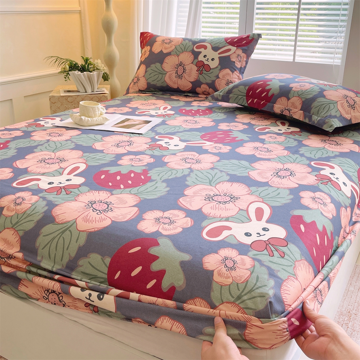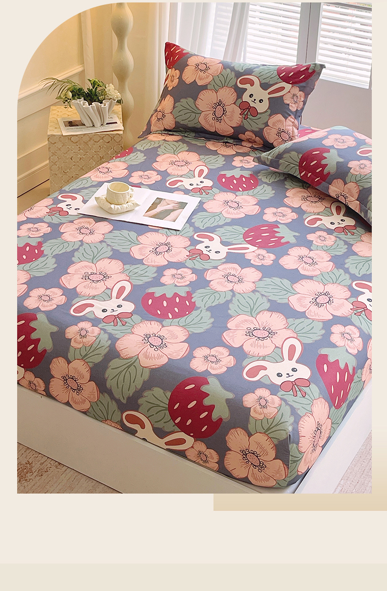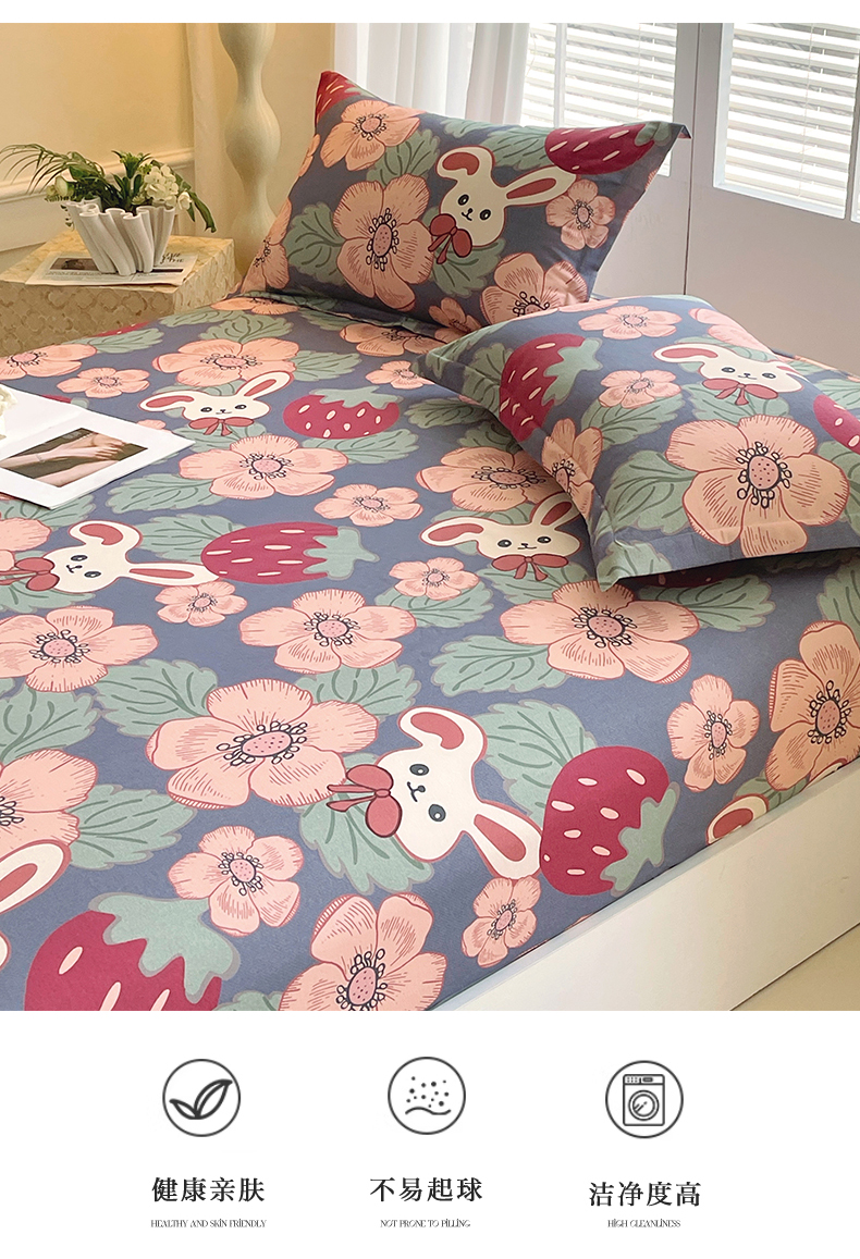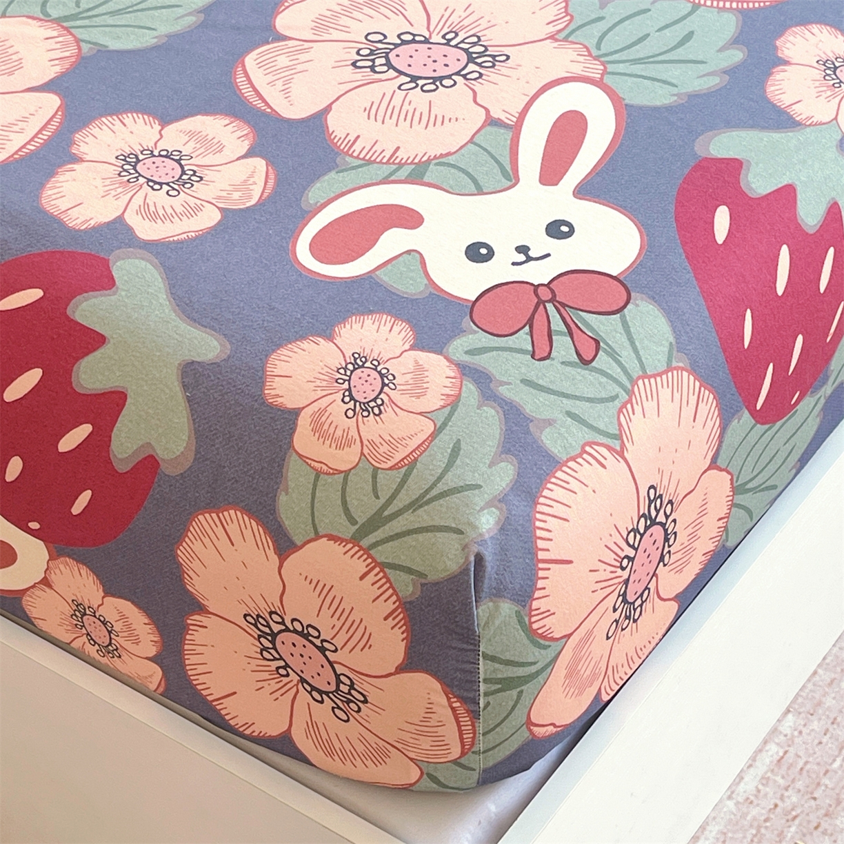 凯磊家纺 2025新款AB版加厚磨毛系列单床笠 草莓小兔蓝