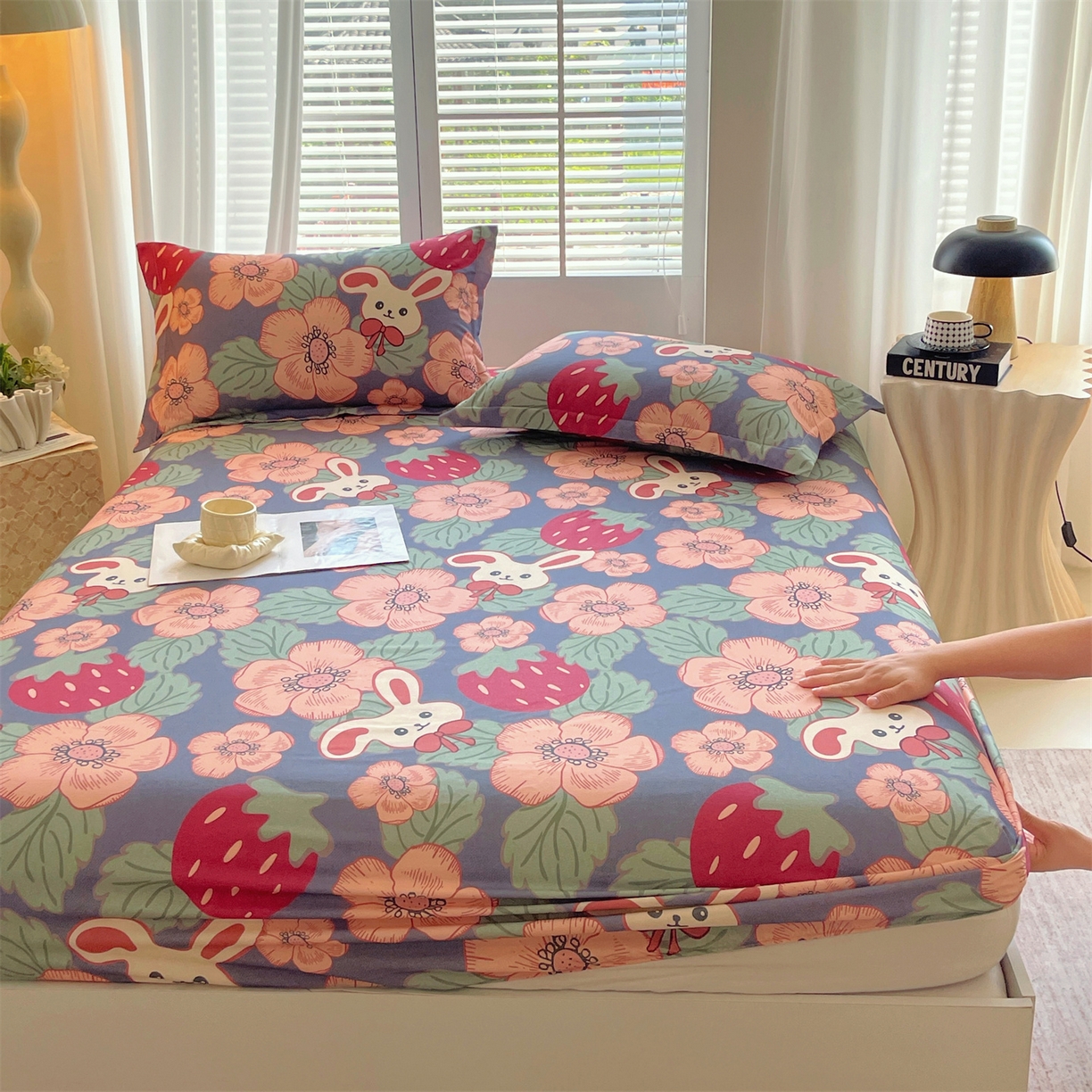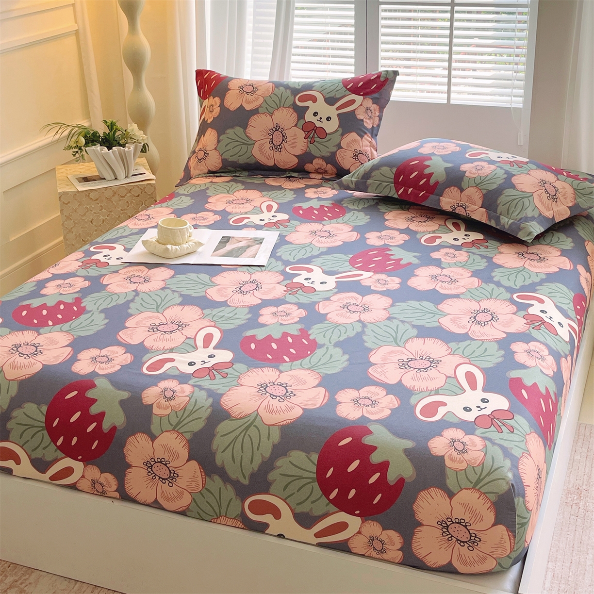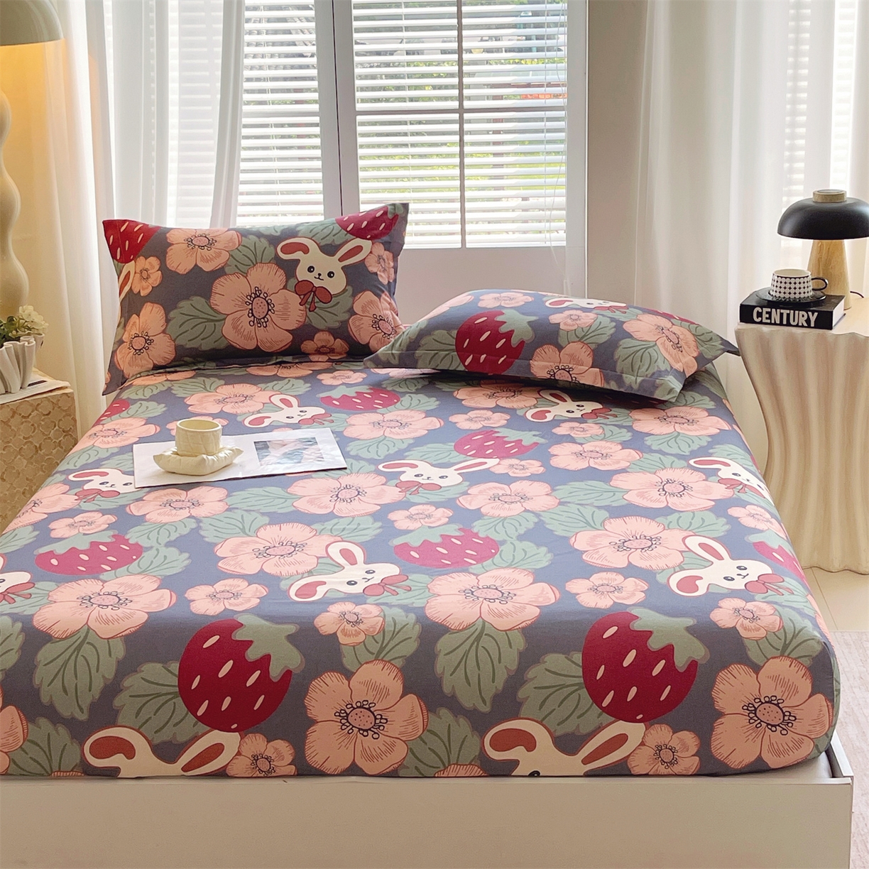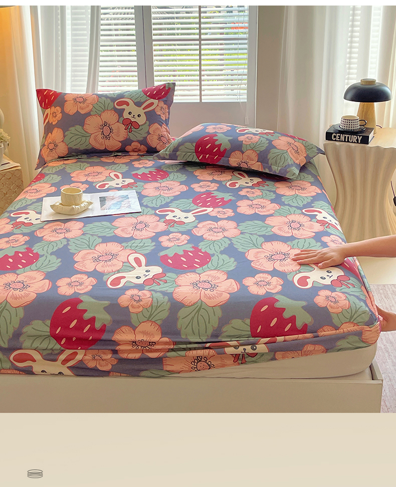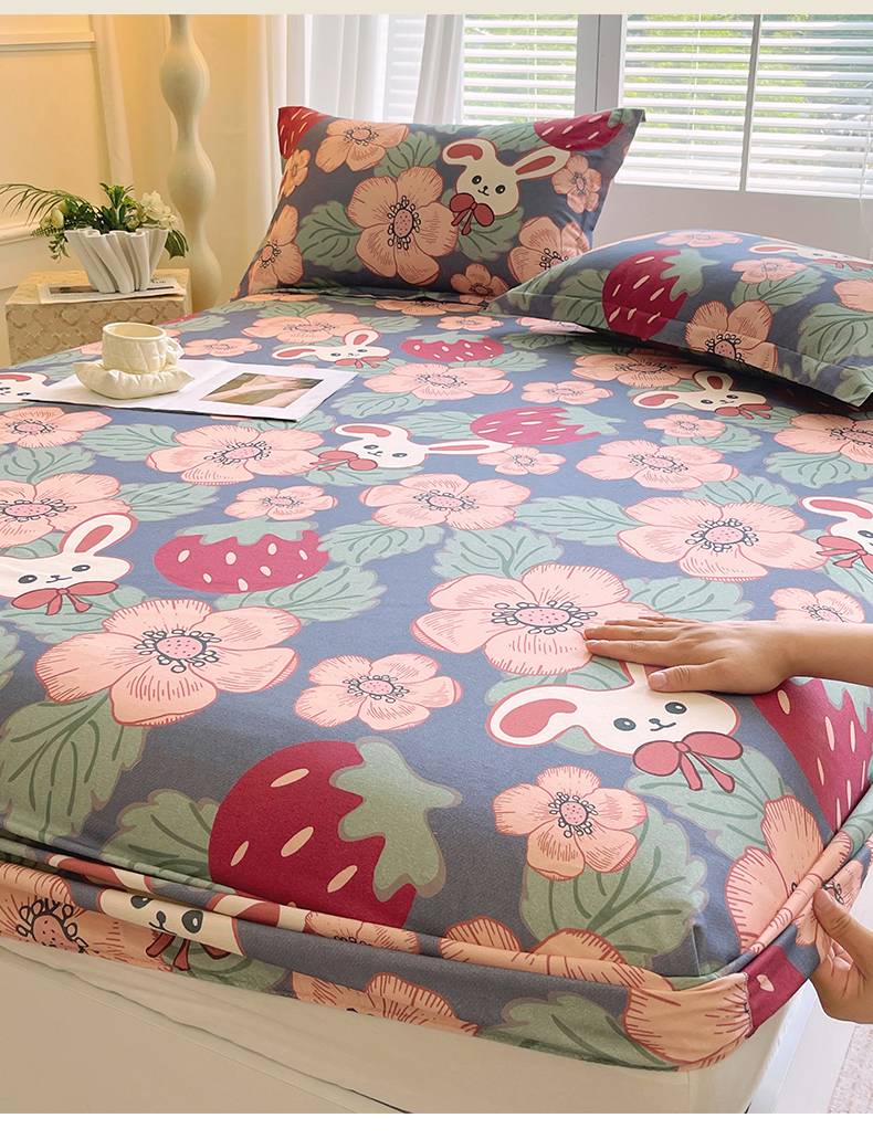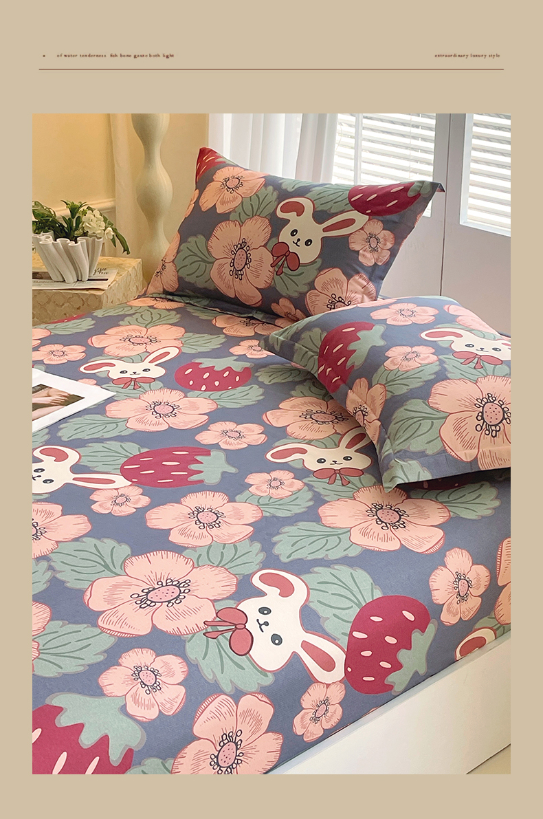凯磊家纺 2025新款AB版加厚磨毛系列单床笠 草莓小兔蓝
