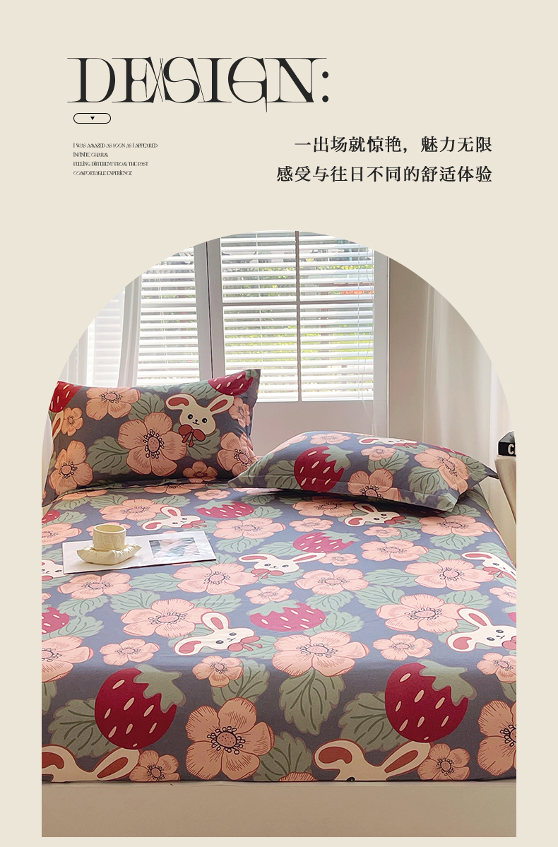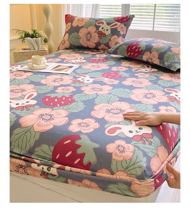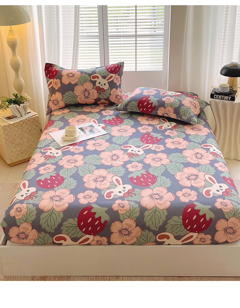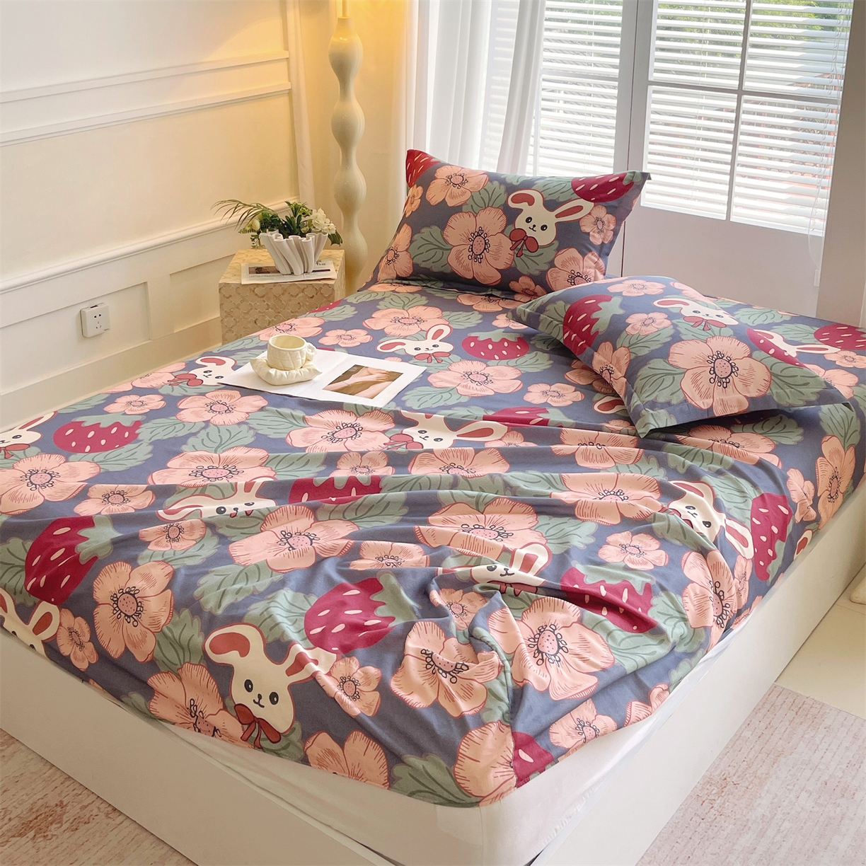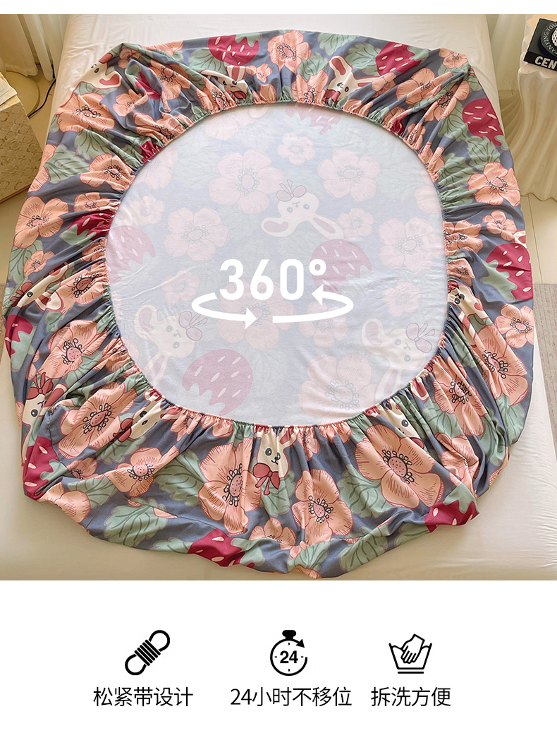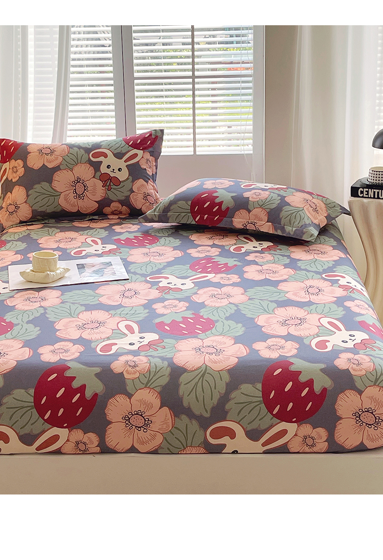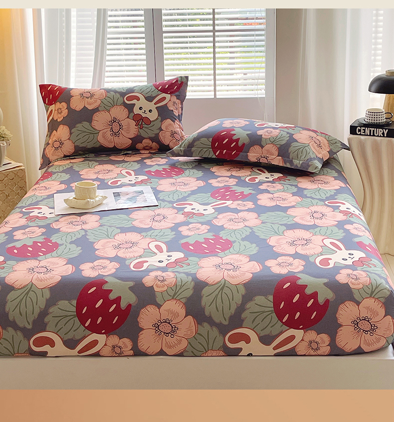 凯磊家纺 2025新款AB版加厚磨毛系列单床笠 草莓小兔蓝