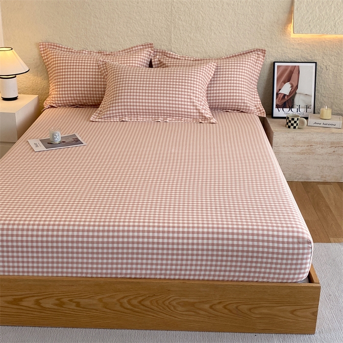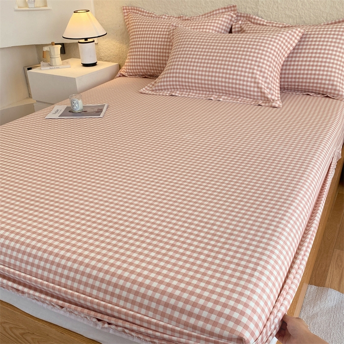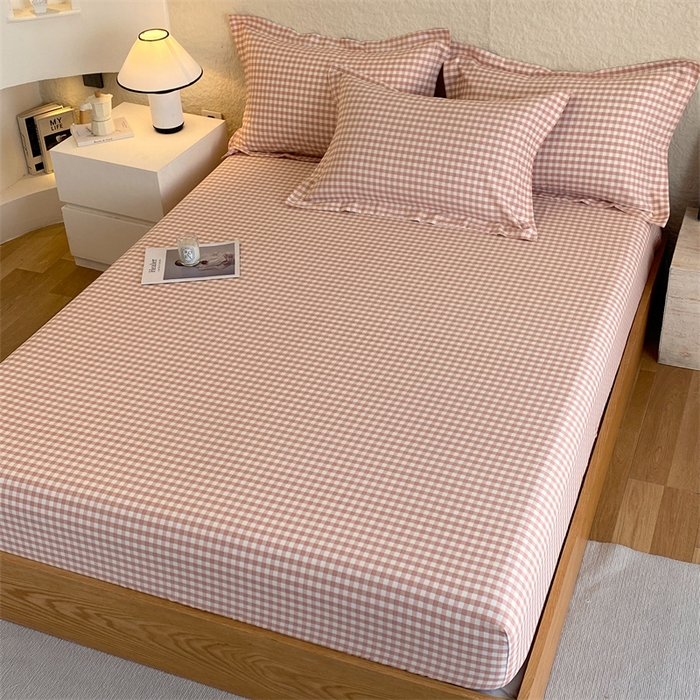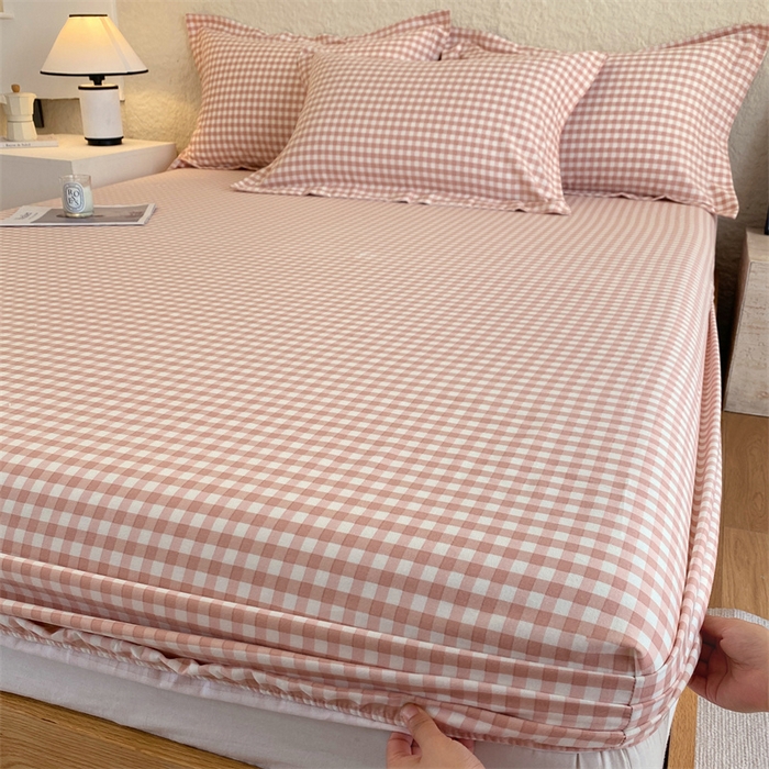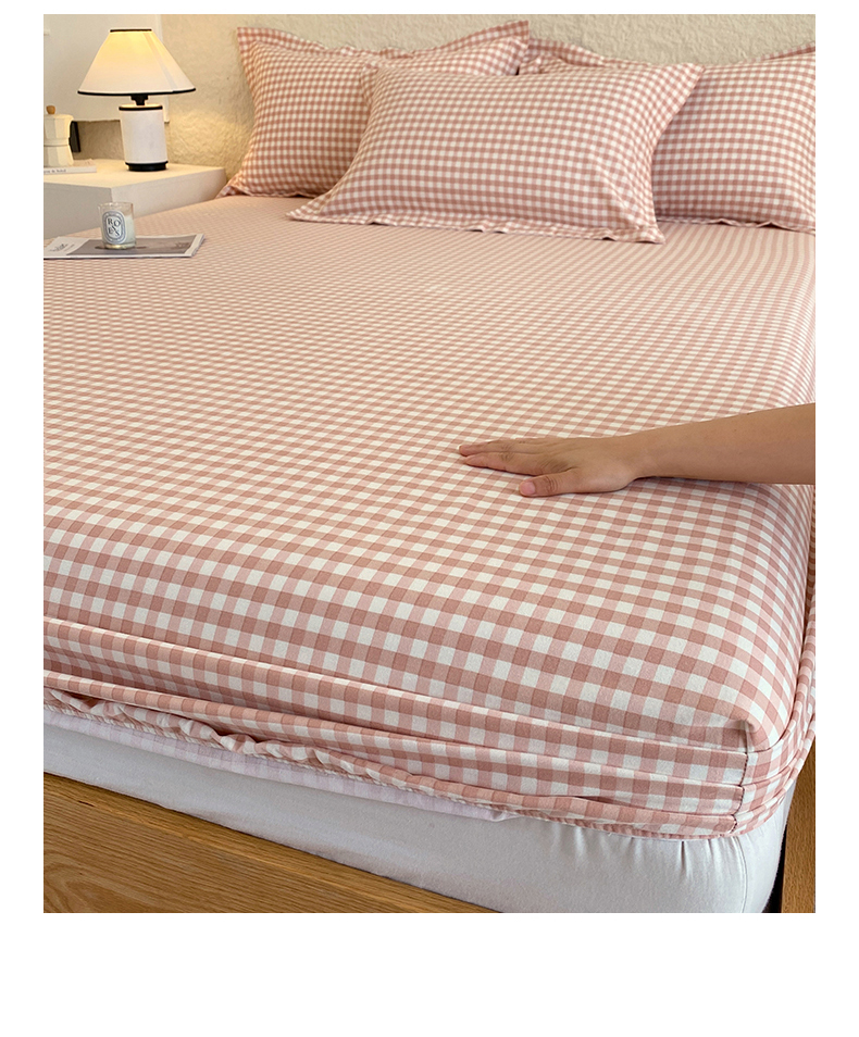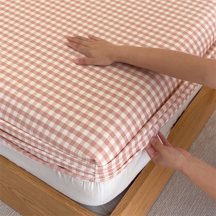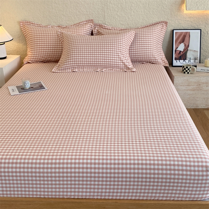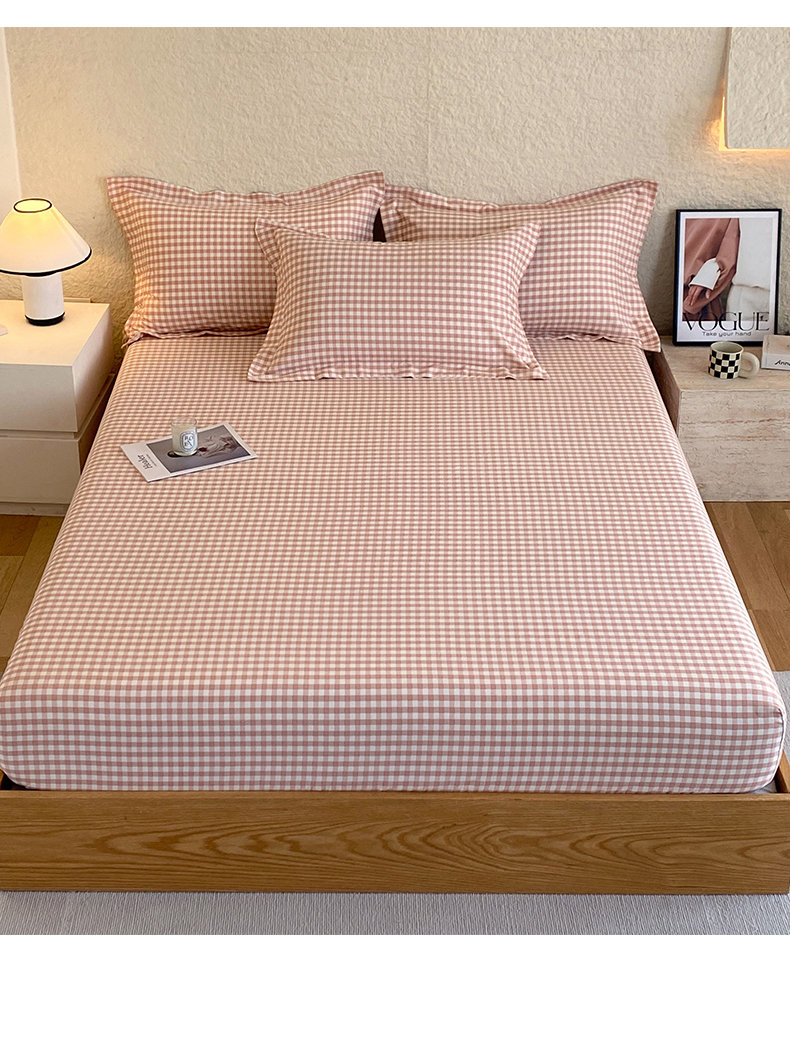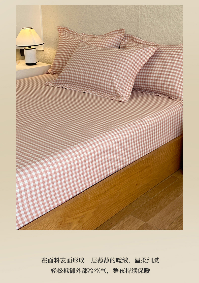 凯磊家纺 - 凯磊家纺 2025新款AB版加厚磨毛系列单床笠 粉玉小格