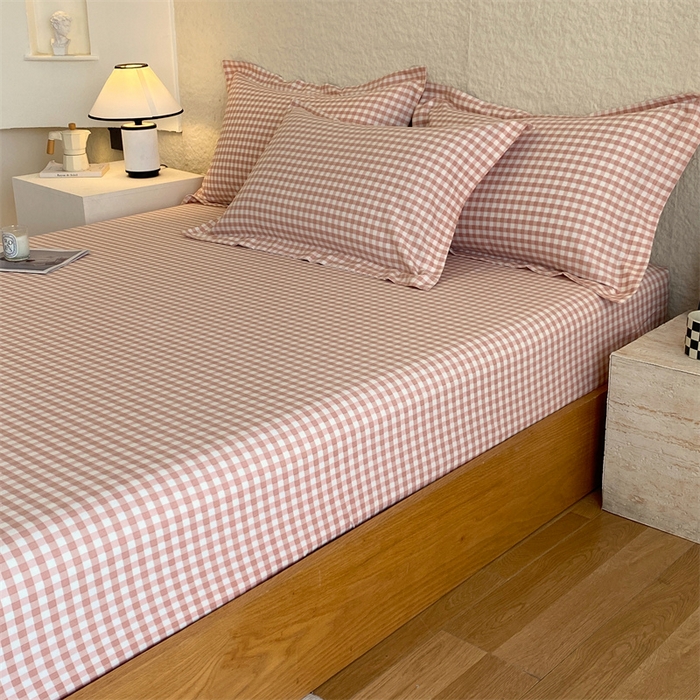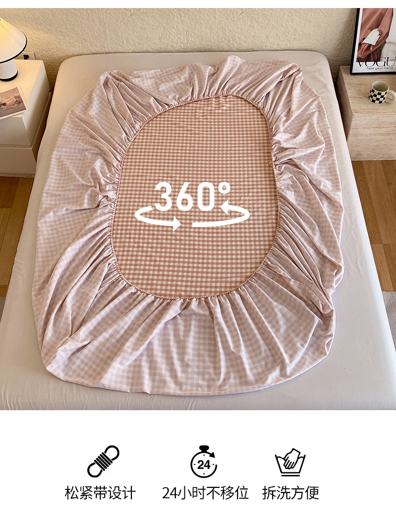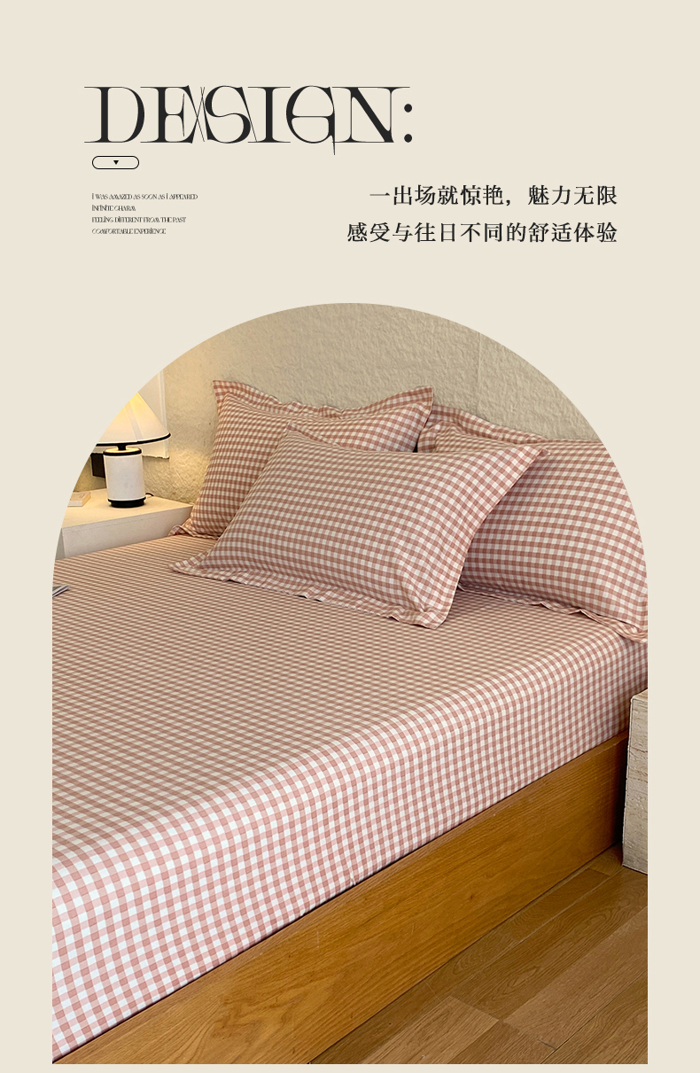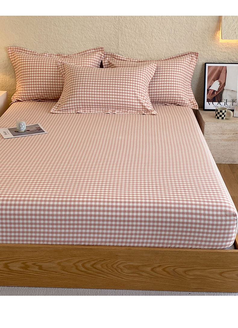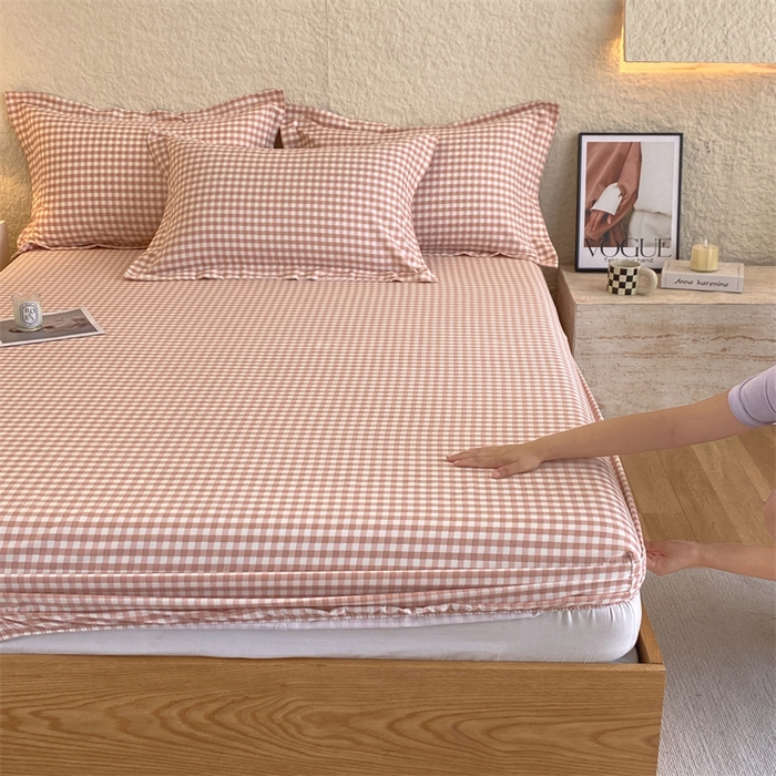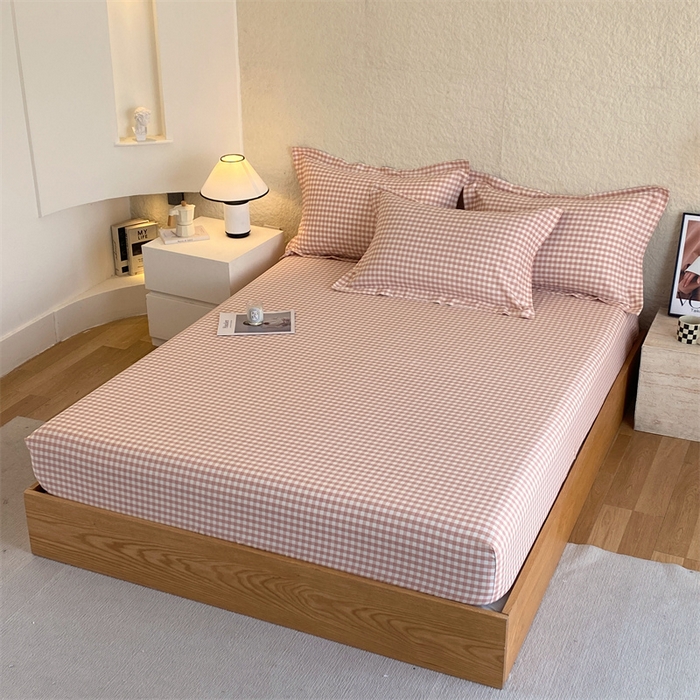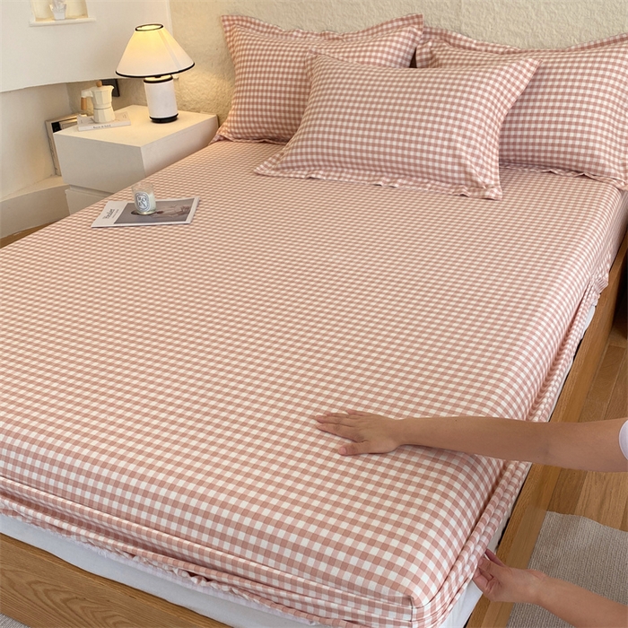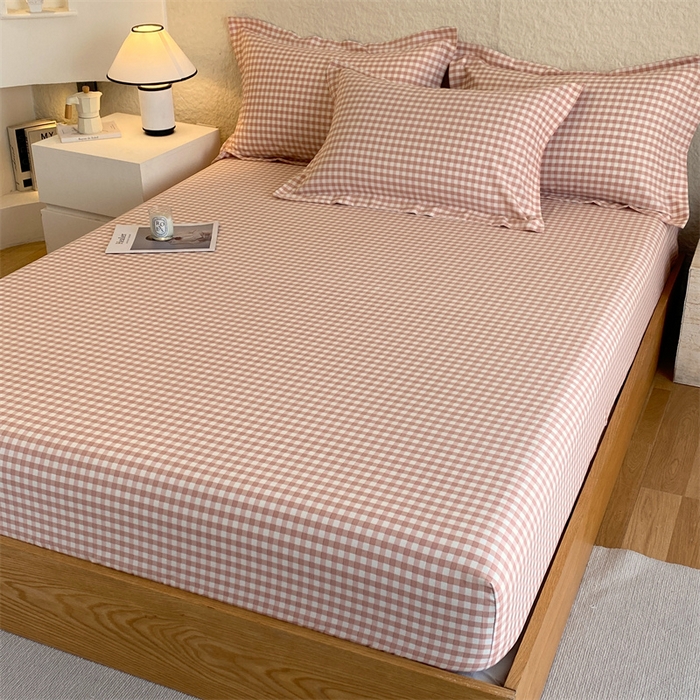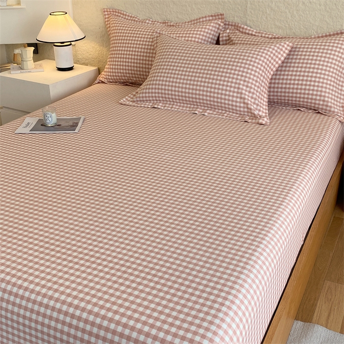 凯磊家纺 - 凯磊家纺 2025新款AB版加厚磨毛系列单床笠 粉玉小格