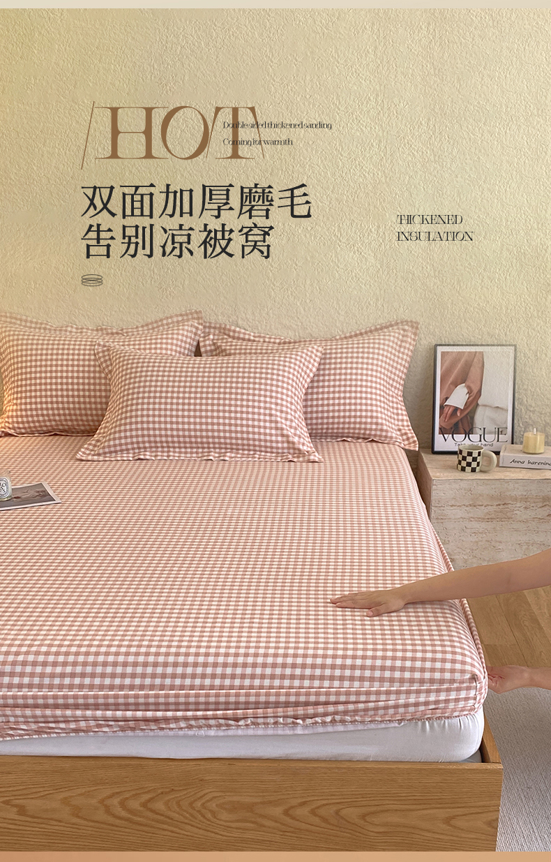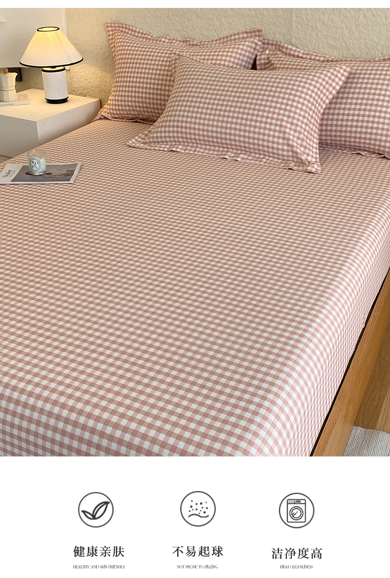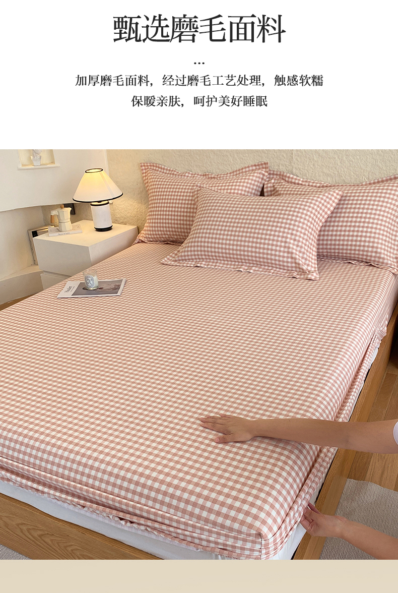 凯磊家纺 2025新款AB版加厚磨毛系列单床笠 粉玉小格
