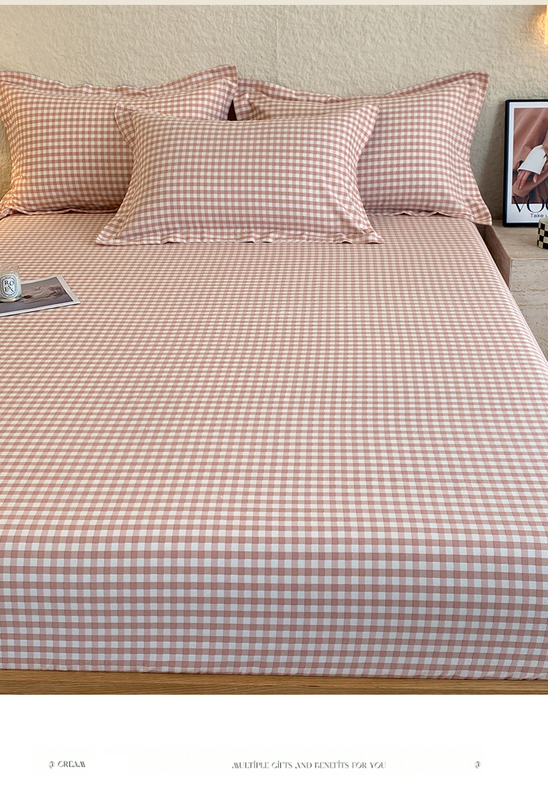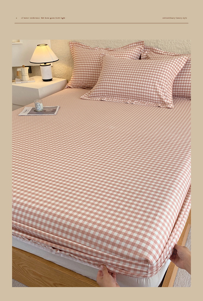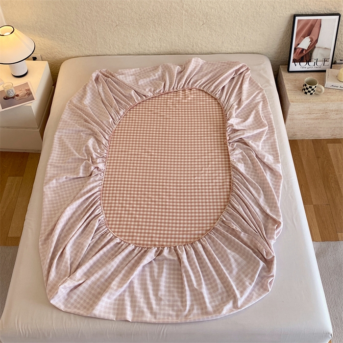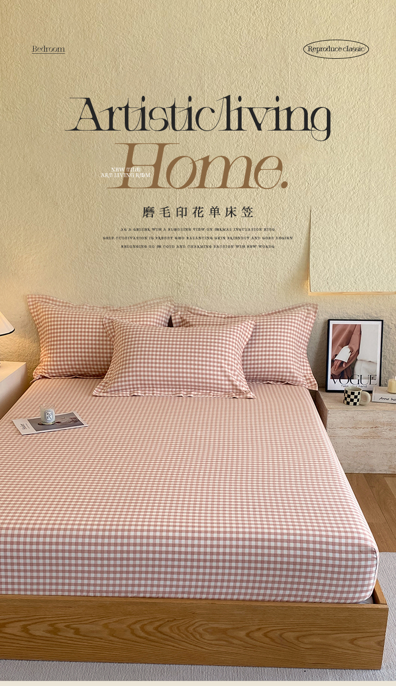 凯磊家纺 2025新款AB版加厚磨毛系列单床笠 粉玉小格