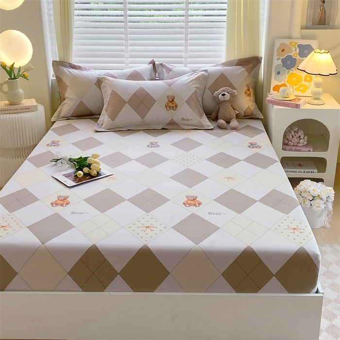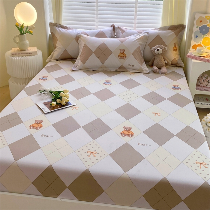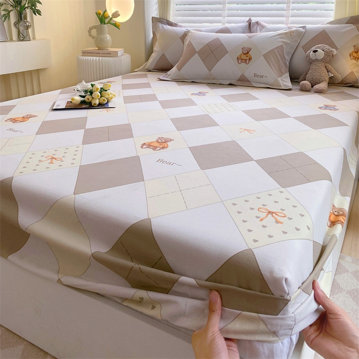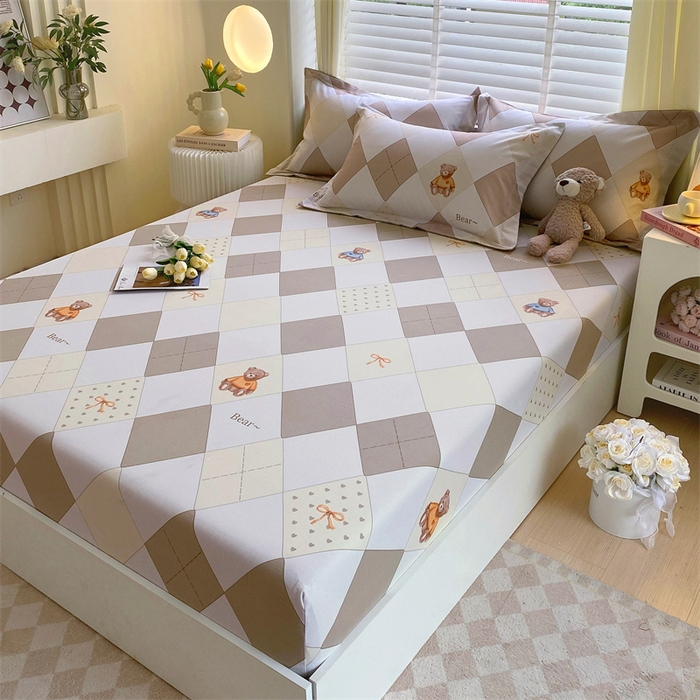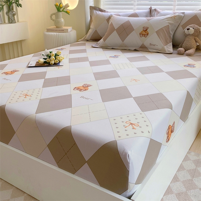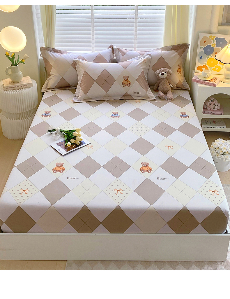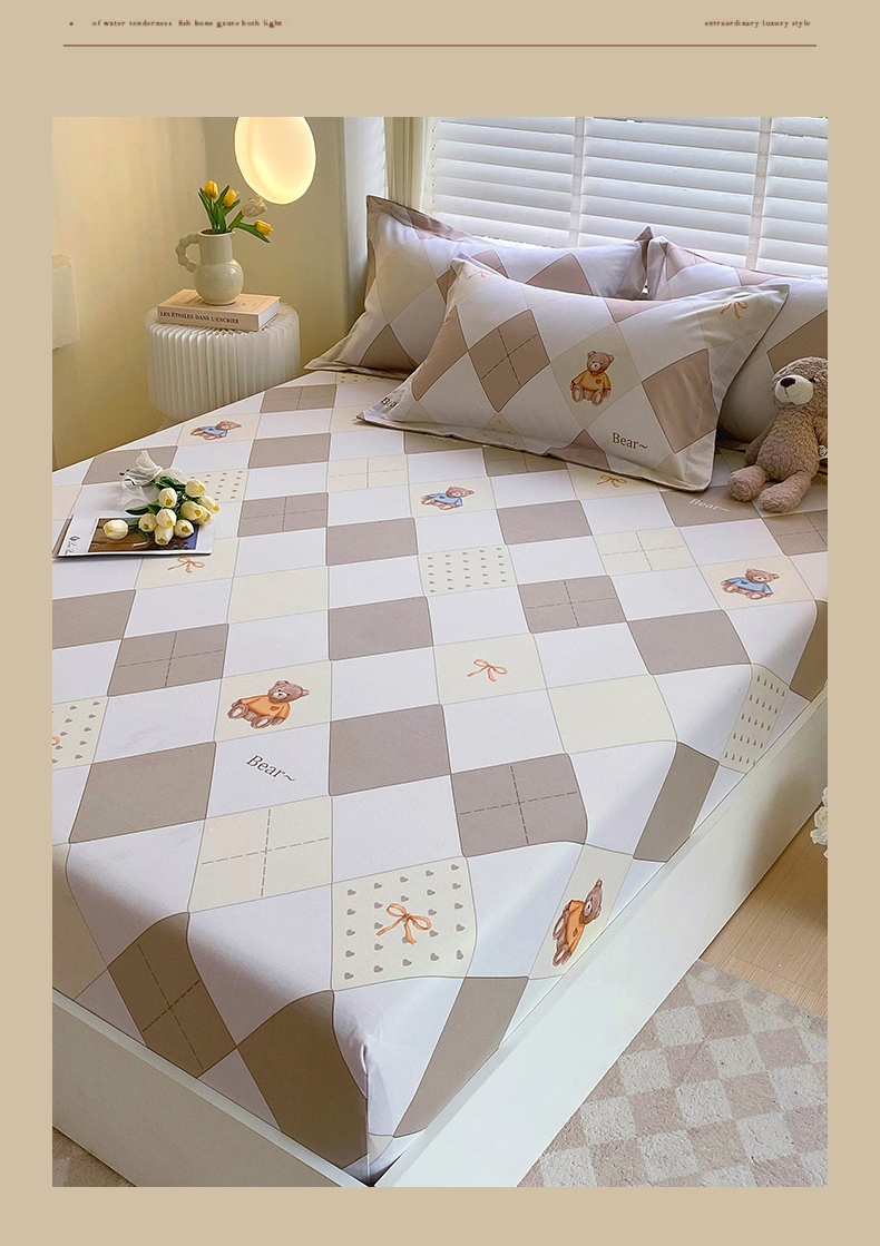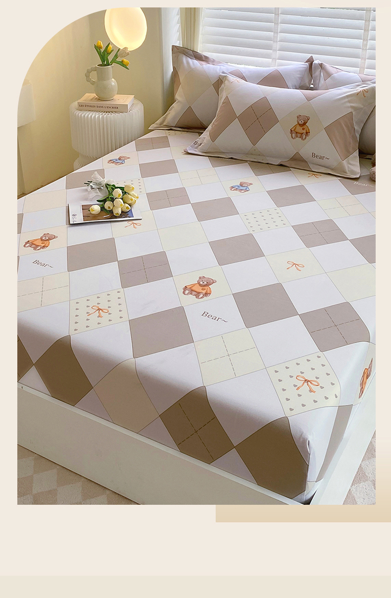 凯磊家纺 2025新款AB版加厚磨毛系列单床笠 格子小熊-咖