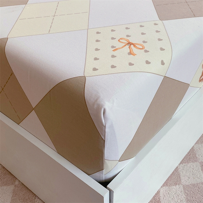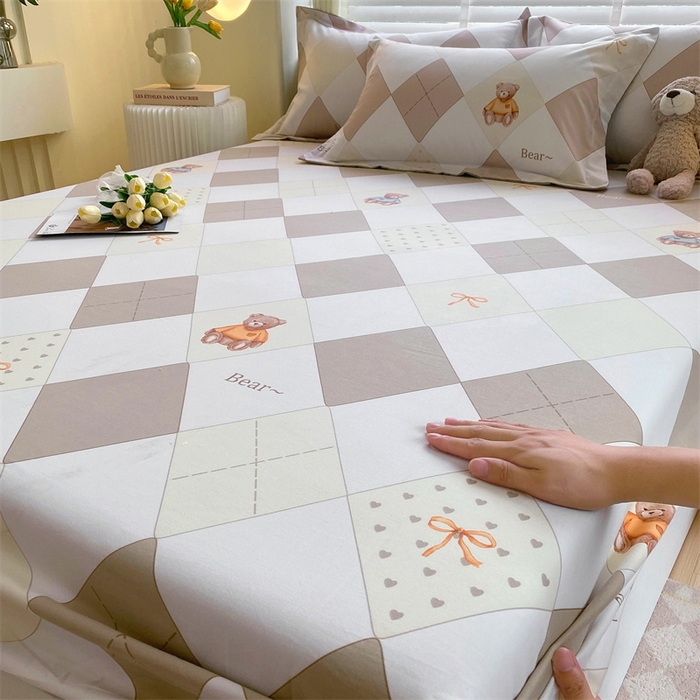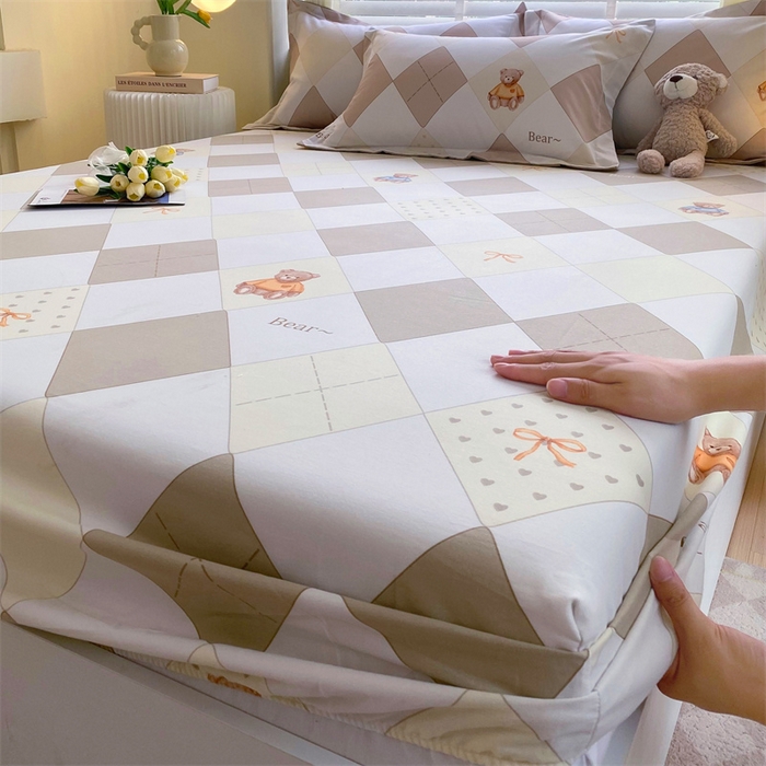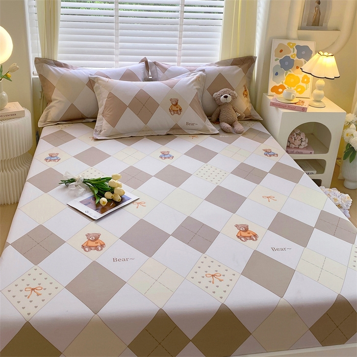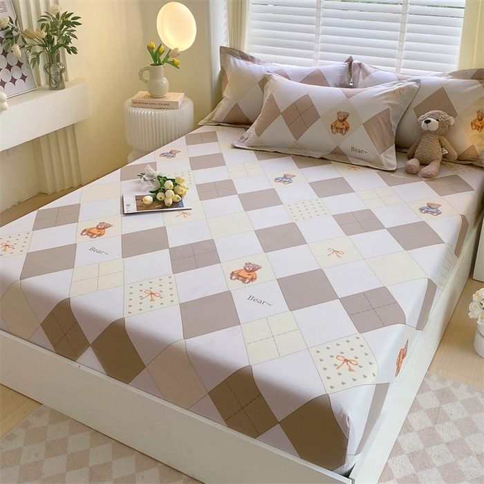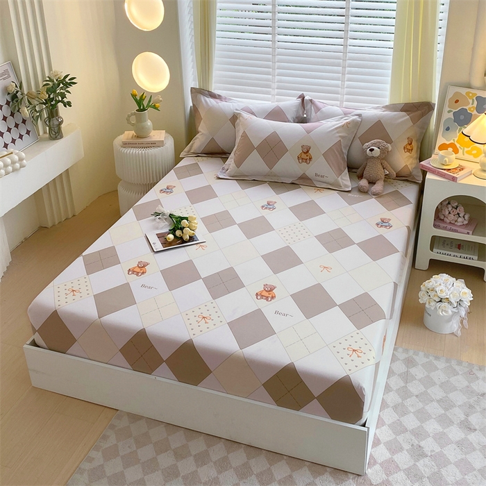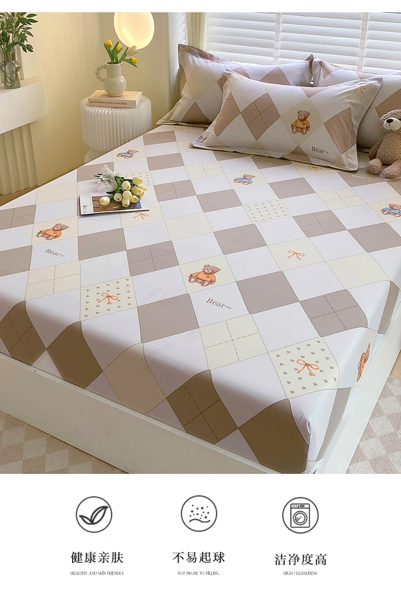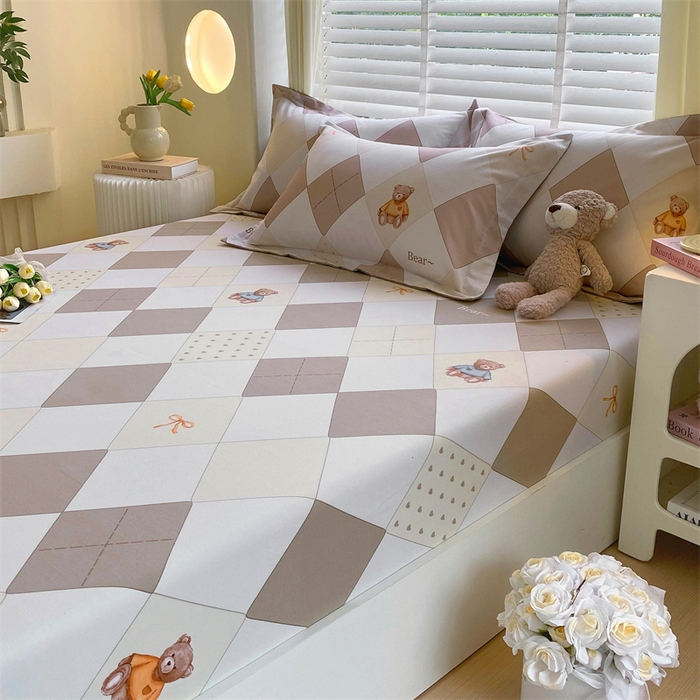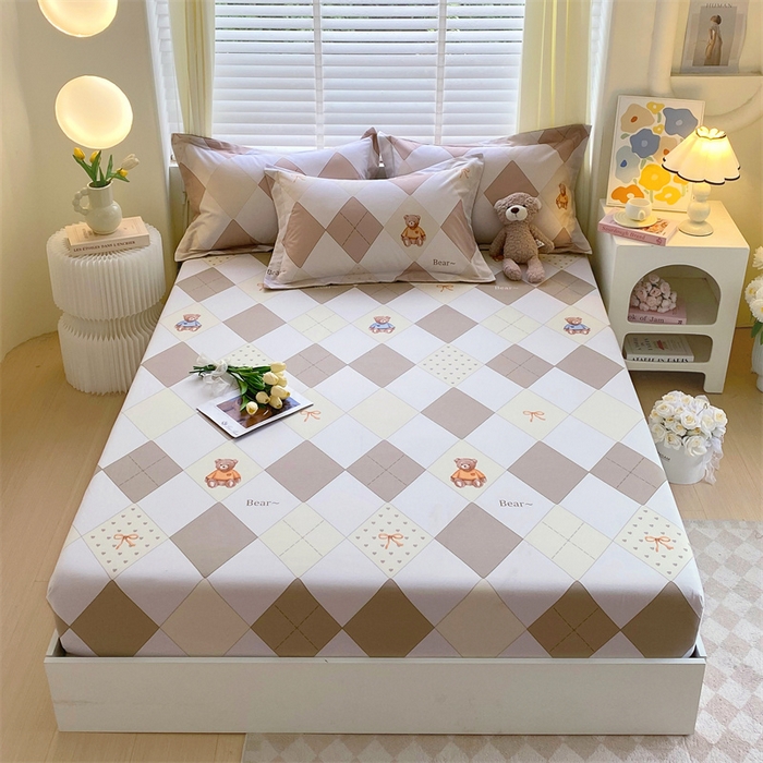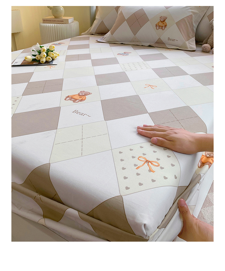 凯磊家纺 2025新款AB版加厚磨毛系列单床笠 格子小熊-咖