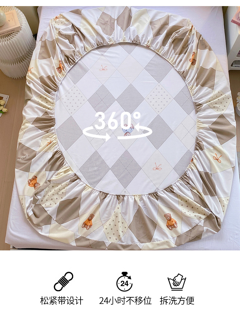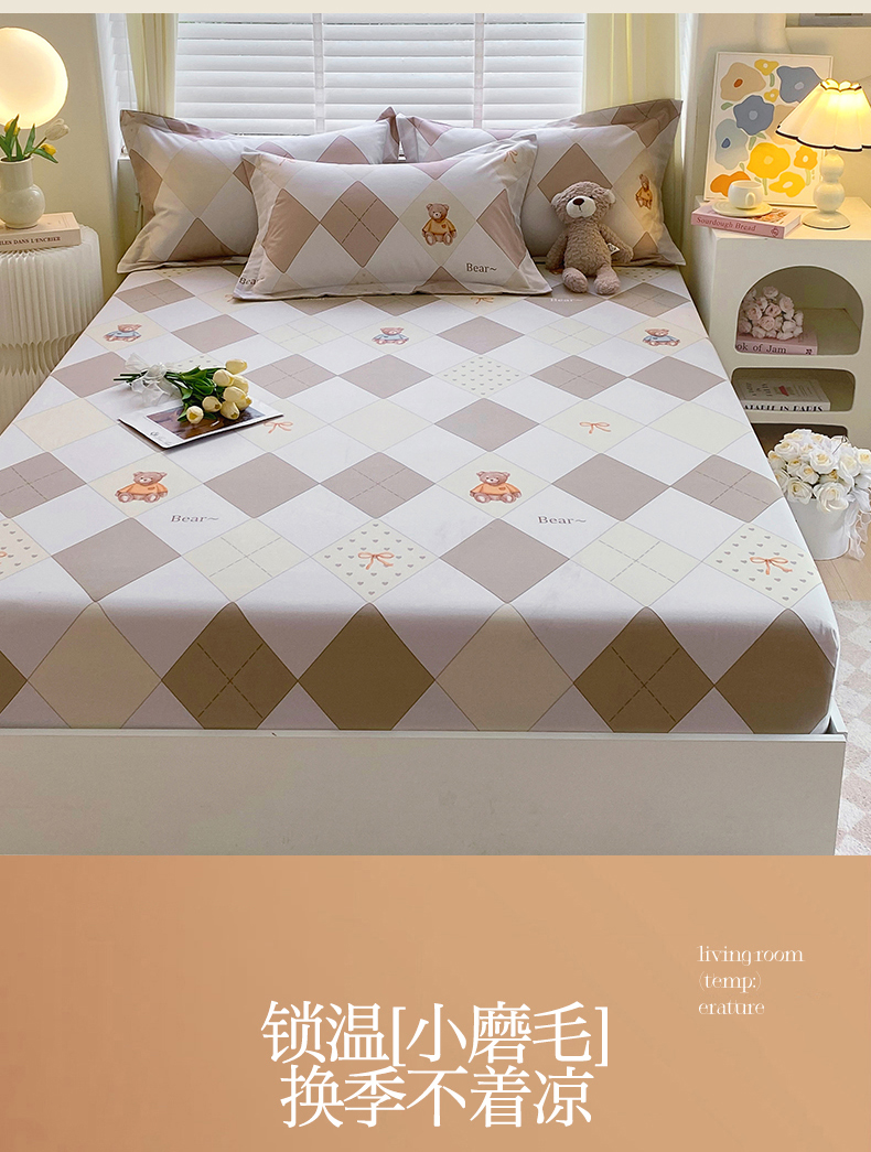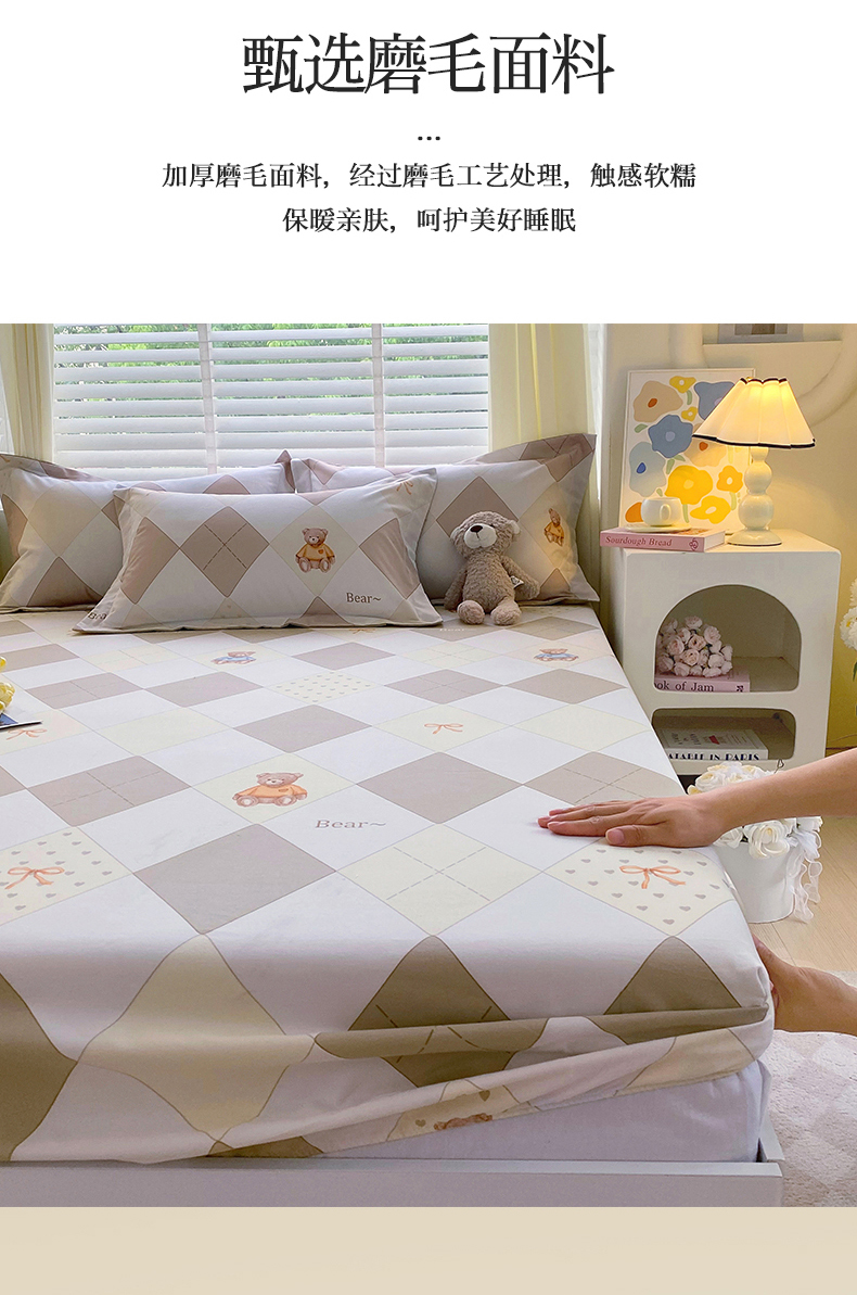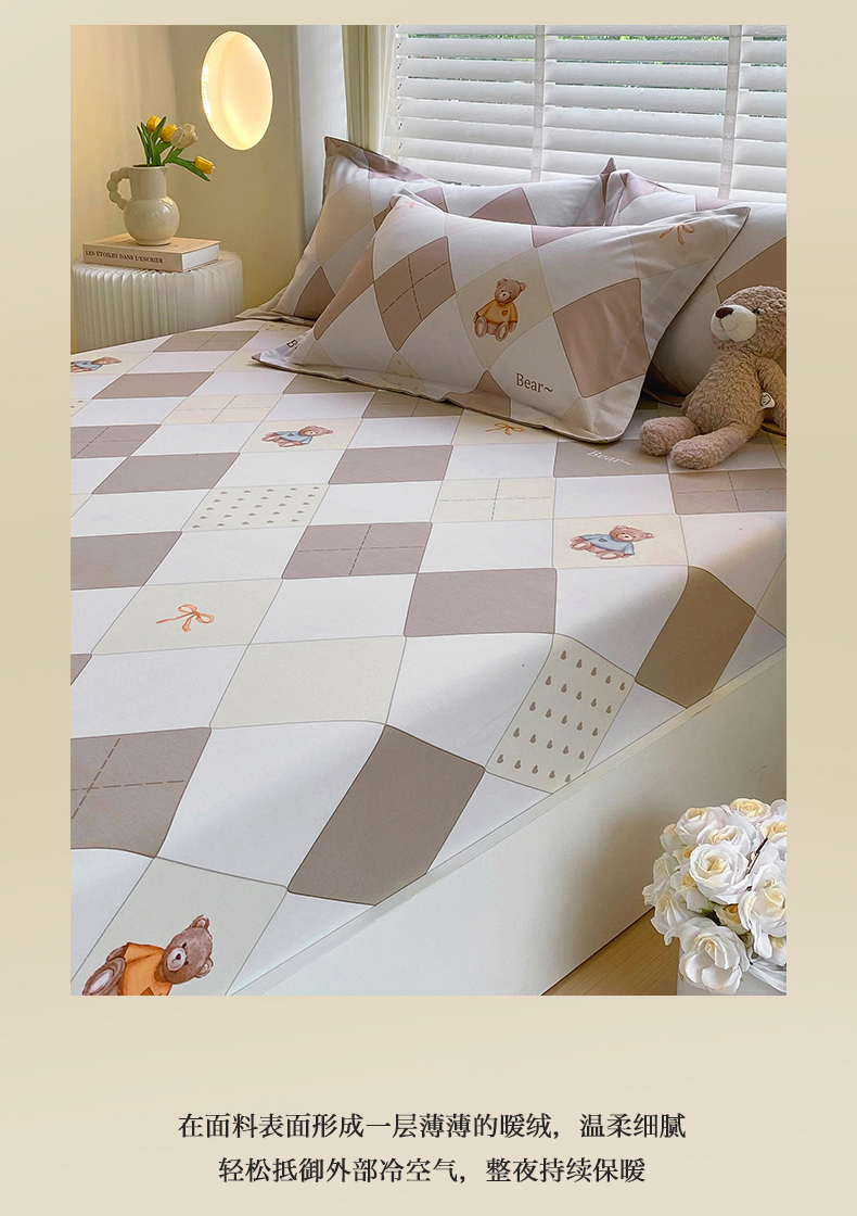 当前位置:凯磊家纺 > 凯磊家纺 2025新款AB版加厚磨毛系列单床笠 格子小熊-咖