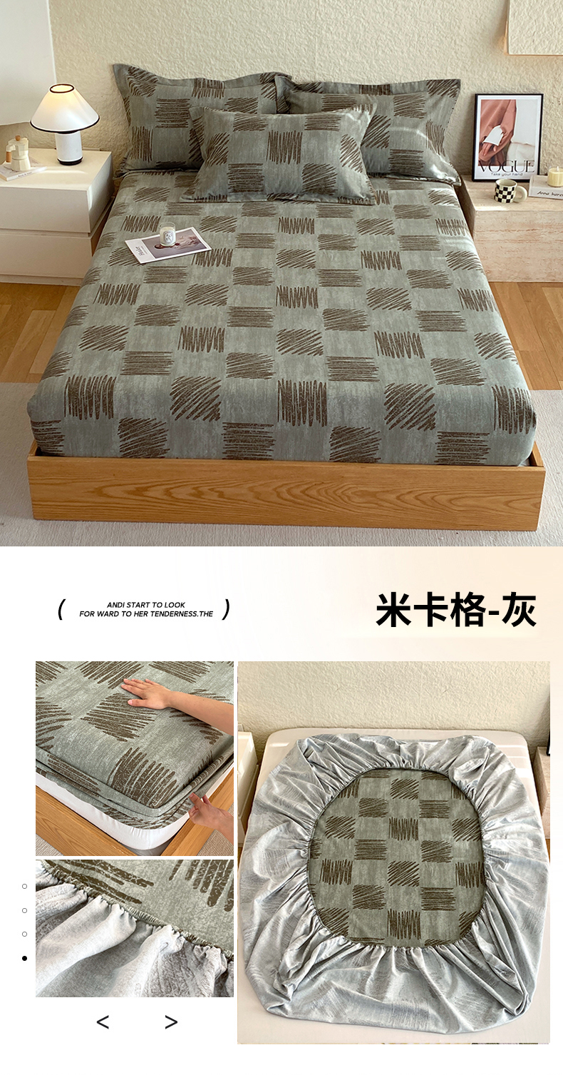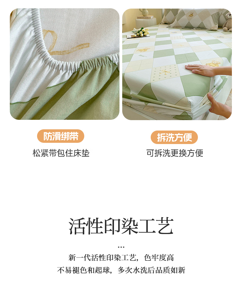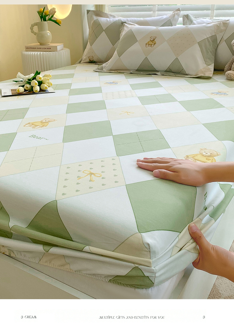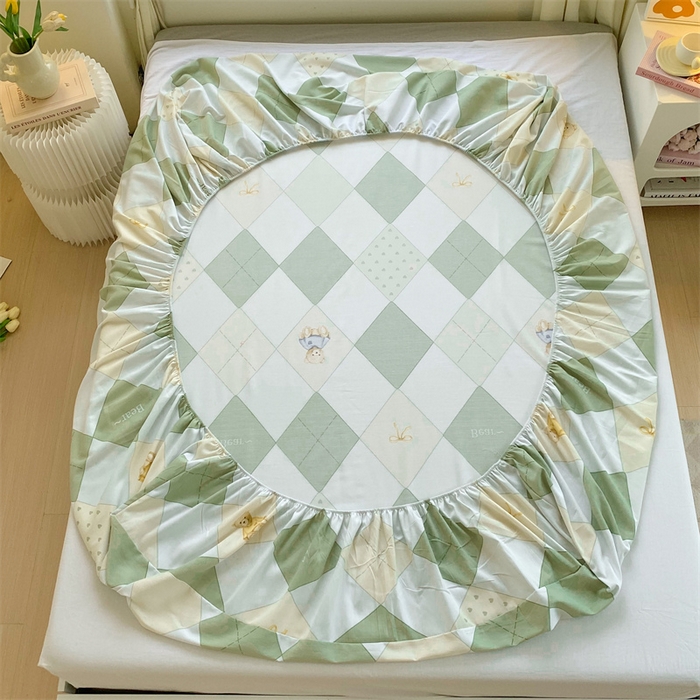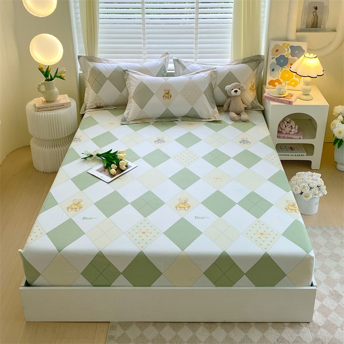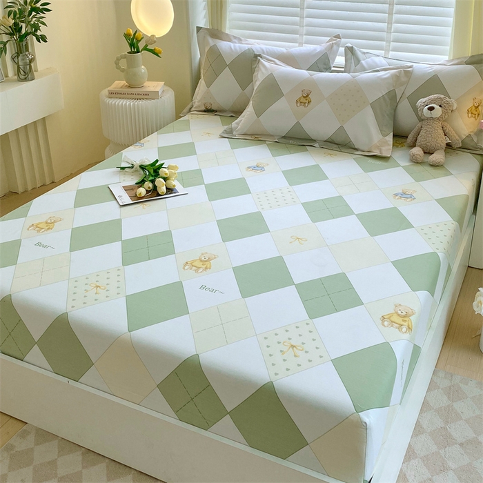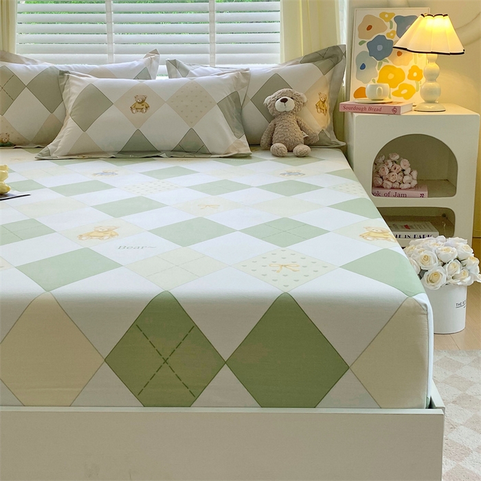 凯磊家纺 2025新款AB版加厚磨毛系列单床笠 格子小熊-绿