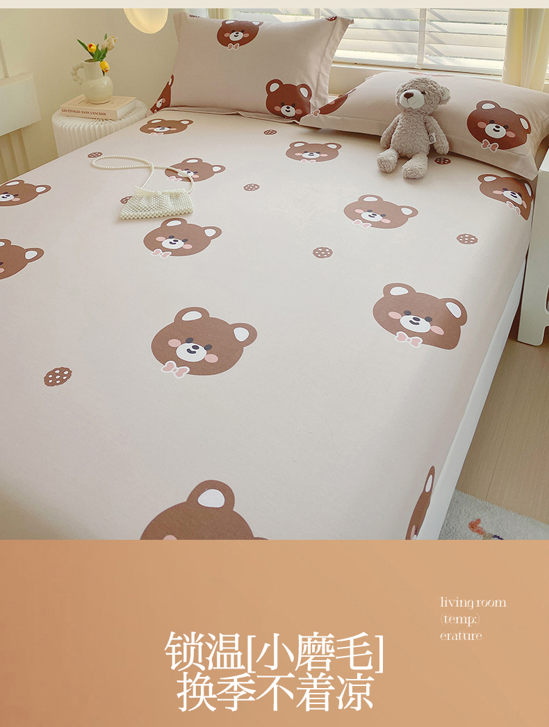凯磊家纺 2025新款AB版加厚磨毛系列单床笠 快乐小熊